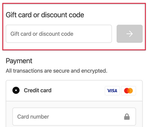 Your store credit or gift card code needs to be entered during the check-out process on the "Payment" step. Enter your gift card code in the field labeled "Gift card or discount code". Once applied, the card value will be taken off the total price of your order.