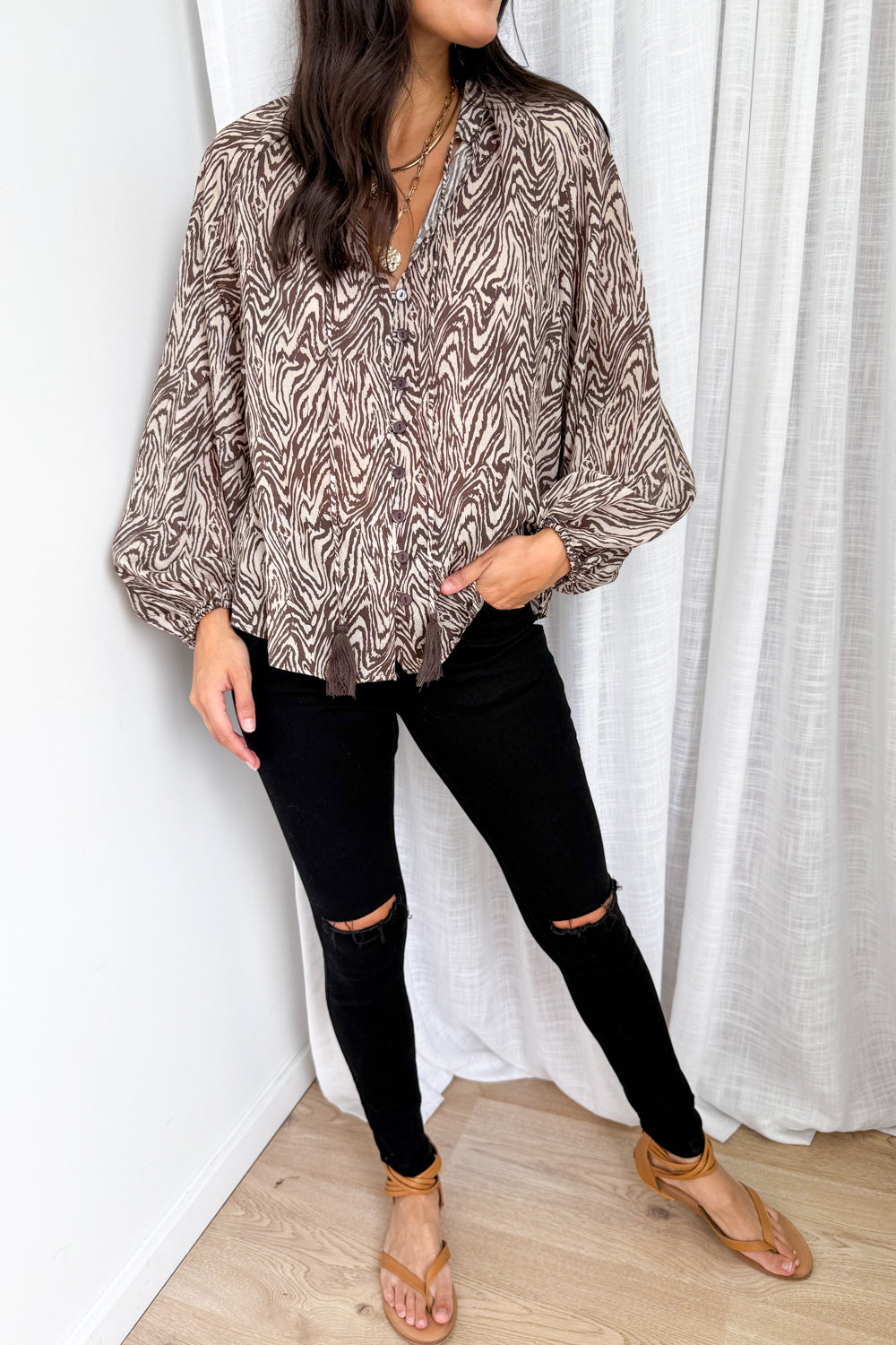 Love this. The fabric is nice, light but kind of crunchy, does that make sense? It falls beautifully, doesn’t matter if it’s crinkled and hasn’t been ironed, and the sleeves are good with their elastic cuffs as they can be worn as is or pulled up. Love.