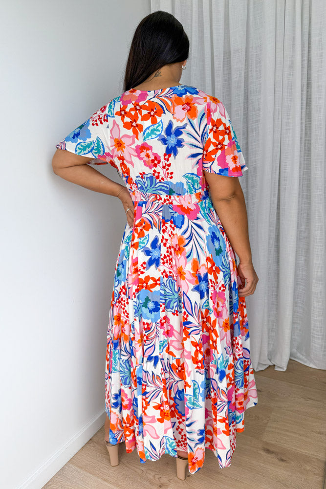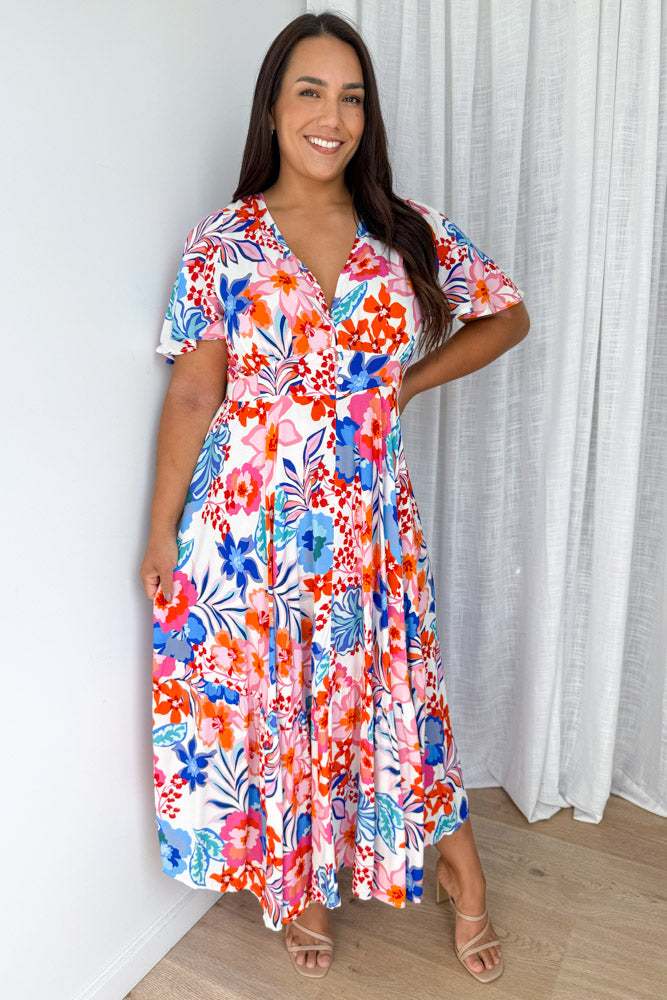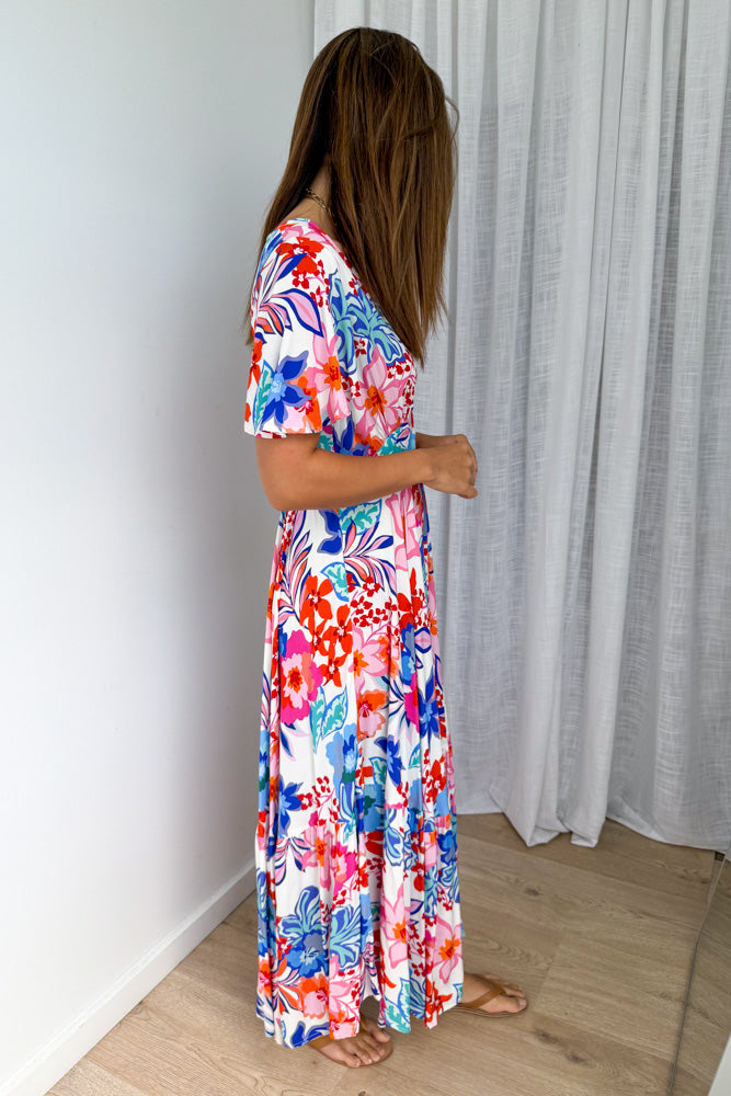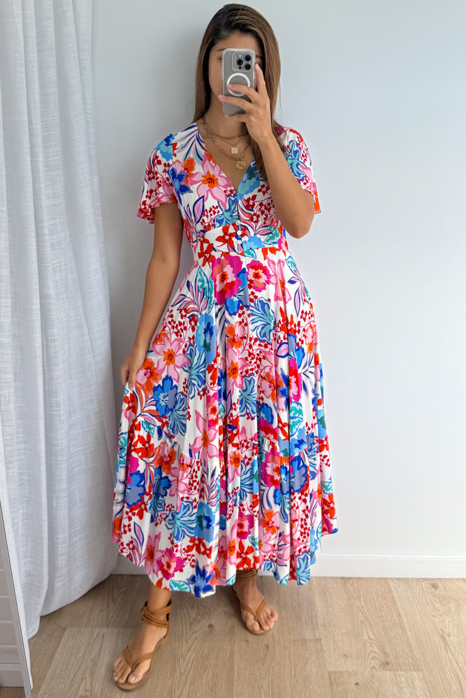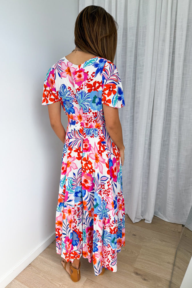 Annika Dress - White Multi Flower