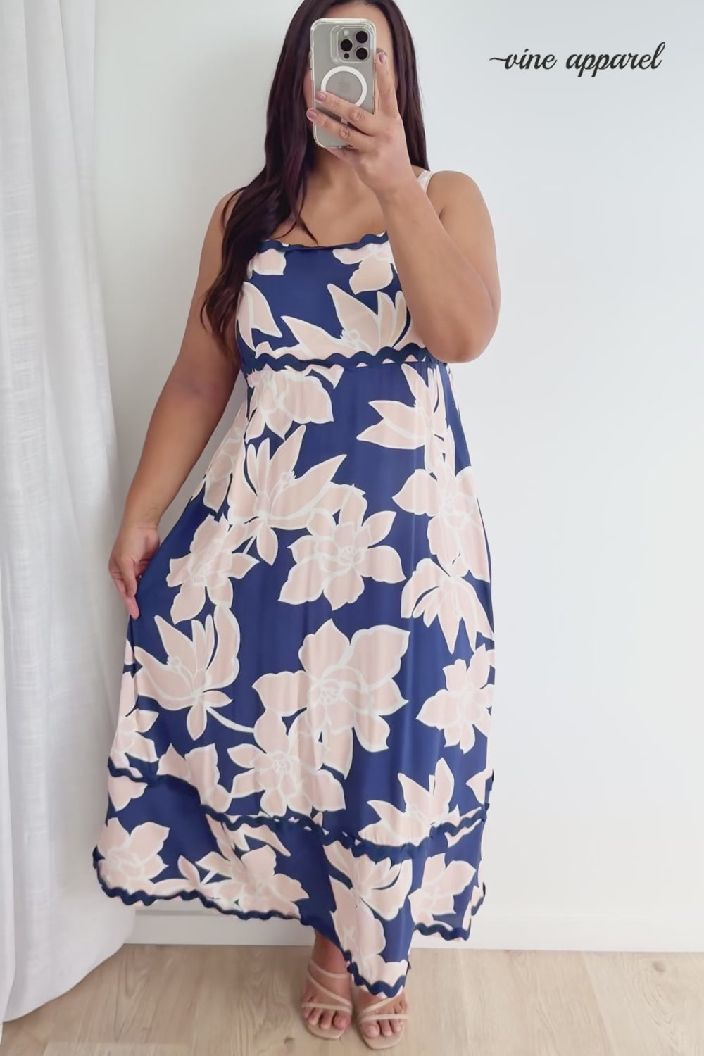 A simple style in a pretty print with some ricrac detailing on it, and the straps are adjustable. It has pockets :) AND you can wear a bra :)
