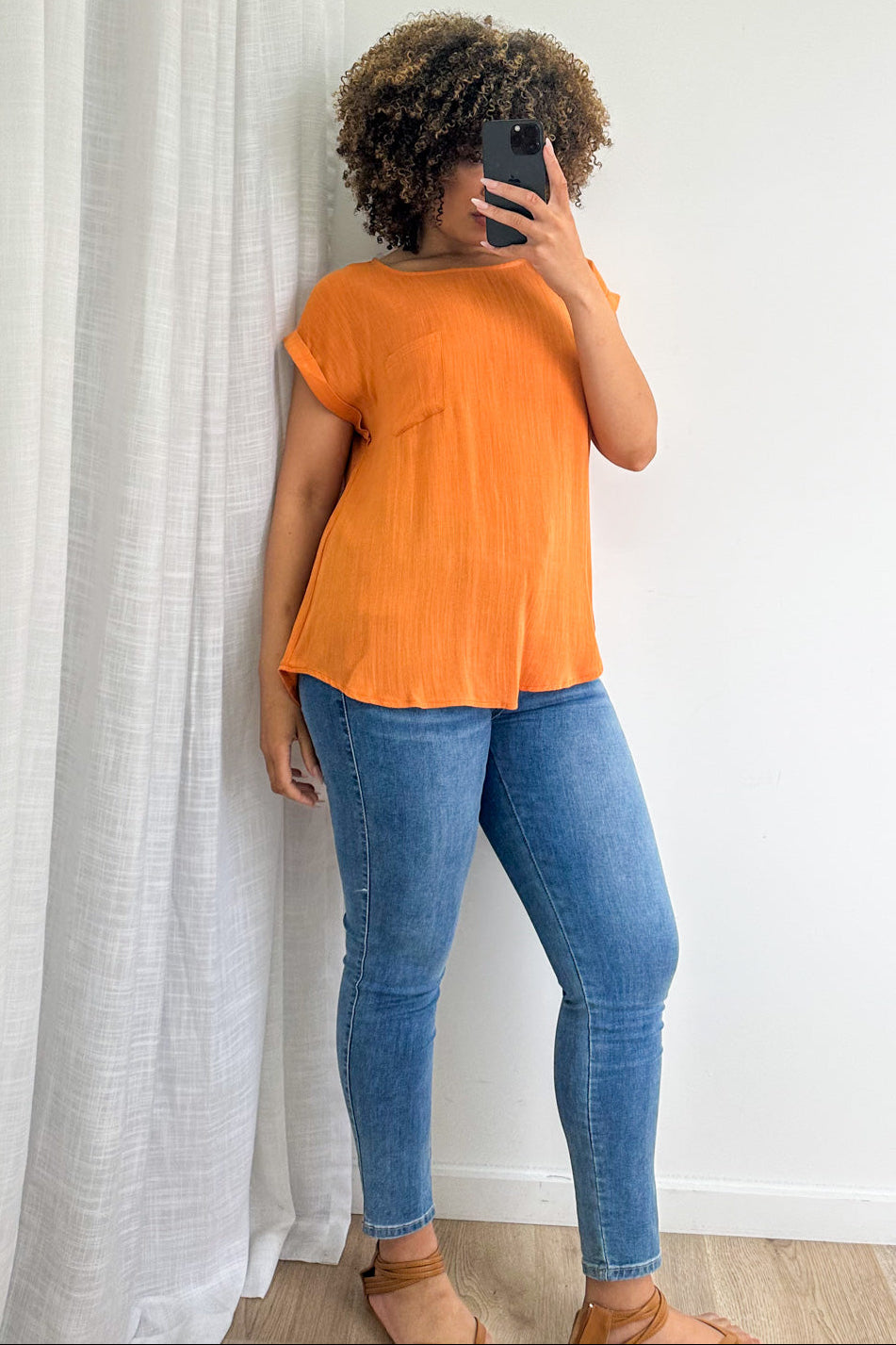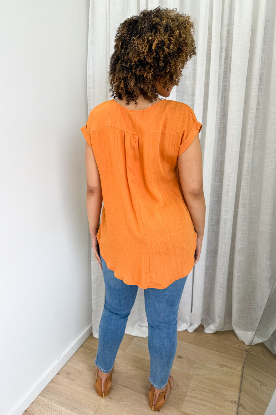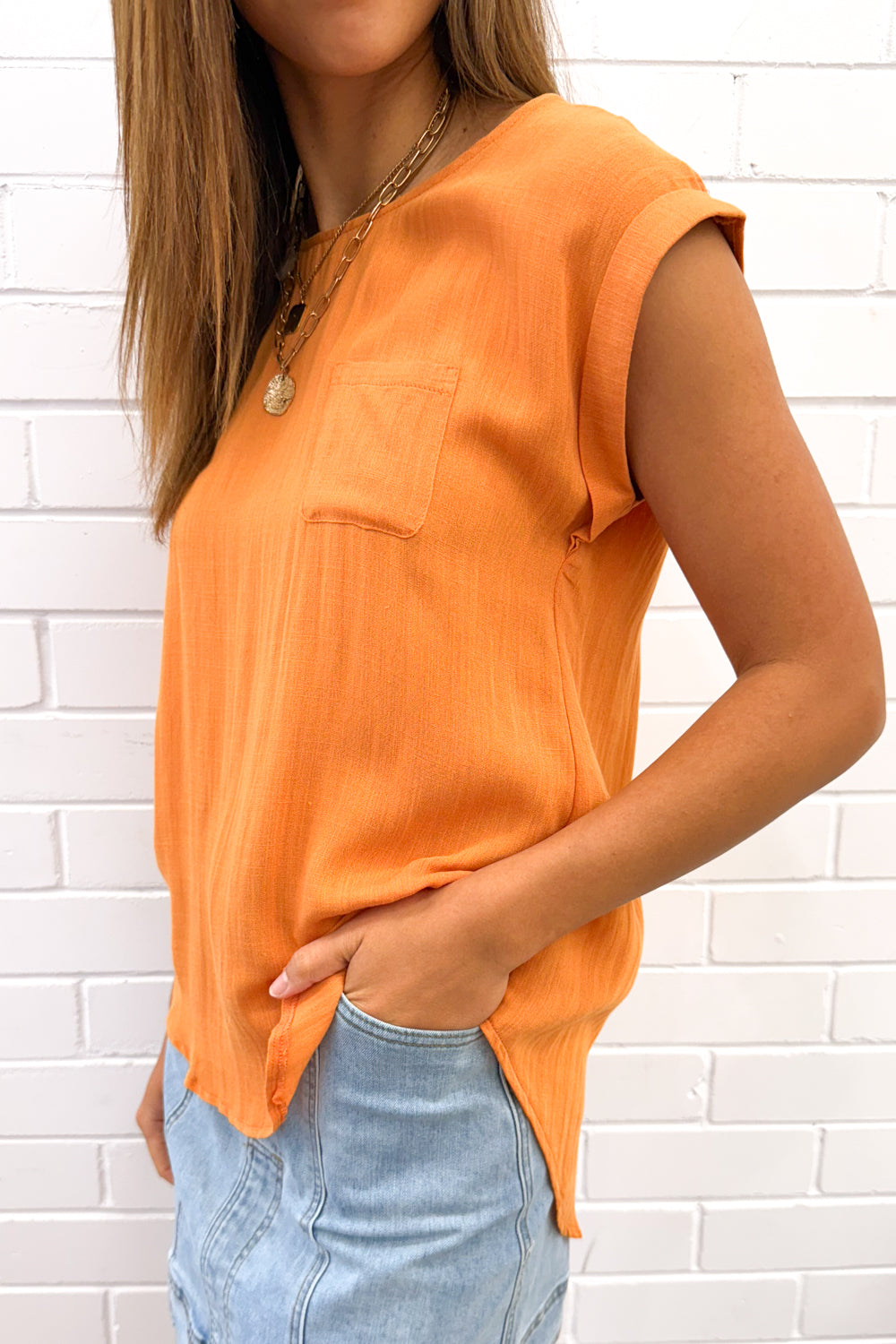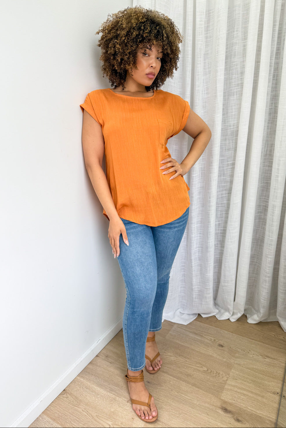 An easy basic which is good for work and weekends. The sleeve detail is nice, the pocket is a cute feature, and the front is a good length whilst the back is a tail - it’s good.