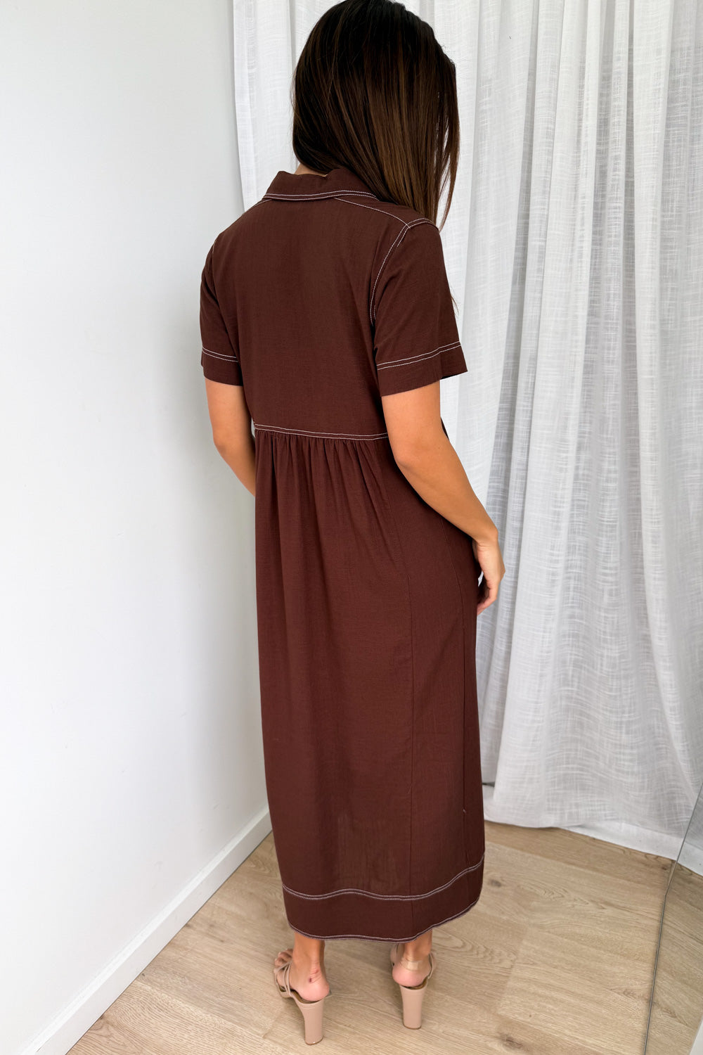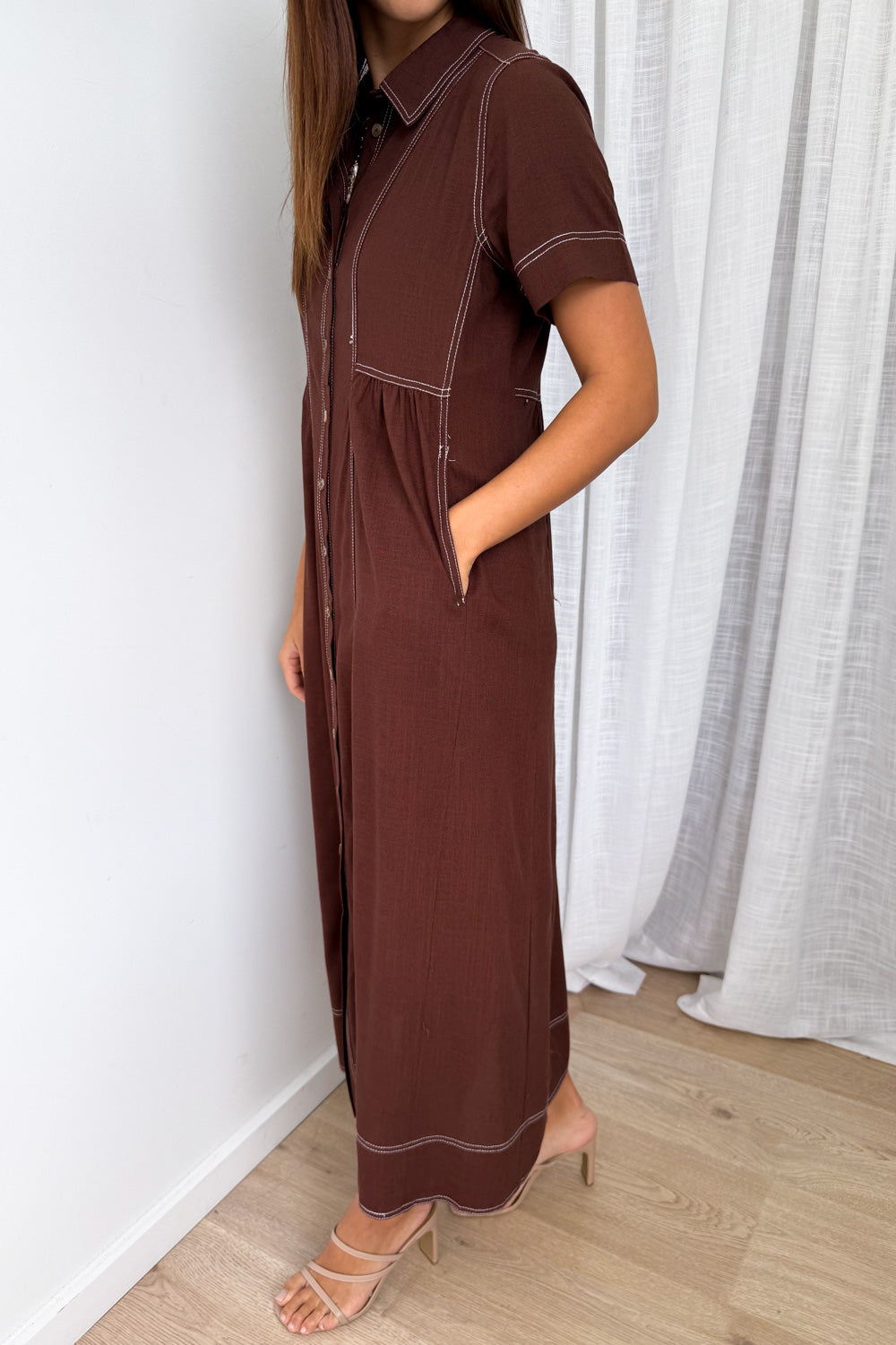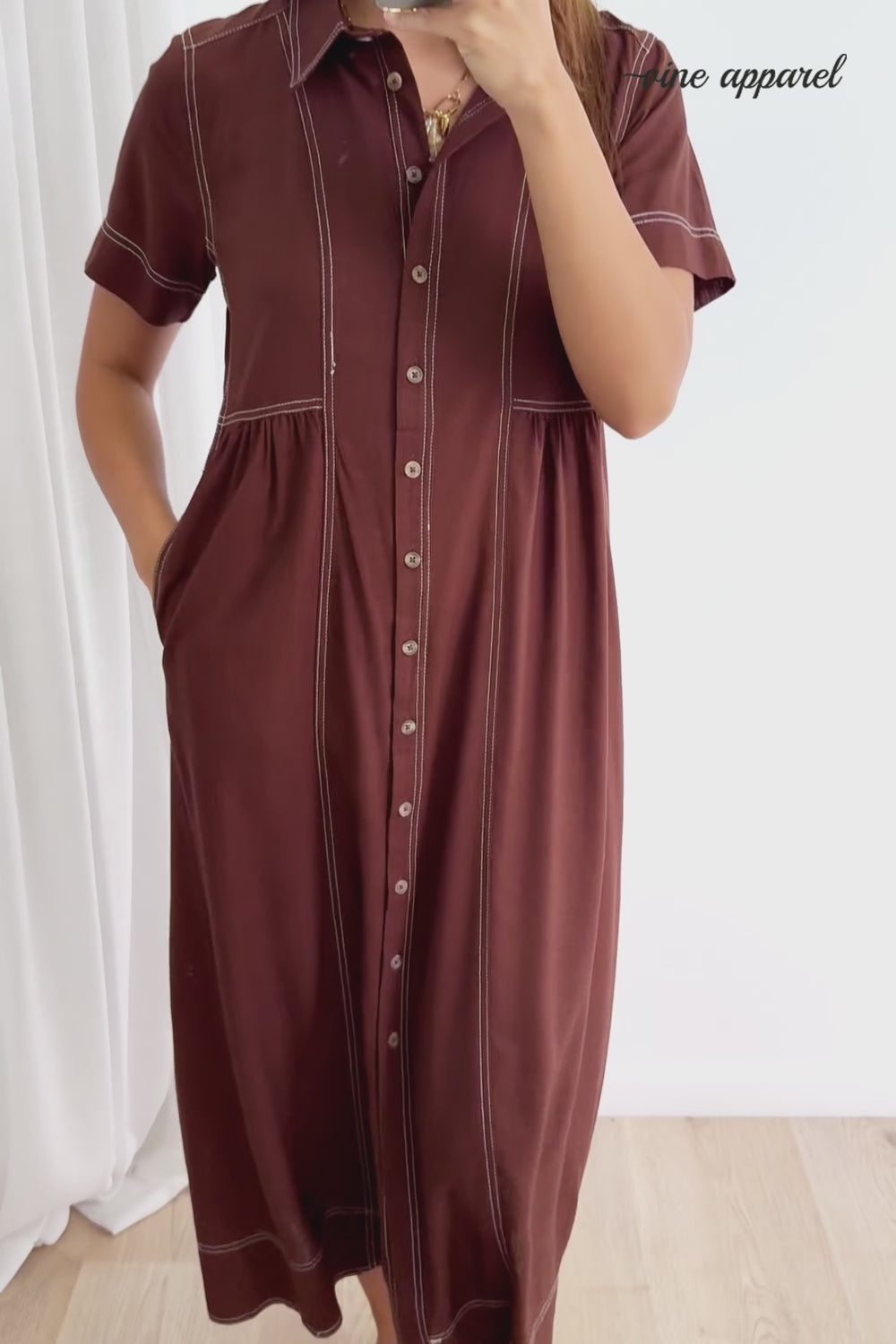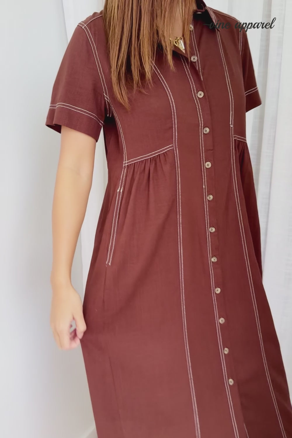 Absolutely beautiful —the kind of dress that does all the work for you. The contrast stitching is lovely, the buttons are functional and of course - pockets. An effortless throw-on!