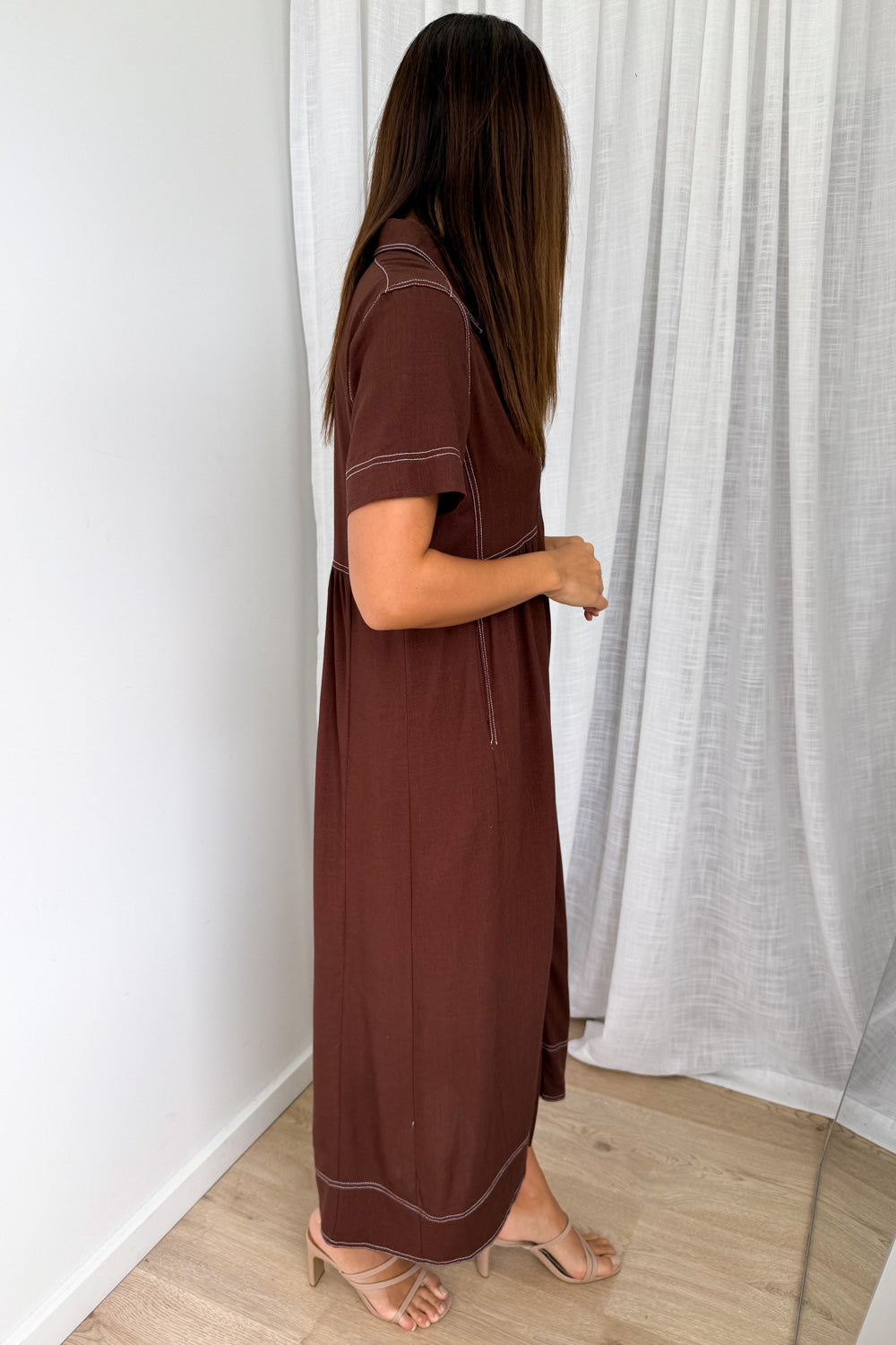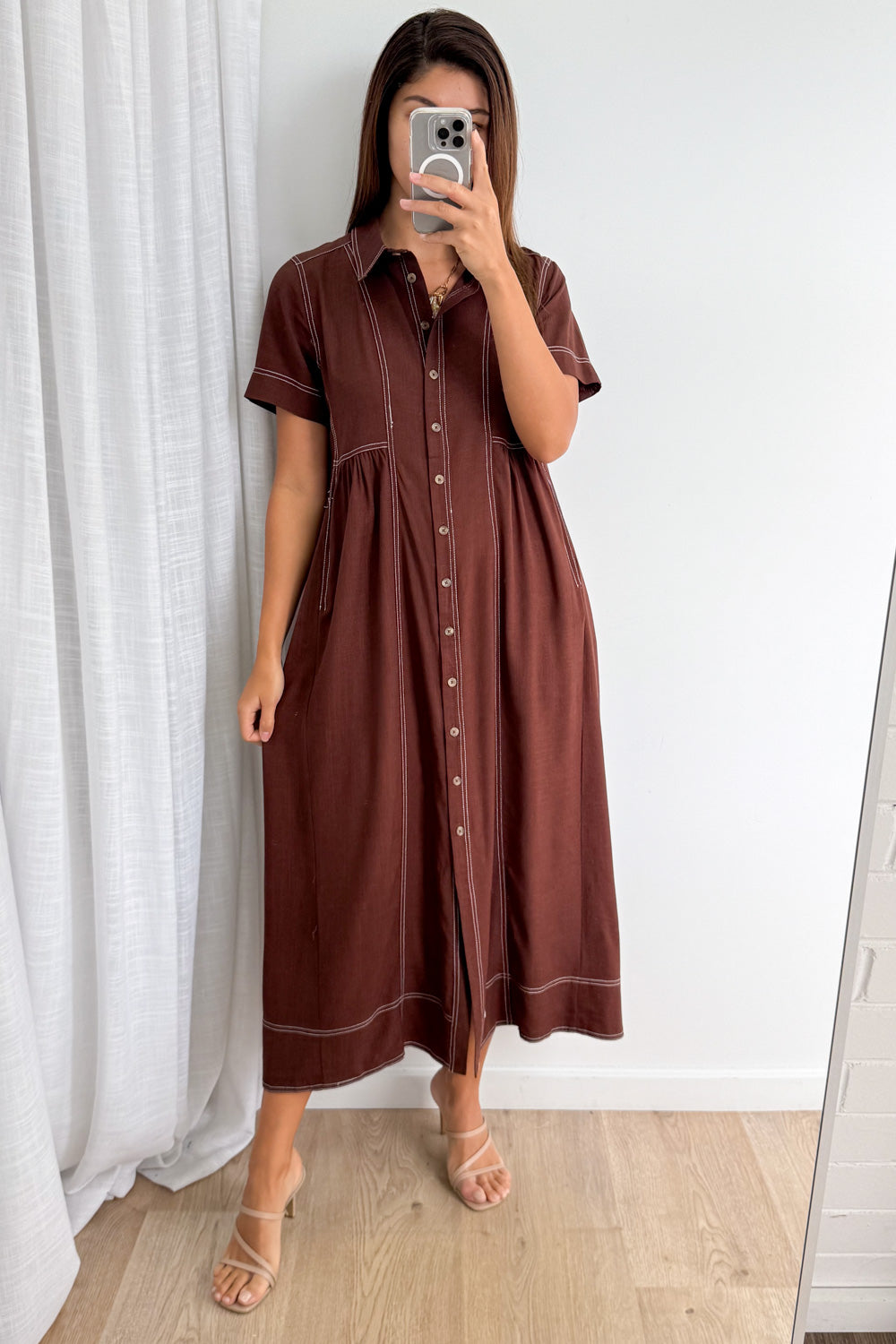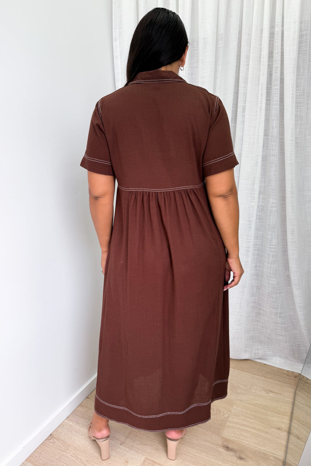 Absolutely beautiful —the kind of dress that does all the work for you. The contrast stitching is lovely, the buttons are functional and of course - pockets. An effortless throw-on!