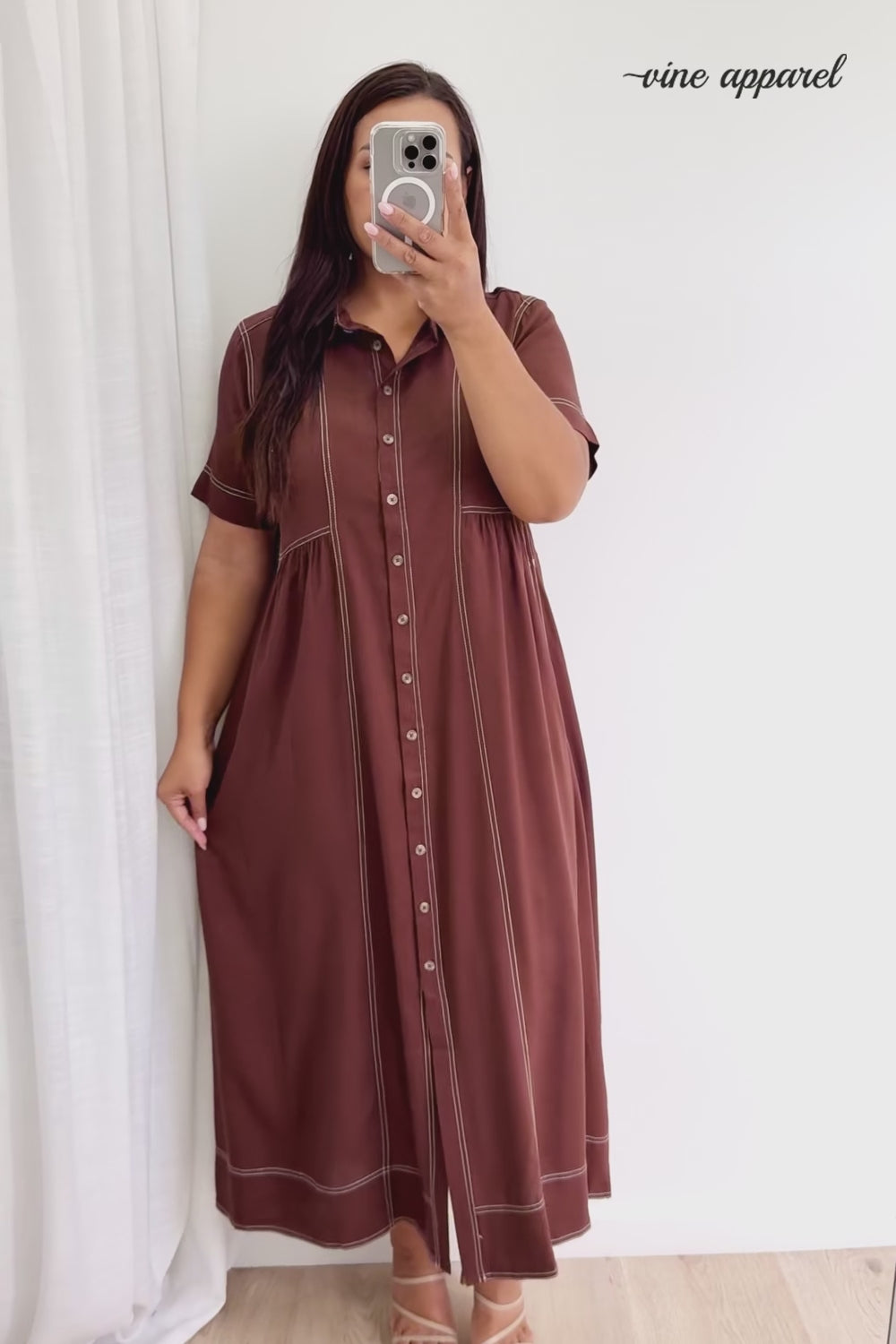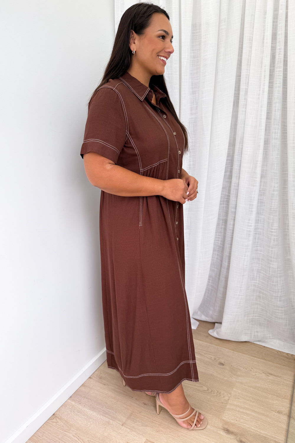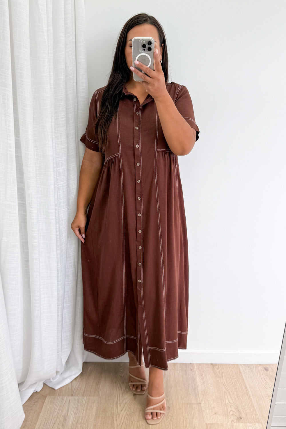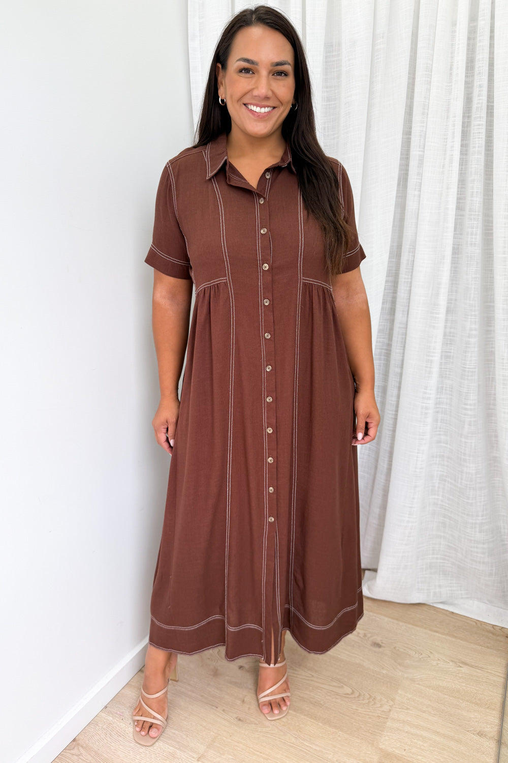 Absolutely beautiful —the kind of dress that does all the work for you. The contrast stitching is lovely, the buttons are functional and of course - pockets. An effortless throw-on!
