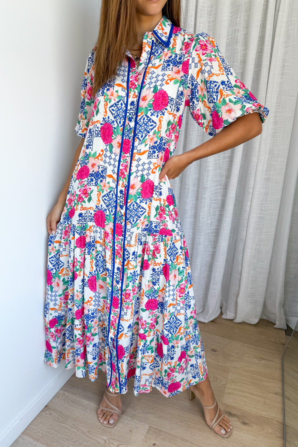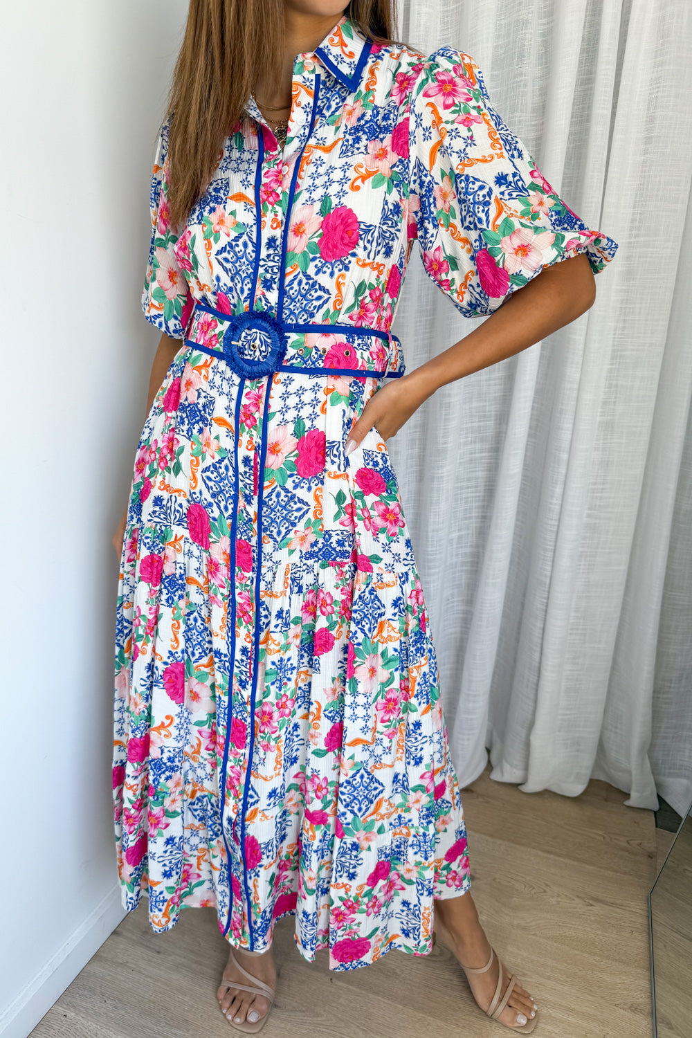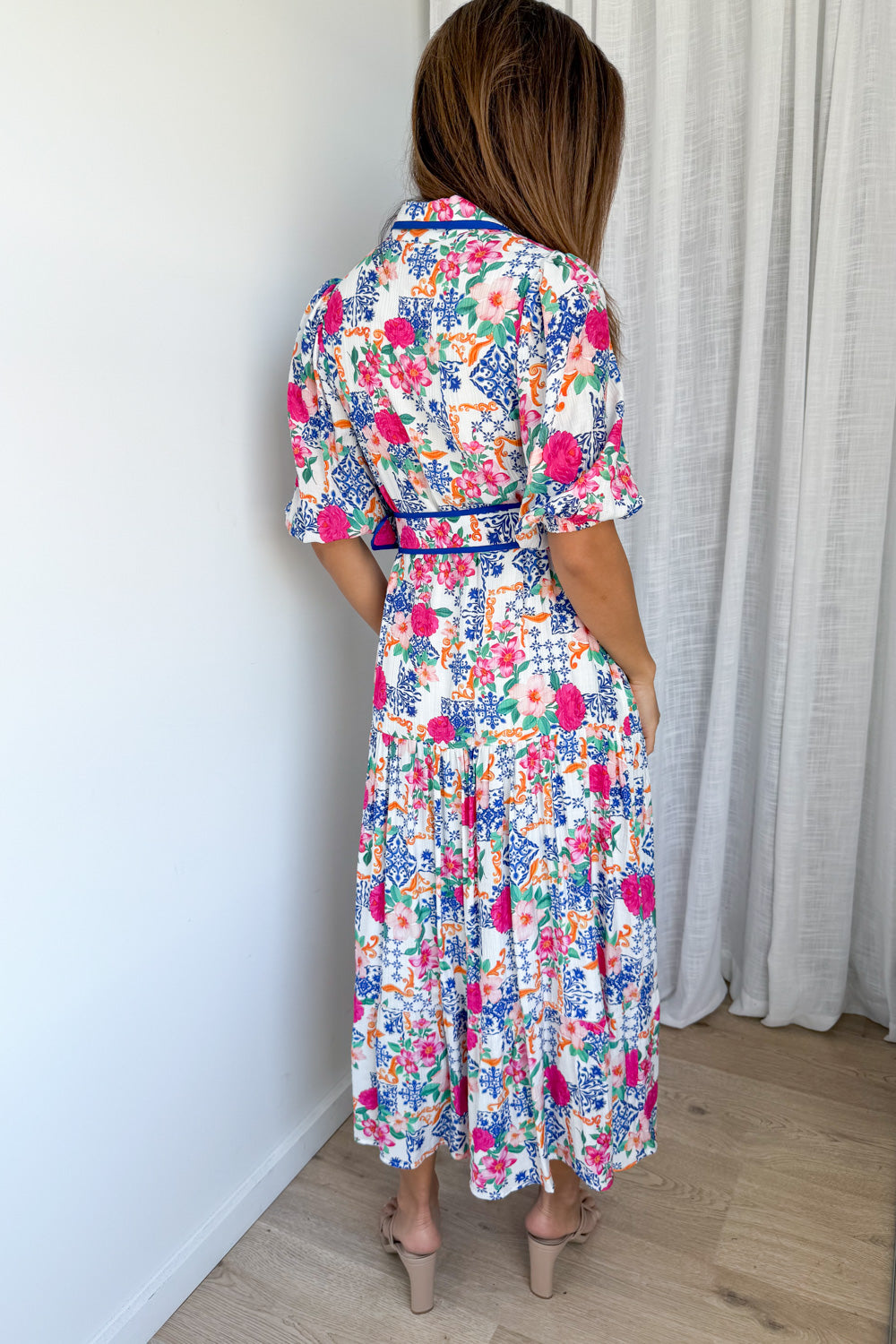 Cali Tile Dress - Cobalt Fuchsia Tile