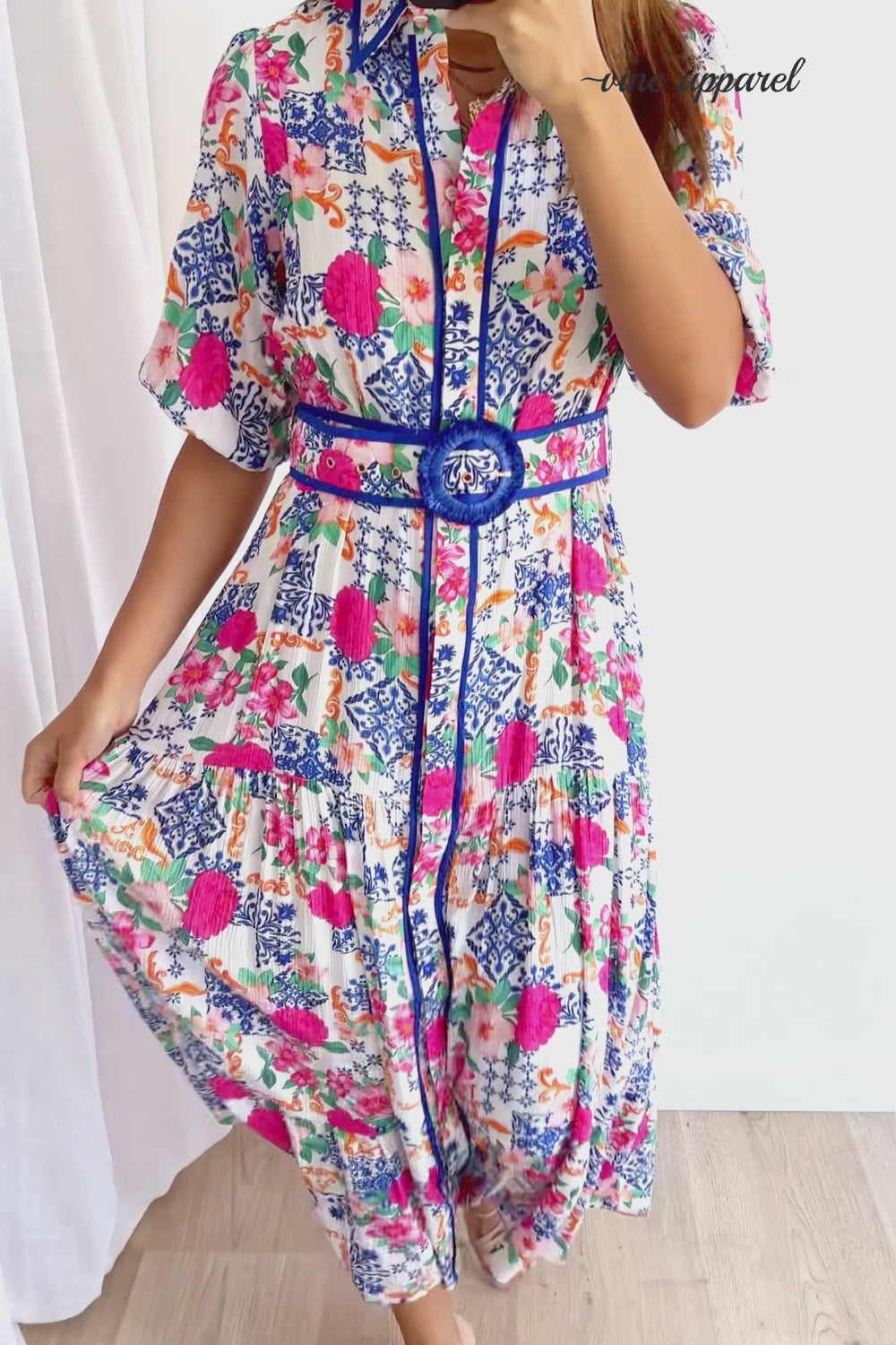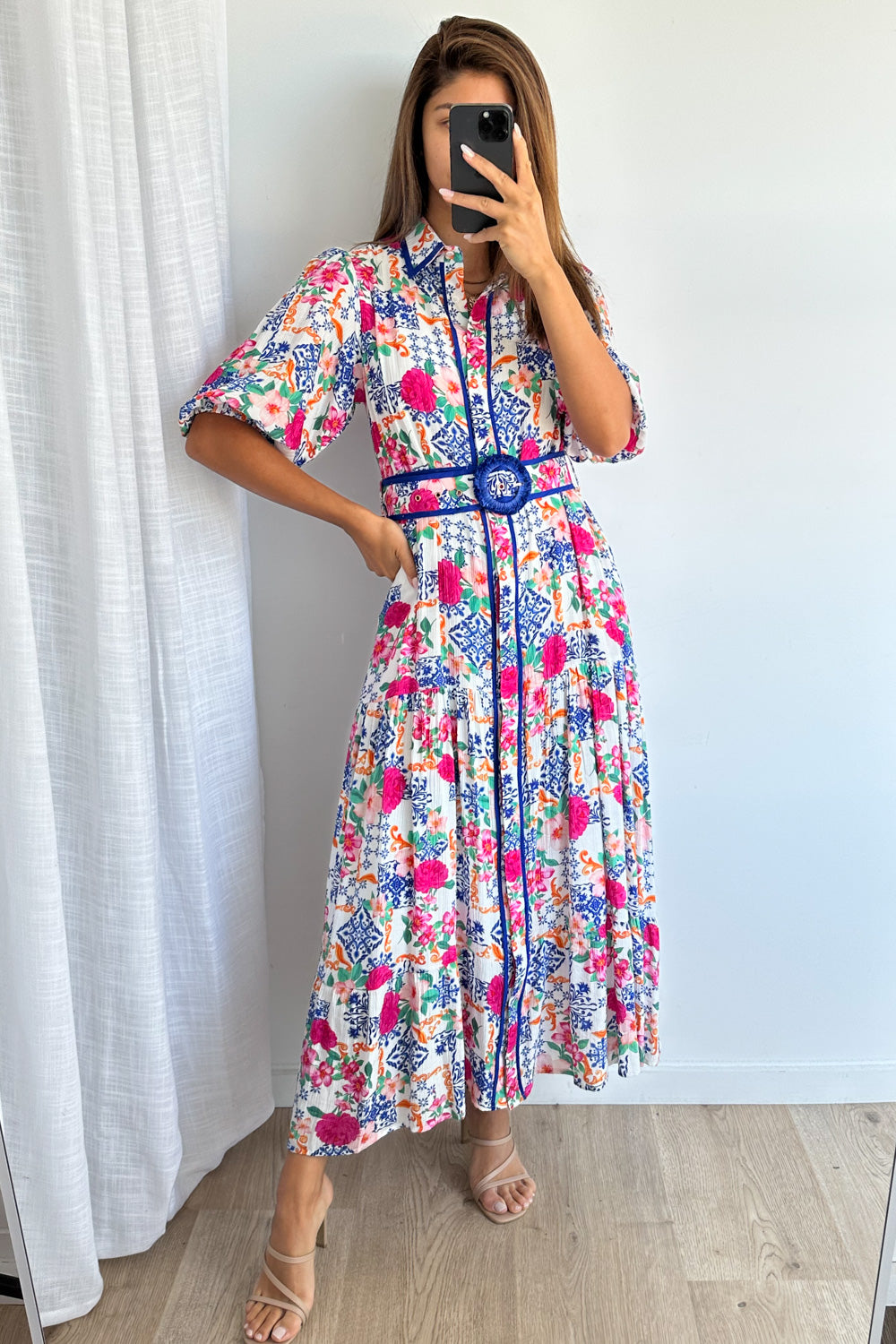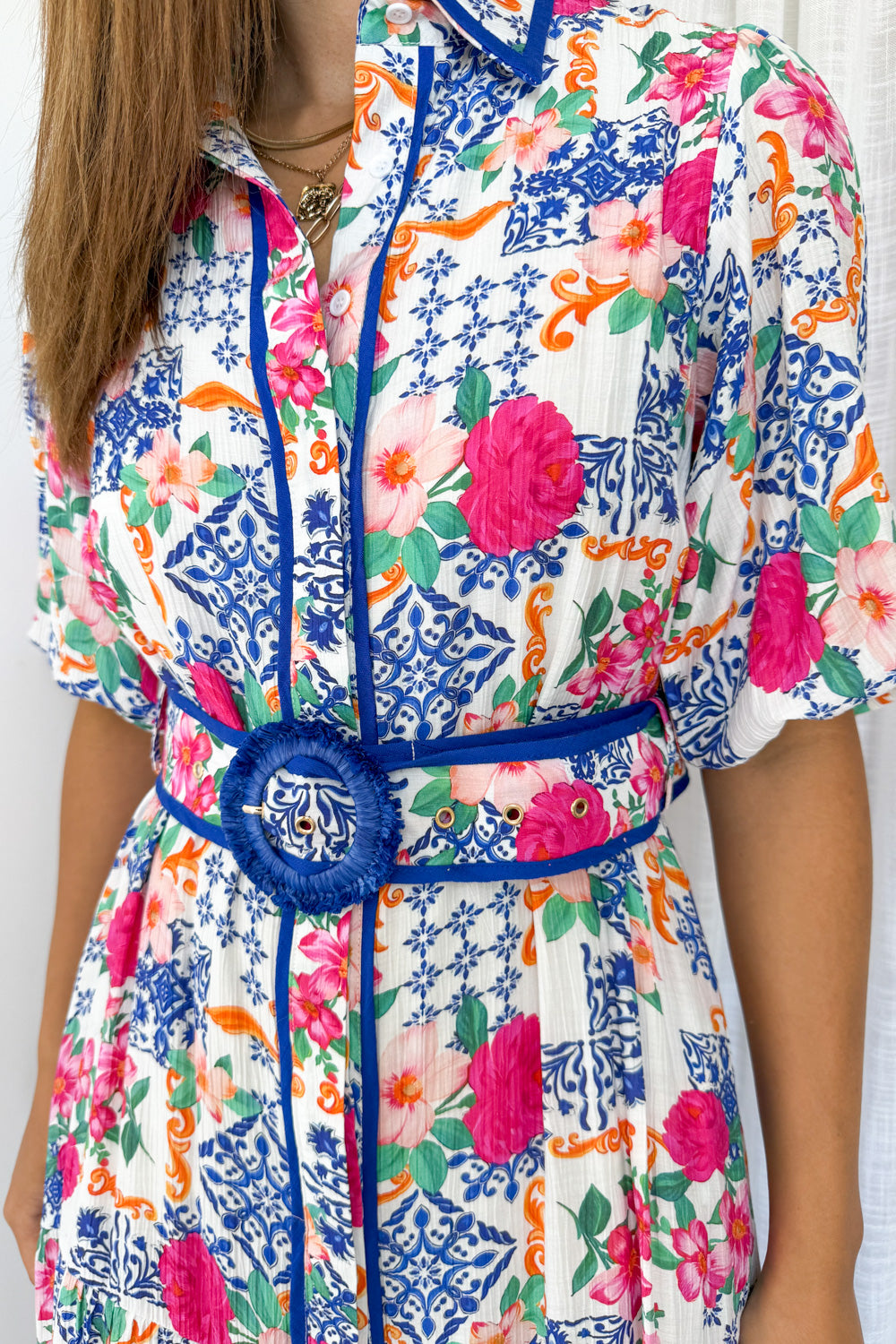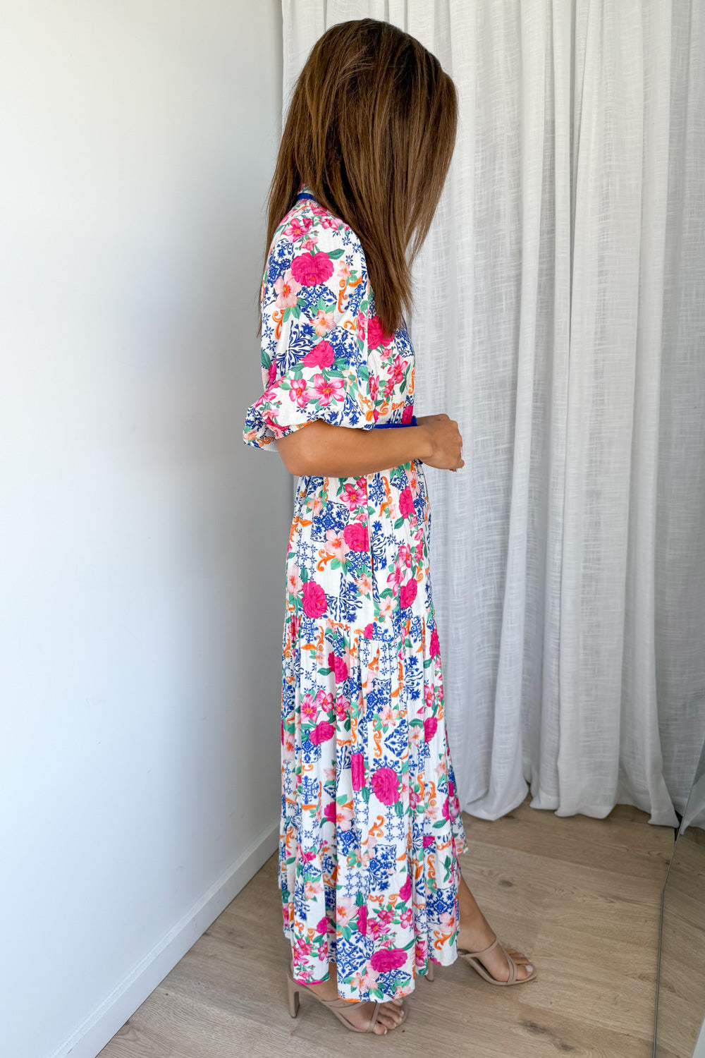 Cali Tile Dress - Cobalt Fuchsia Tile