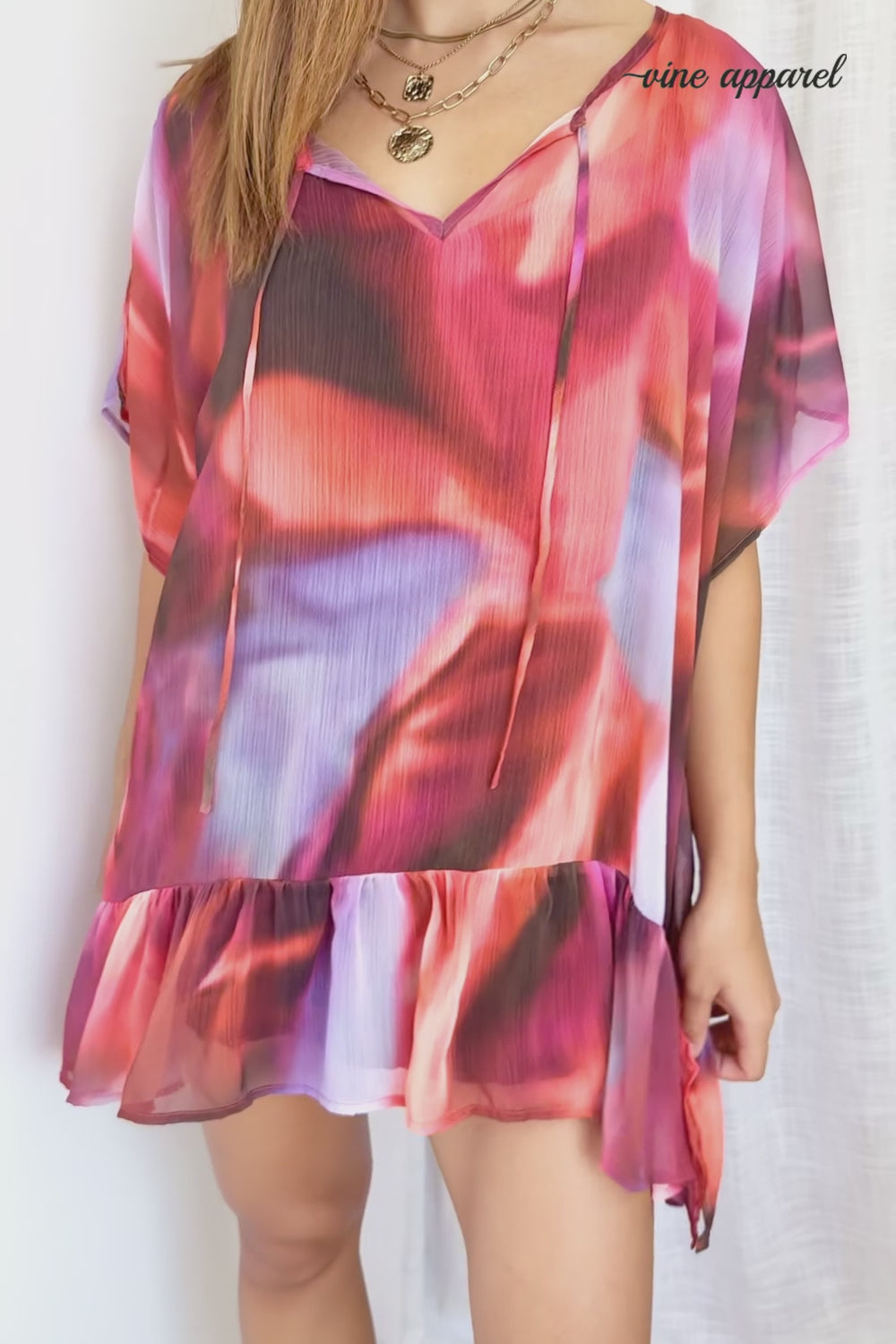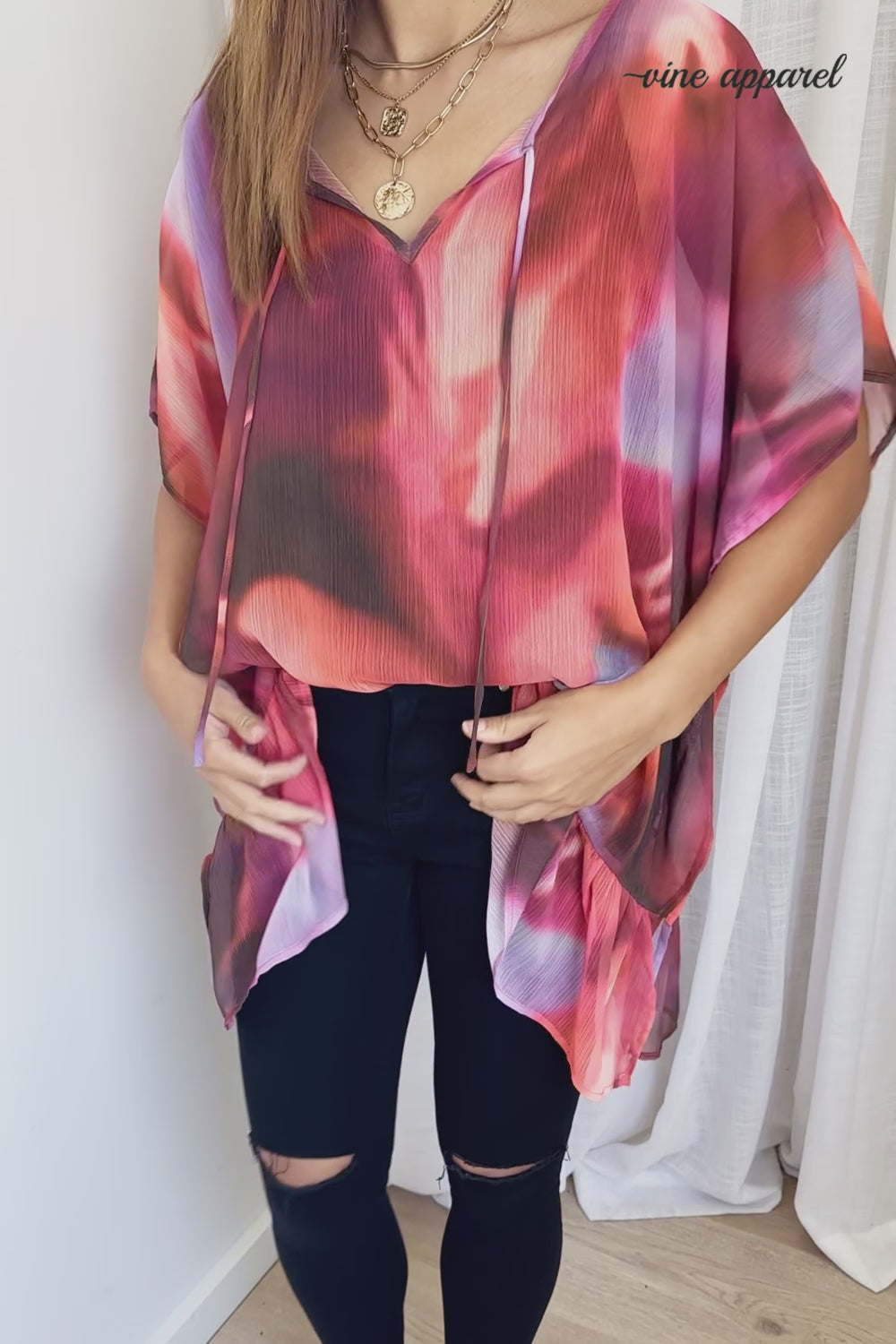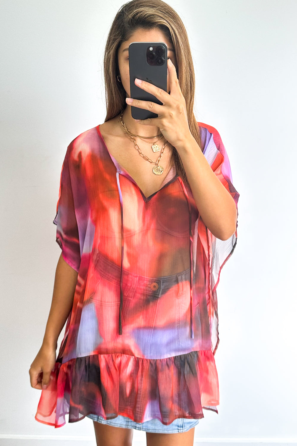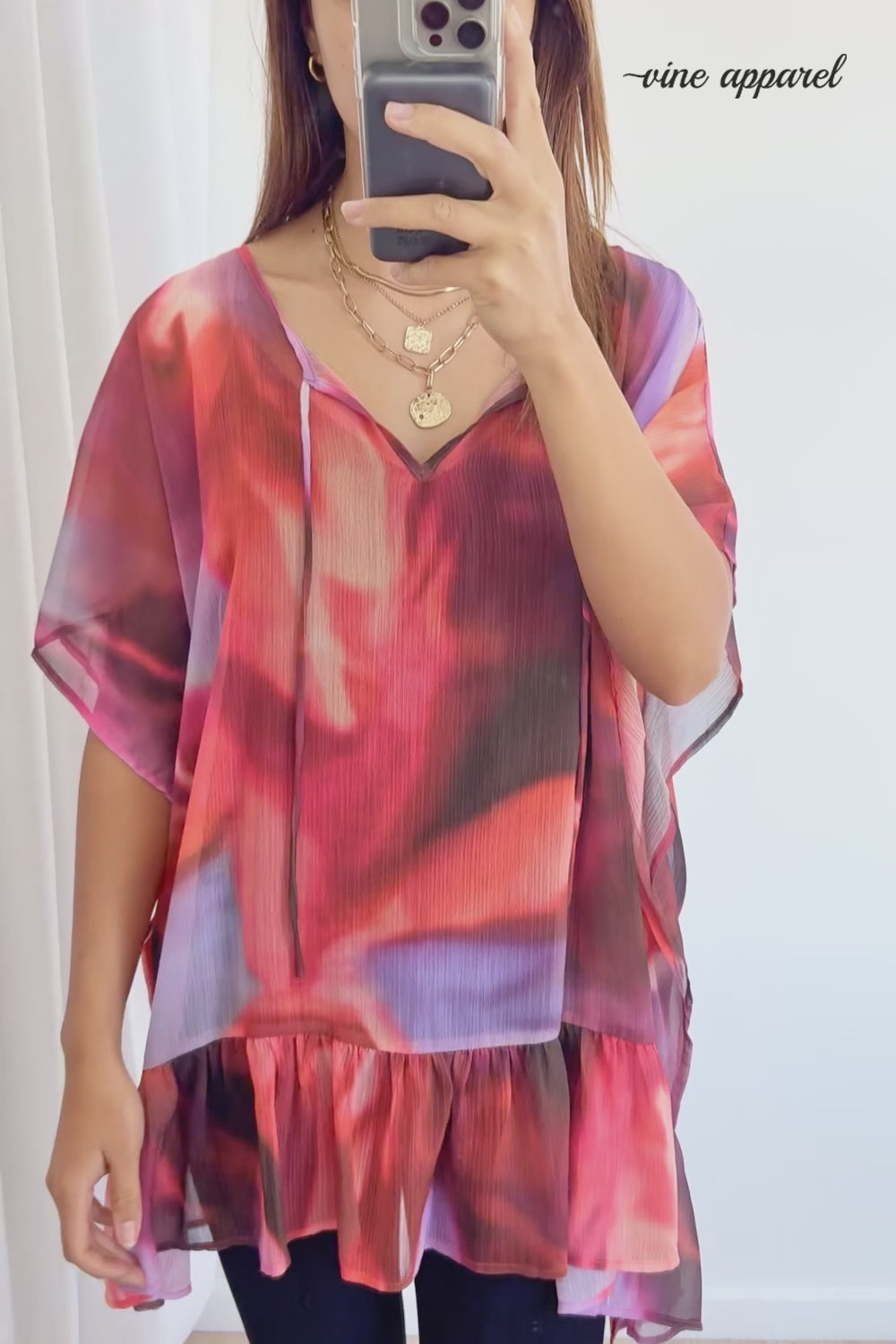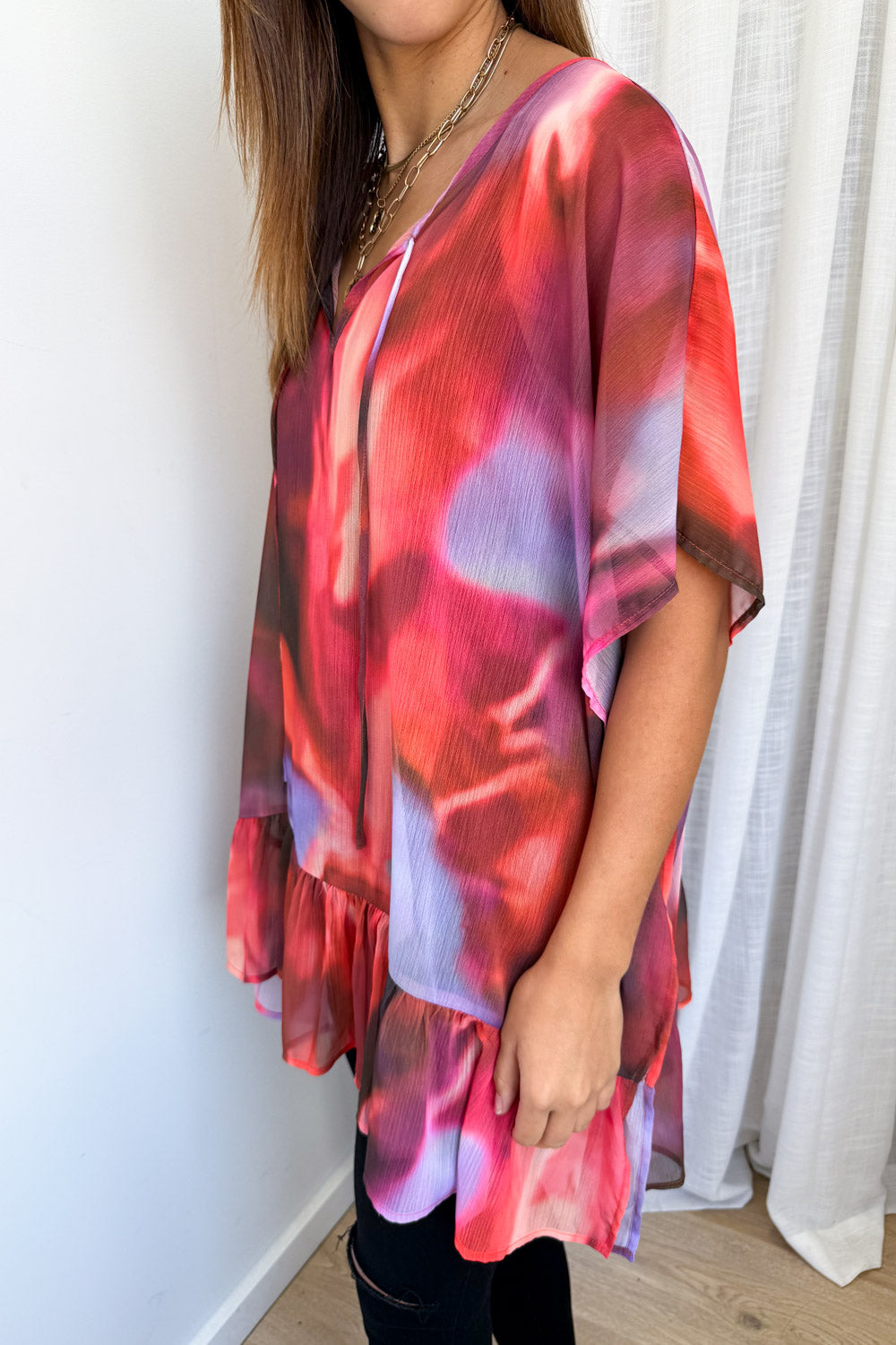 Oversized and just so nice on on, it’s a lovely shape which drapes beautifully. The frill detail down the bottom is pretty, the arm allowance is good, and it can be worn anywhere from over a cossie at the pool, or out for drinks with the gals.