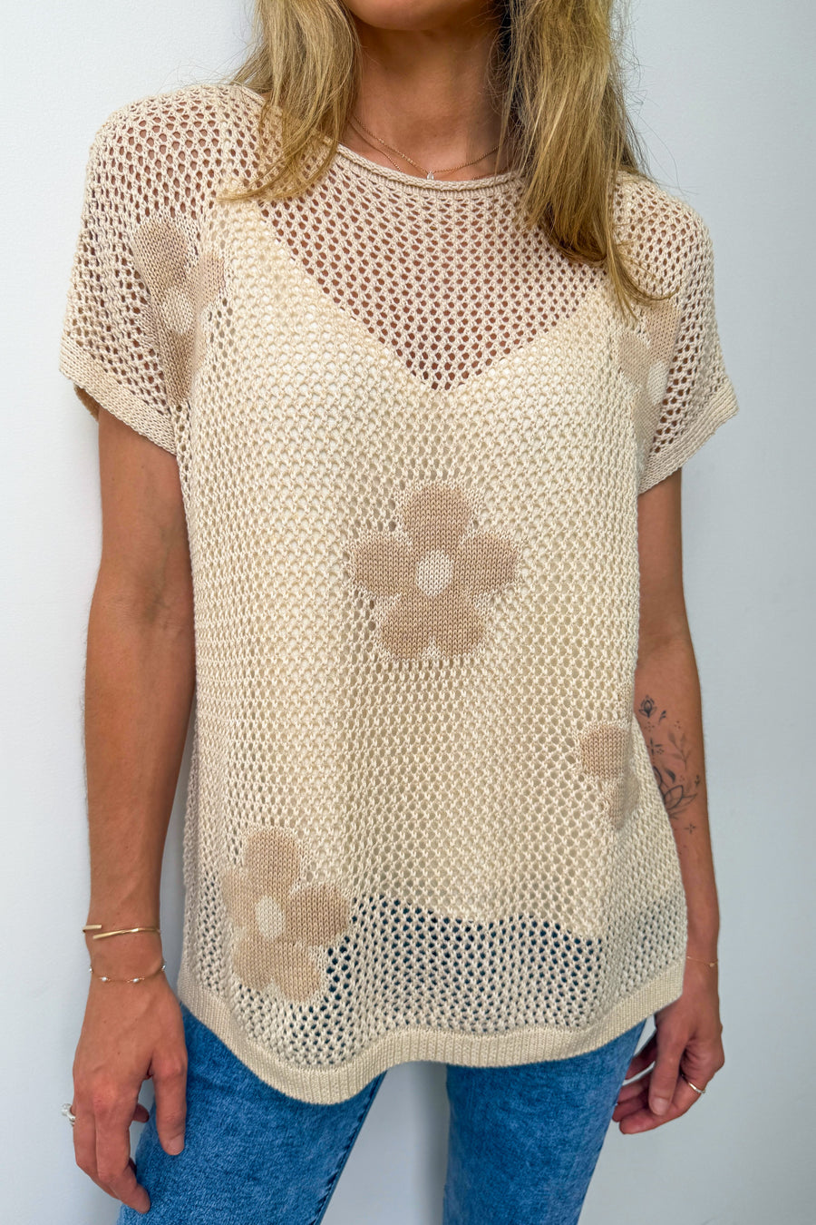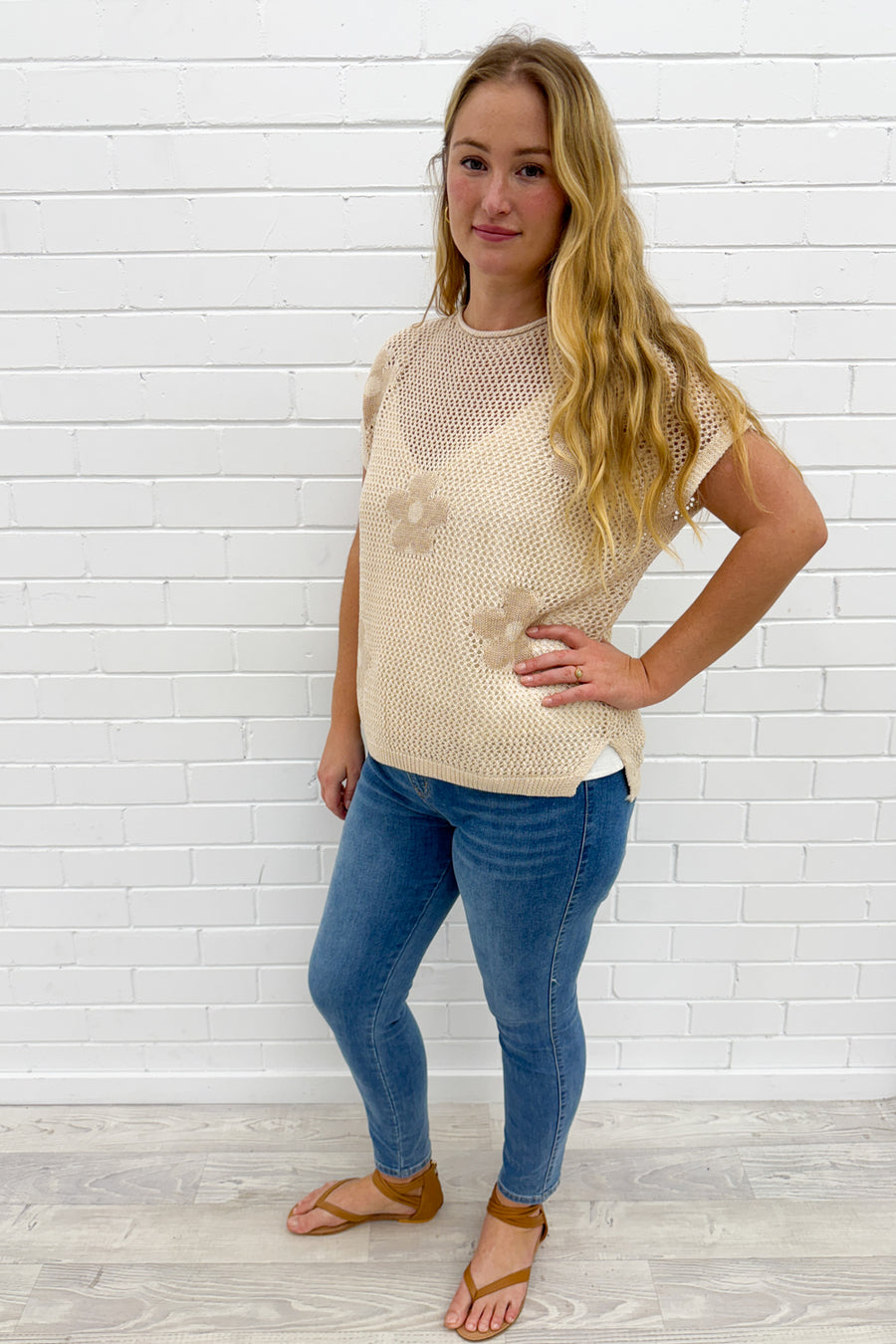 A really pretty knit top that can be worn with our Kellie Cami for extra coverage and your fave denim skirt, shorts or jeans.