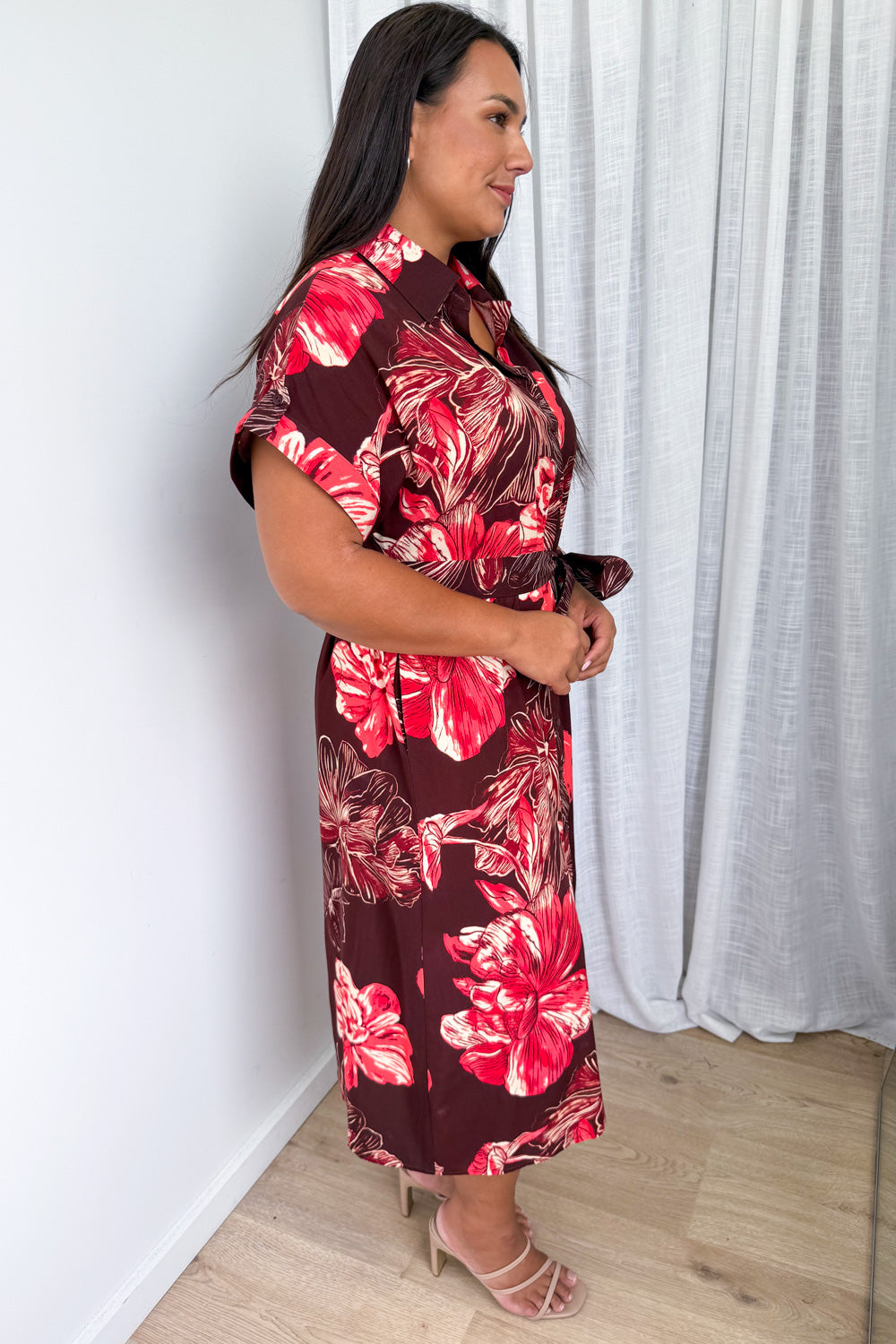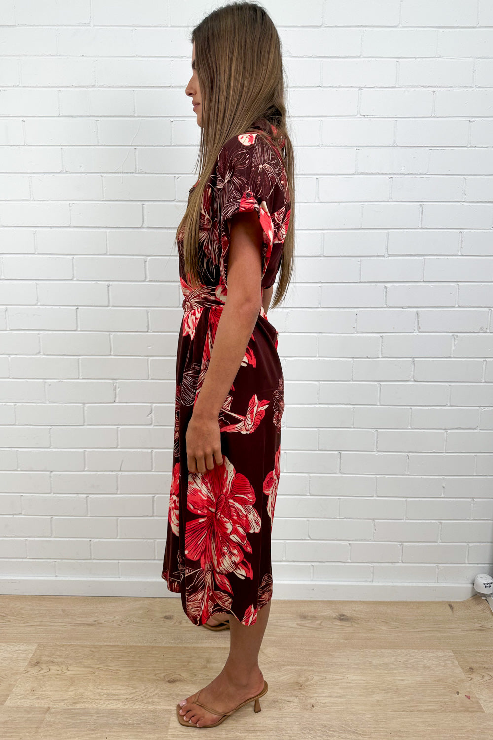 Dollie Dress - Burgundy Red Flower