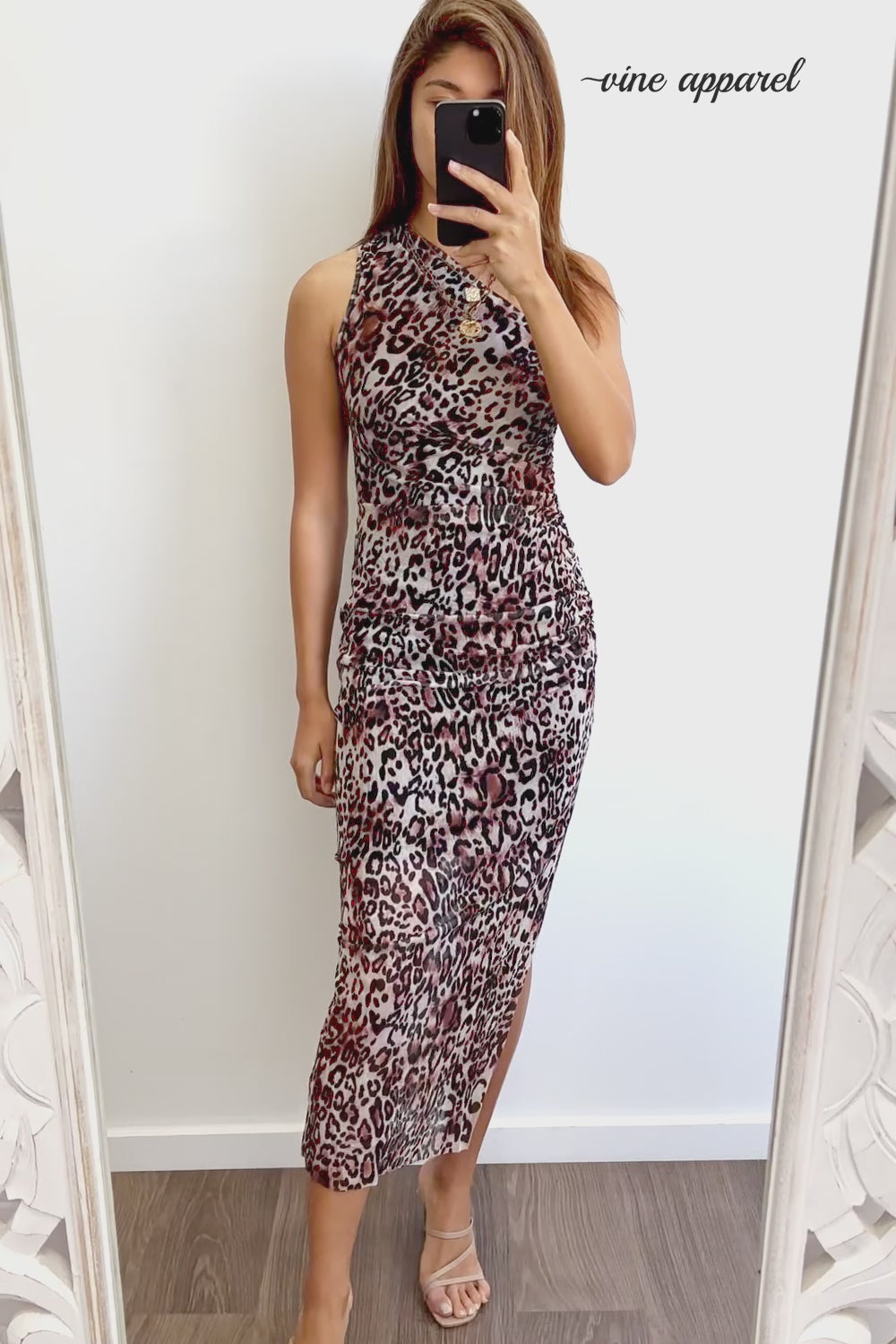 Surprisingly flattering, even though it’s tight, because of the rouching all up the sides. One shoulder, it can actually be worn backwards so on the other shoulder as well. It’s a good leopard, and we like it.