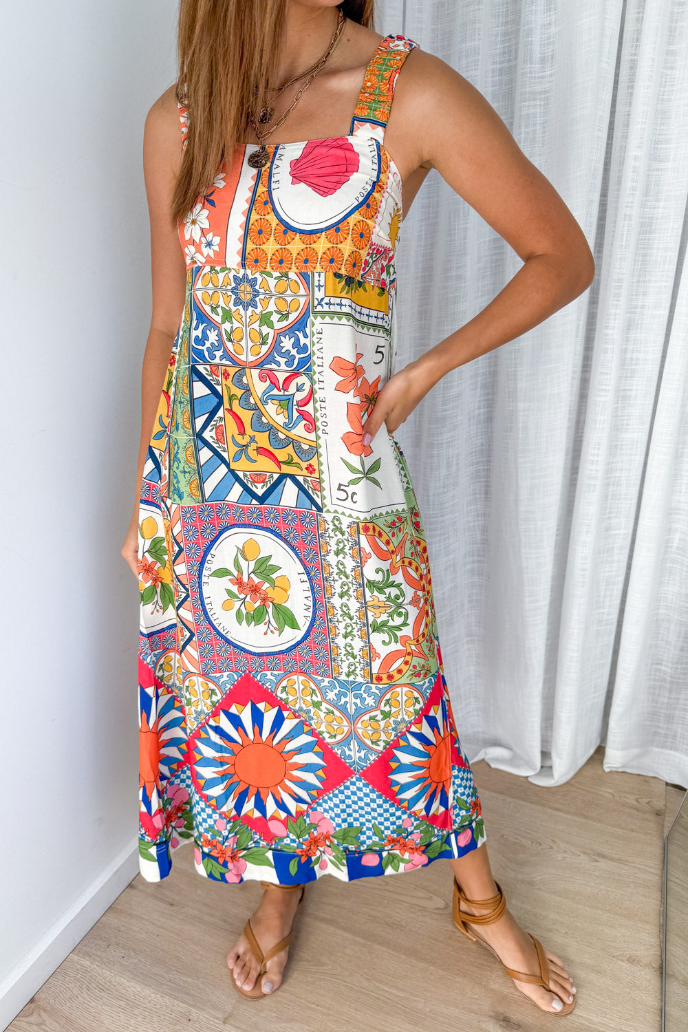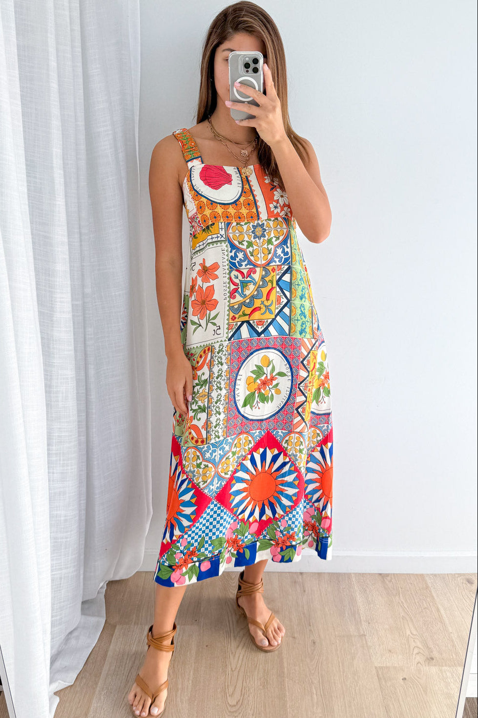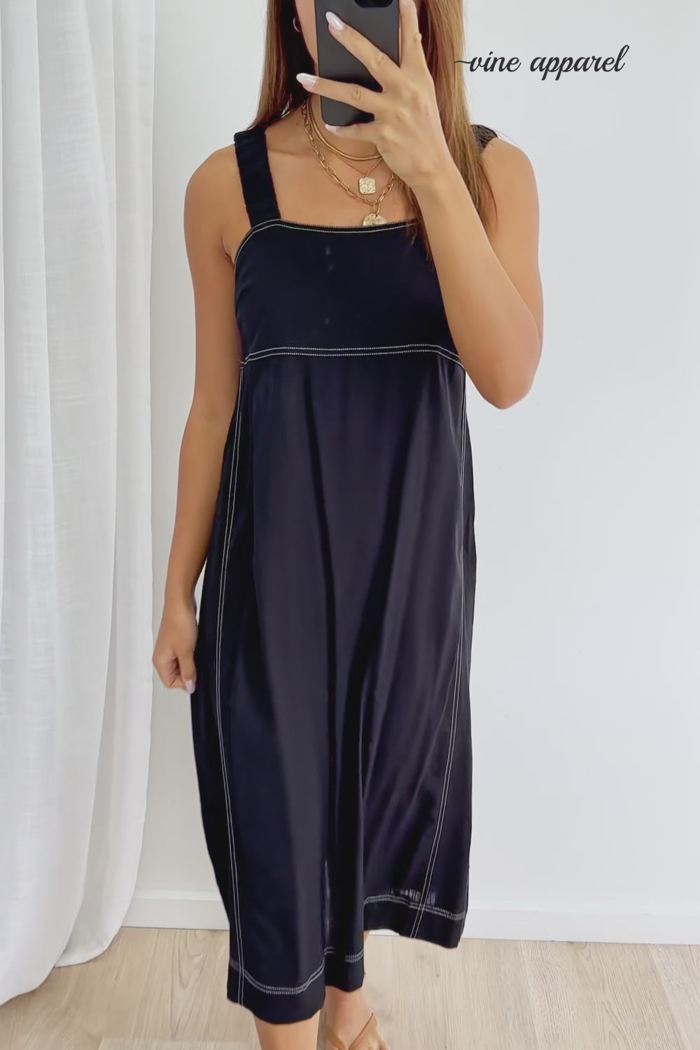This dress is just an easy throw on. The straps are thick and stretchy, the length is good, and there’s some stretch in the back of the bust. The contrast stitching gives it a polished look, and it’s just a bit of a fun detail. Easy and just good.