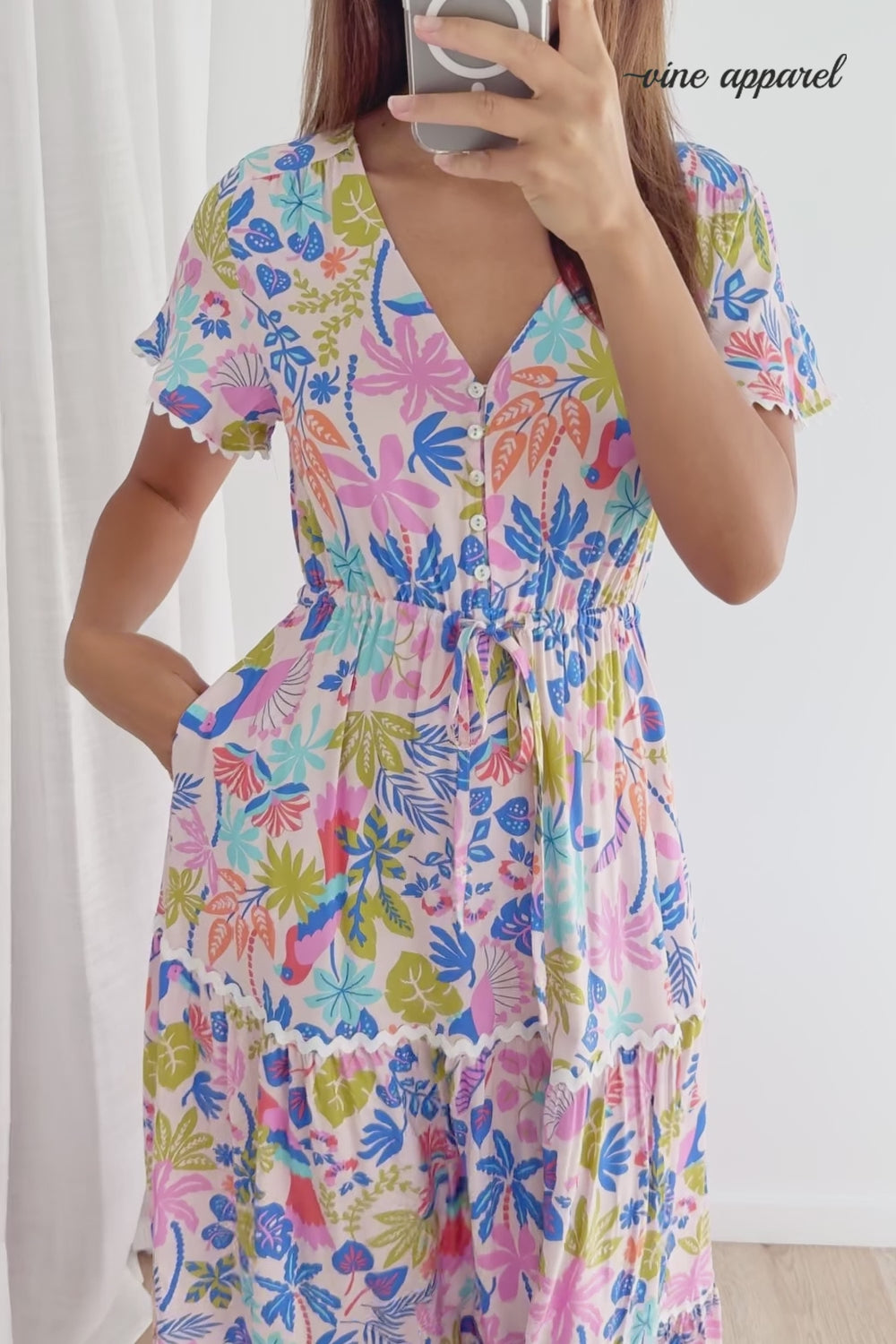 An effortless throw-on that’s a little bit boho yet totally wearable. Elastic rouching around the waist, and the sleeves are fluttery and nice. The length is good, the dress itself is lovely and flowy, and it feels nice on.