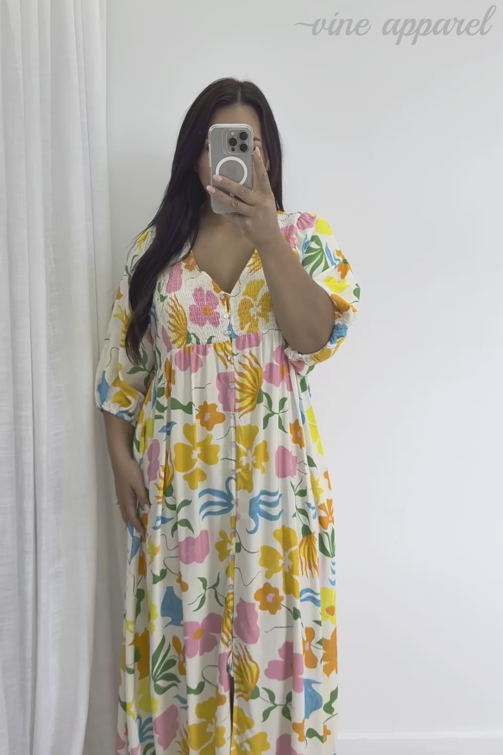 This dress is just so beautiful, we love the fit at the top, then how it drapes into beautiful looseness. Really comfy and such a pretty, flattering, loose style – and the fabric is light so will be gorgeous even on hot days.