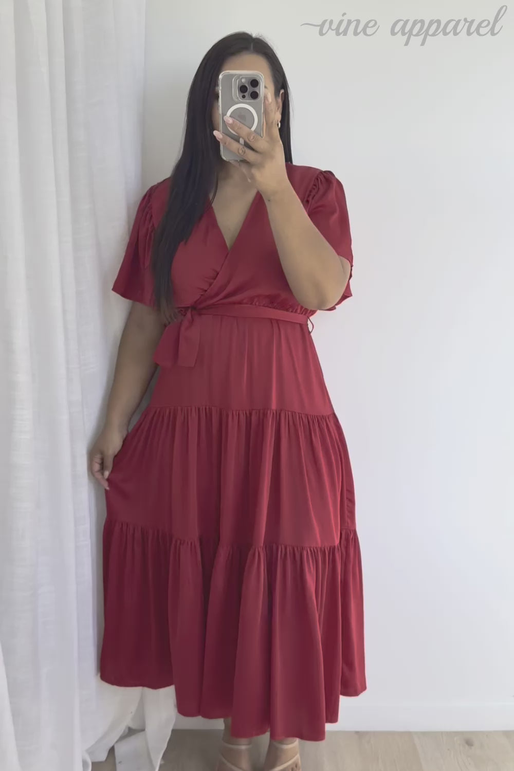 Simple yet beautiful, it falls beautifully, and the tiers give it an extra something. It comes with a belt and looks good with and without it. Even the sleeves are pretty.