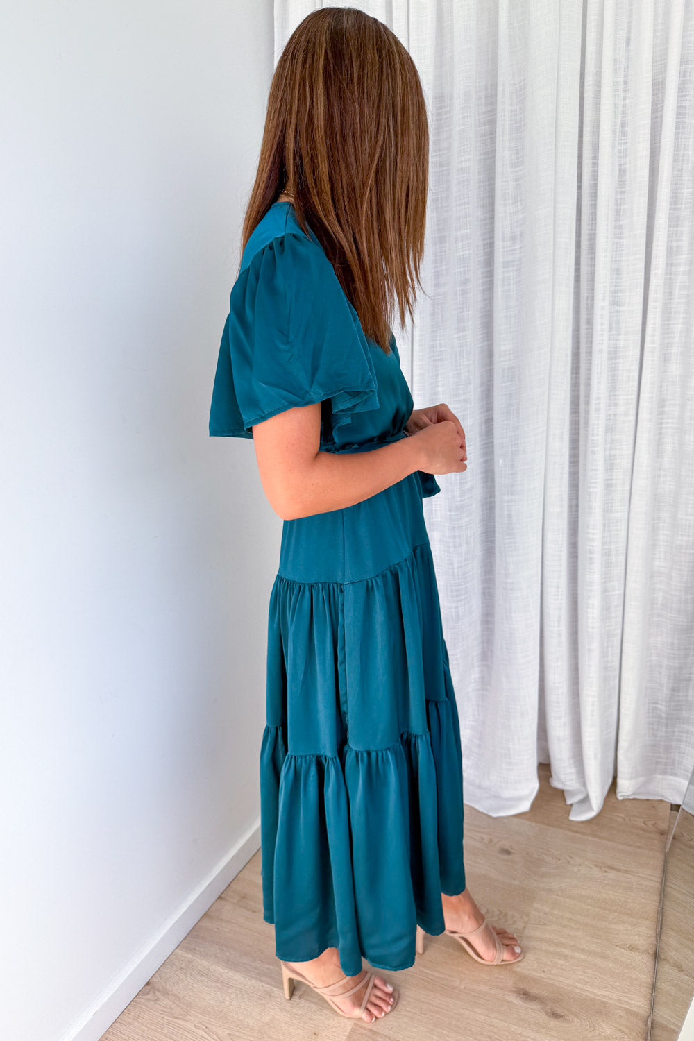 Simple yet beautiful, it falls beautifully, and the tiers give it an extra something. It comes with a belt and looks good with and without it, and it has a functional clasp at the bust. Even the sleeves are pretty.