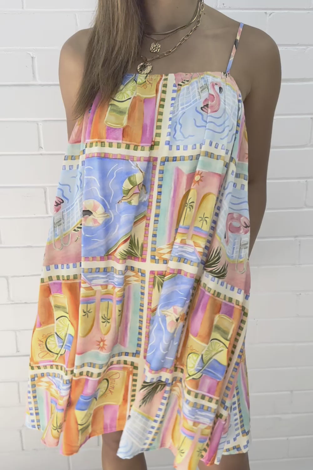 Light and easy and cute and floaty and flowy and just good. Pockets, adjustable straps and the print is so fun. It falls perfectly and it really is just so, so nice.
