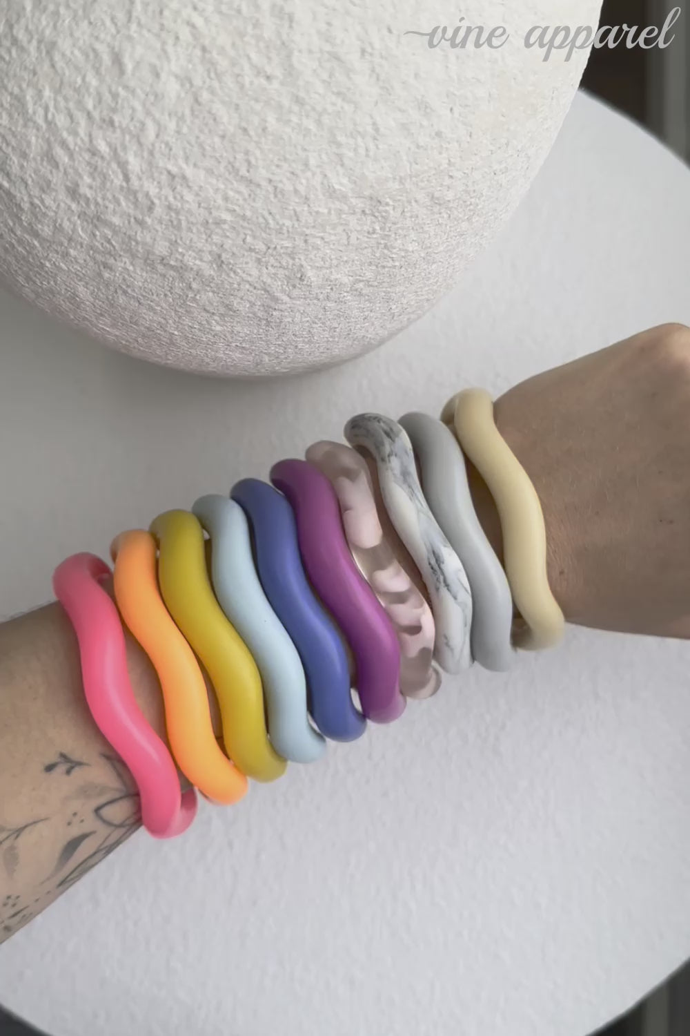 Wavy and fun, this resin bangle is gorgeous - striking yet simple. Looks lovely on its own, or stack it with any of our other resin bangles and bracelets.