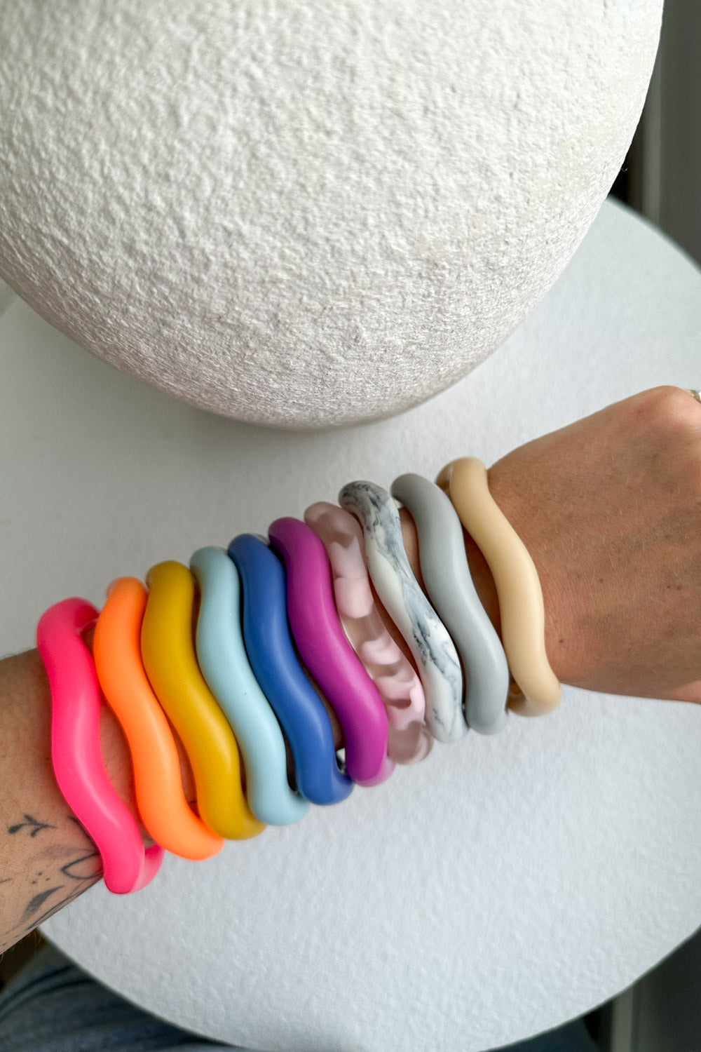 Wavy and fun, this resin bangle is gorgeous - striking yet simple. Looks lovely on its own, or stack it with any of our other resin bangles and bracelets.