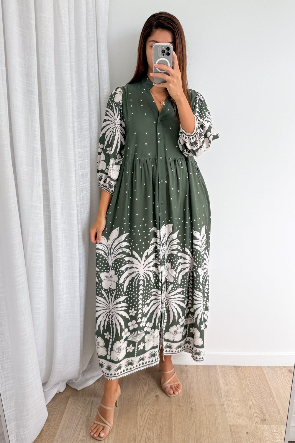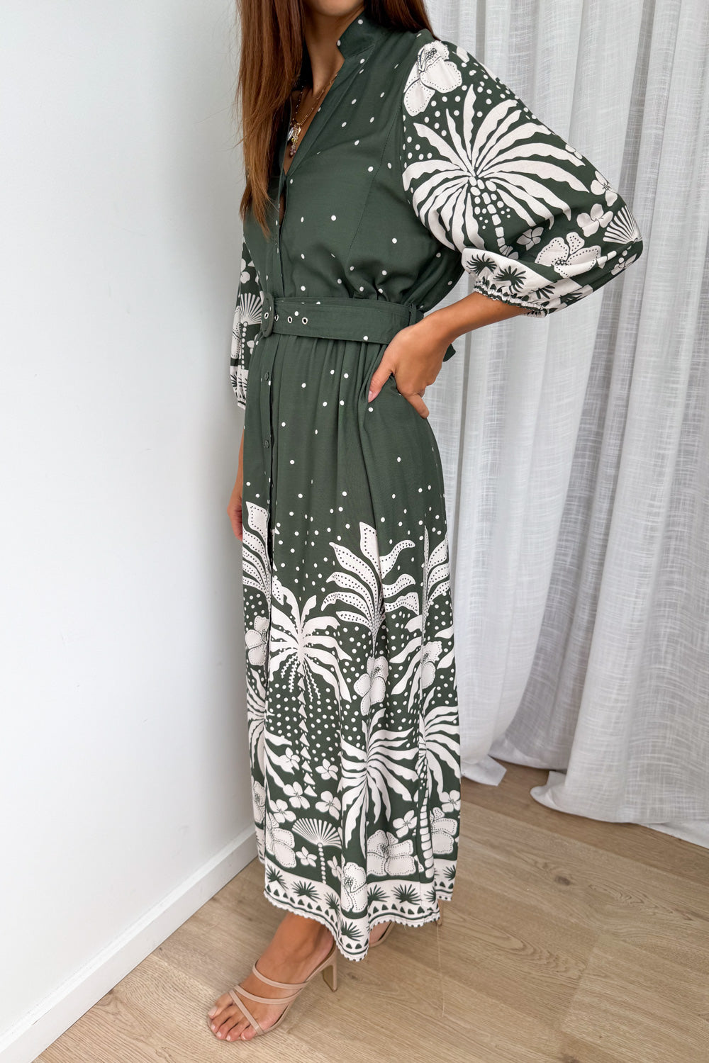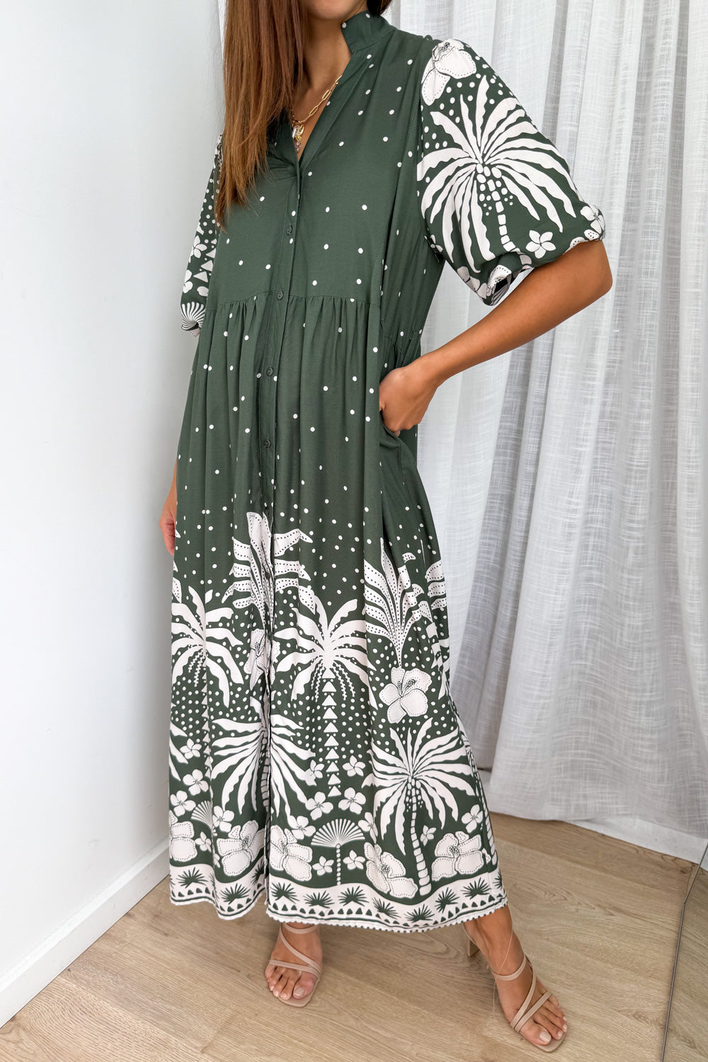 Jayne Dress - Khaki Palm