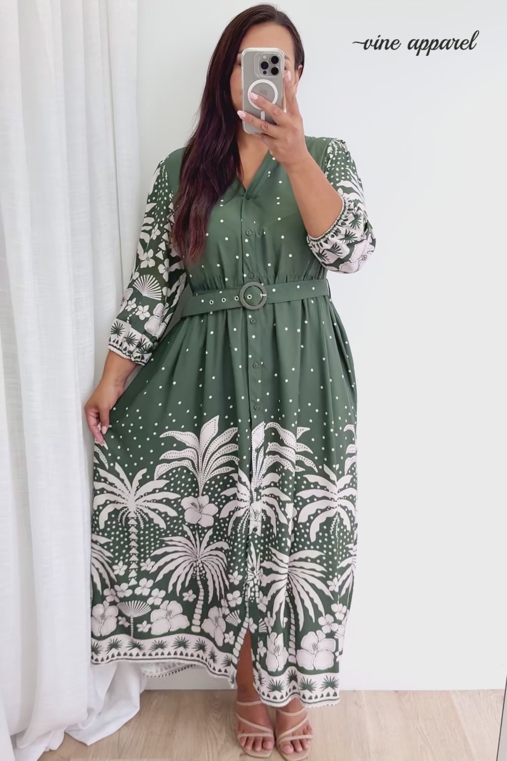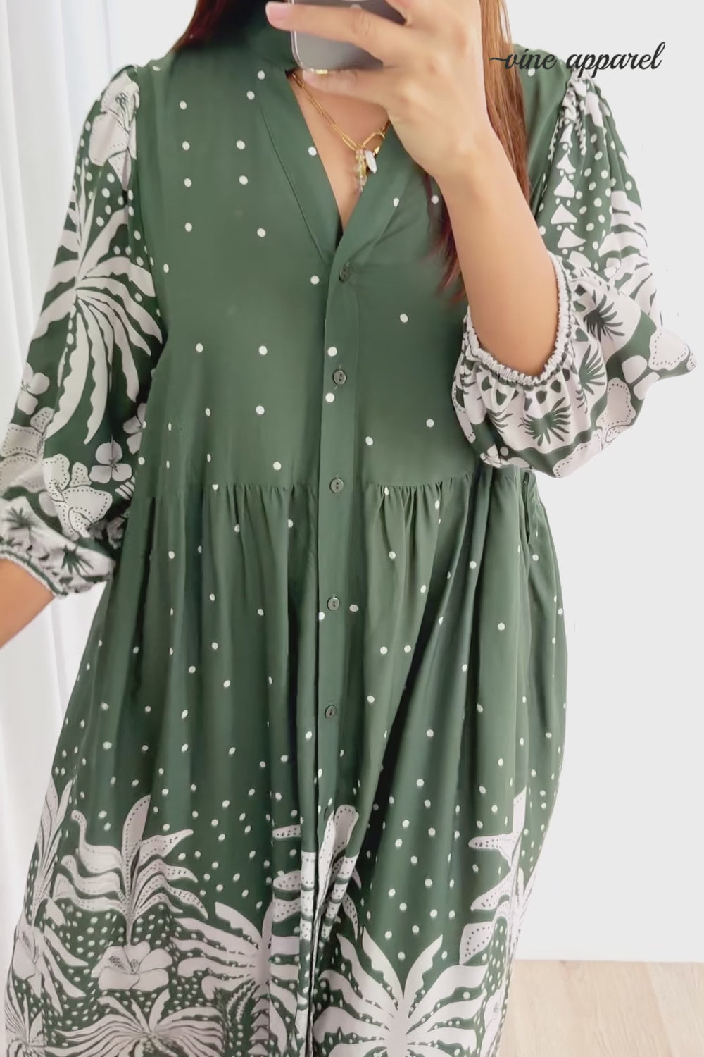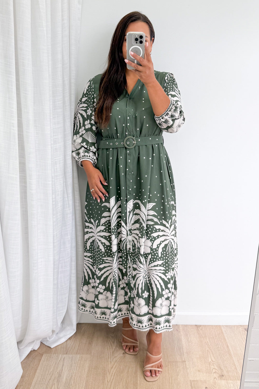 Jayne Dress - Khaki Palm