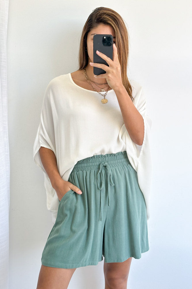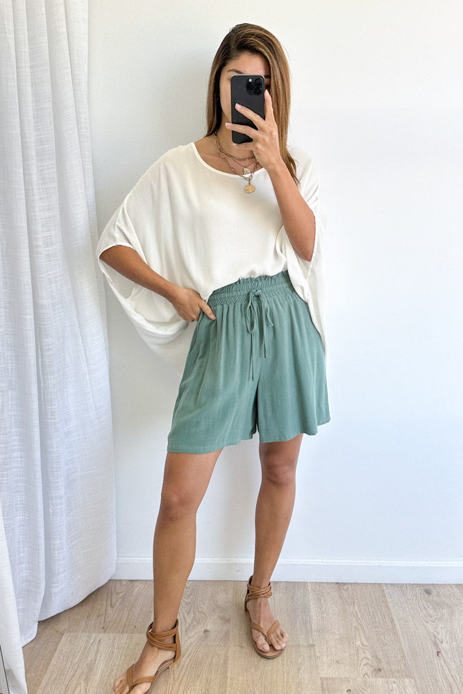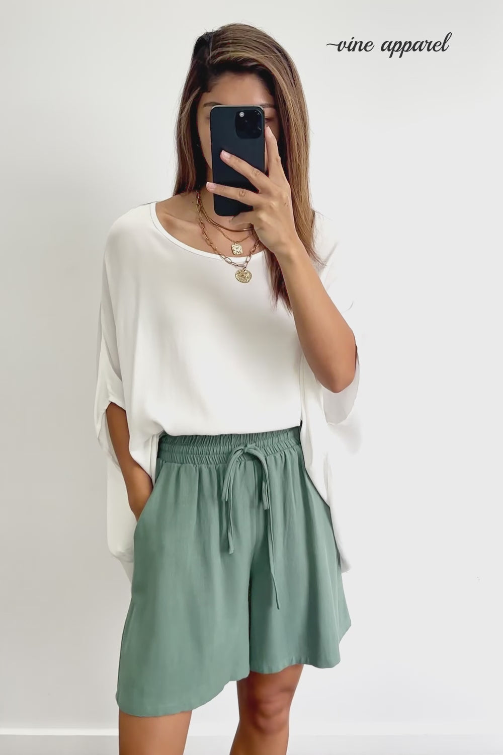 Just a lovely loose, light pair of shorts with an elastic waist, which feel nice on. Flattering and just lovely.