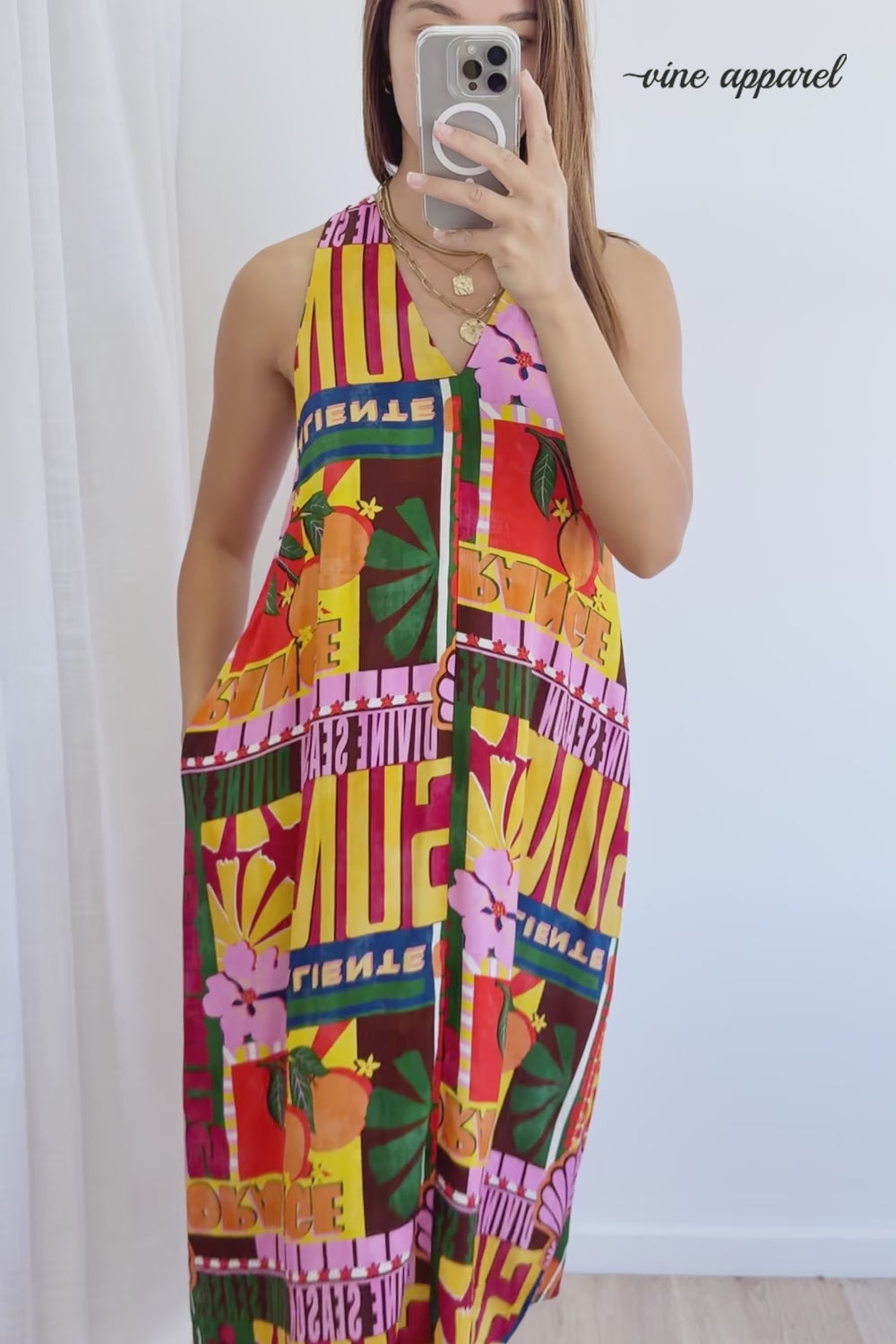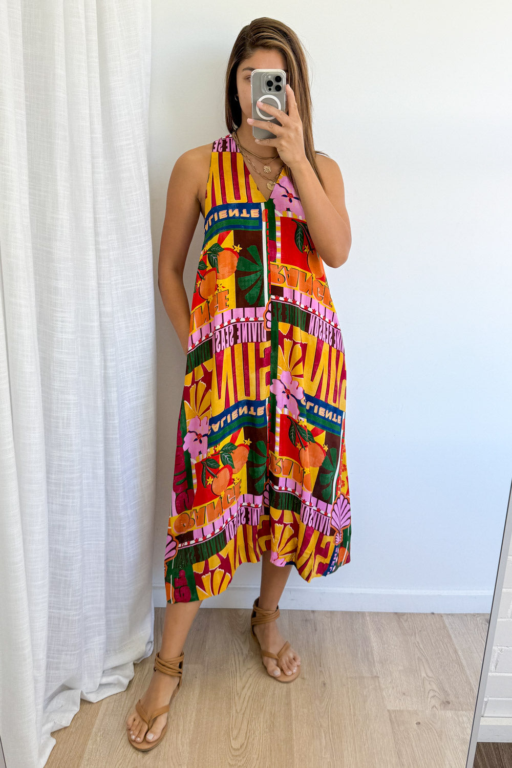 A perfect, effortless throw on dress that is so easy to dress up or down. The shape is good, it falls perfectly. The shoulder straps are good and you can wear a bra, and you don’t get underarm muffins, and it has pockets. A good, easy length, and a lovely soft fabric.
