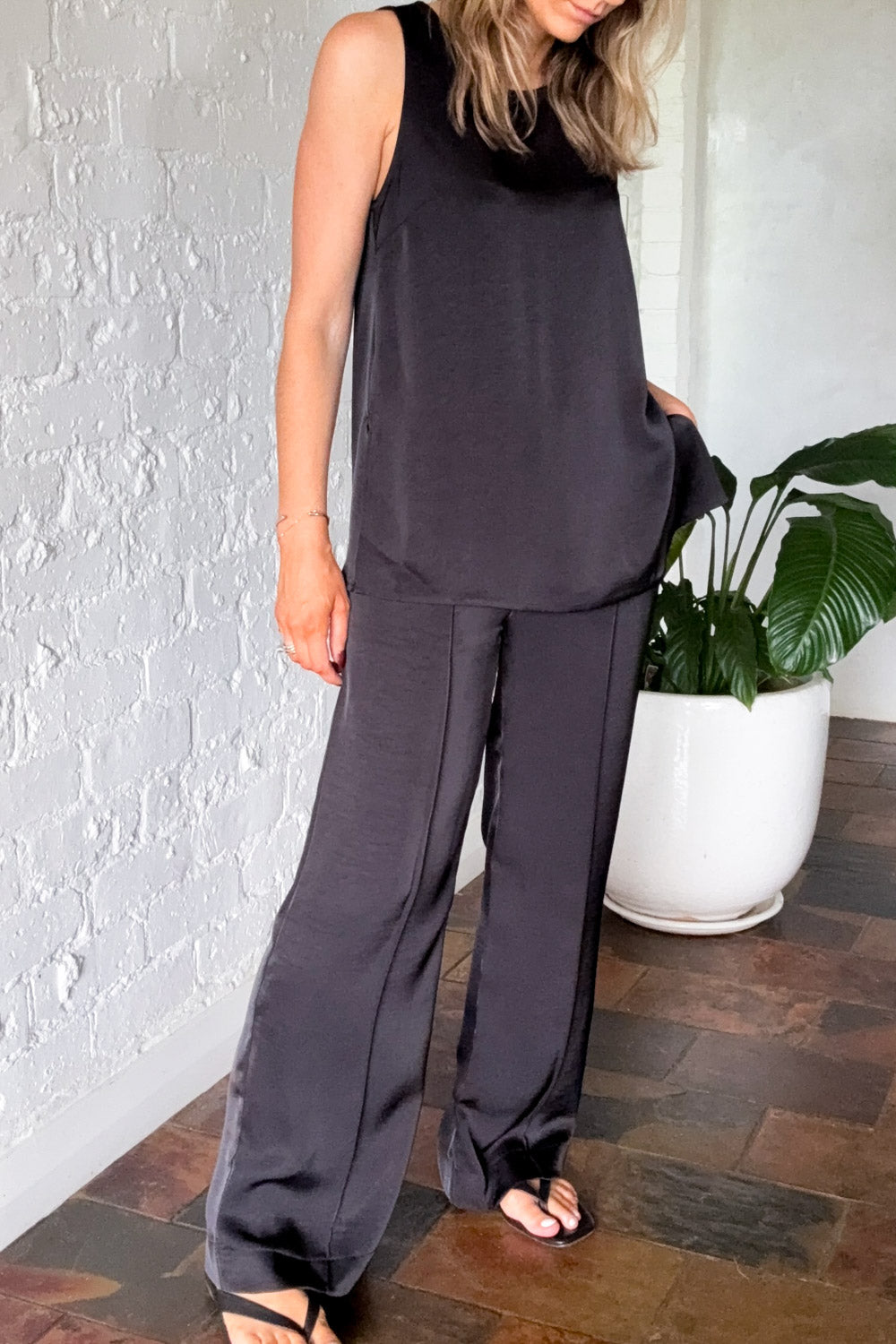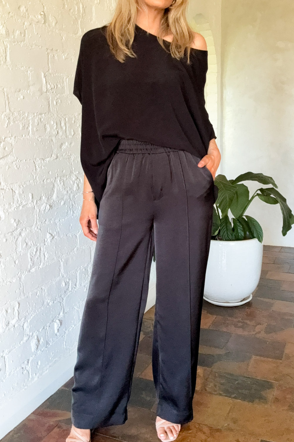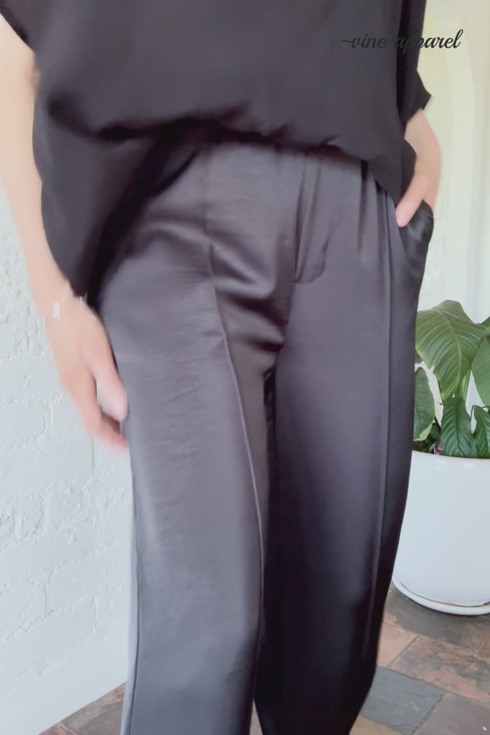 Loose, light and lovely, they have a silky feel, and the shape is super flattering. Featuring an elastic waistband, pockets and the black colour is STUNNING. They're dressy but comfy and amazing.