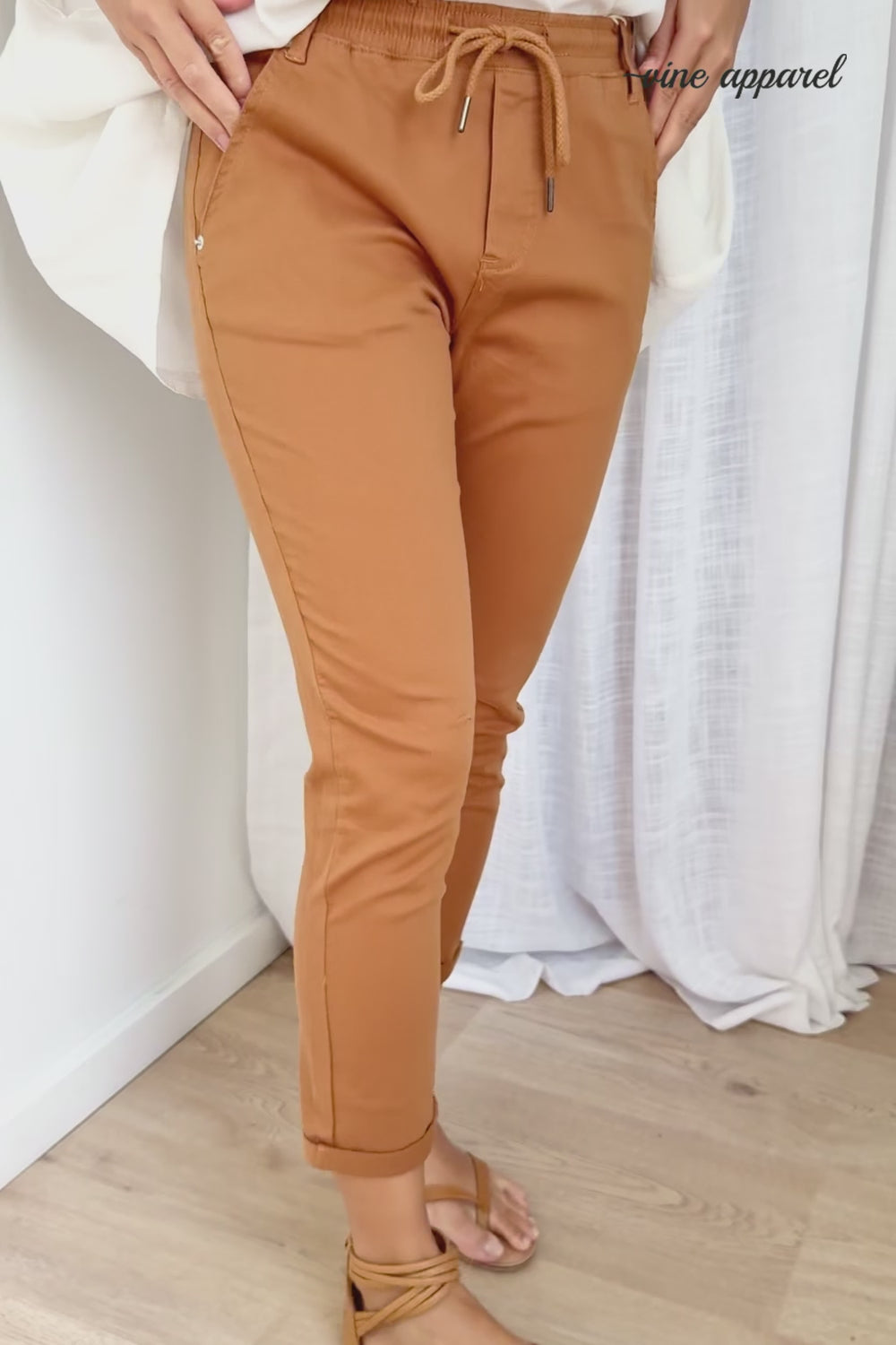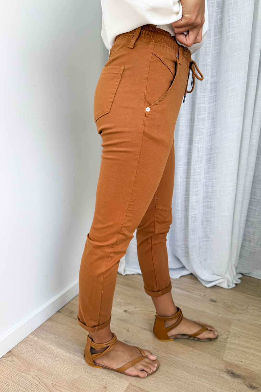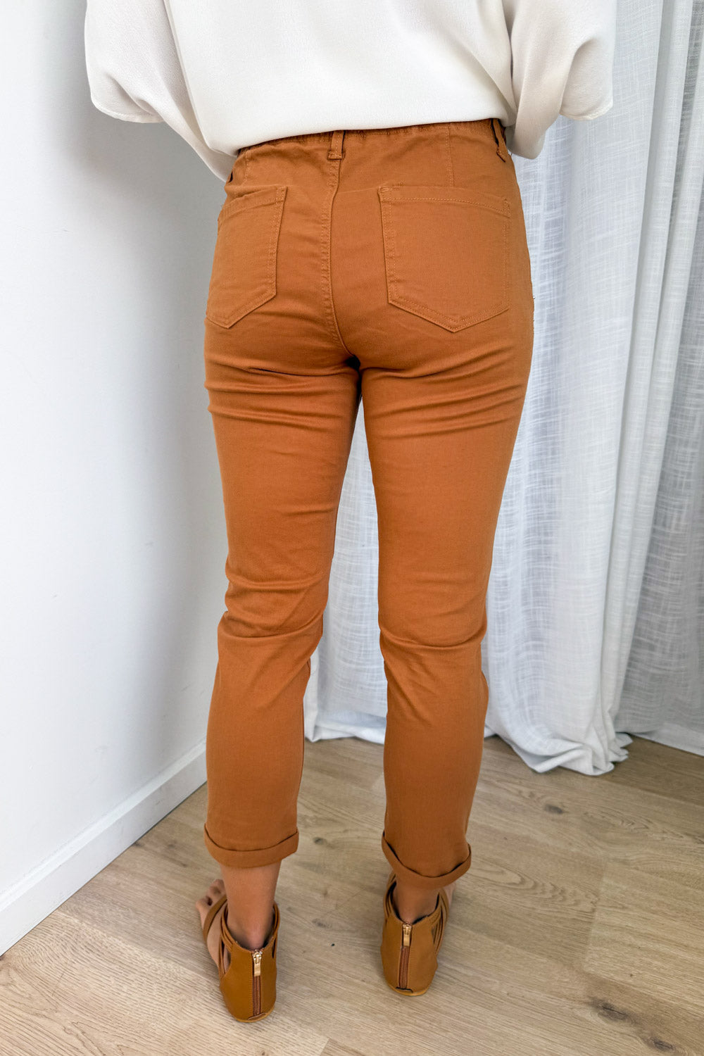 A very comfy skinny leg pant. I want to say they’re jeans, but they’re not, they’re actually pants. The waistband is stretchy and adjustable, you can cuff the bottom for a cropped look, and they have pockets. They feel really good on, they’re SUPER stretchy, and you’ll like them. Promise.