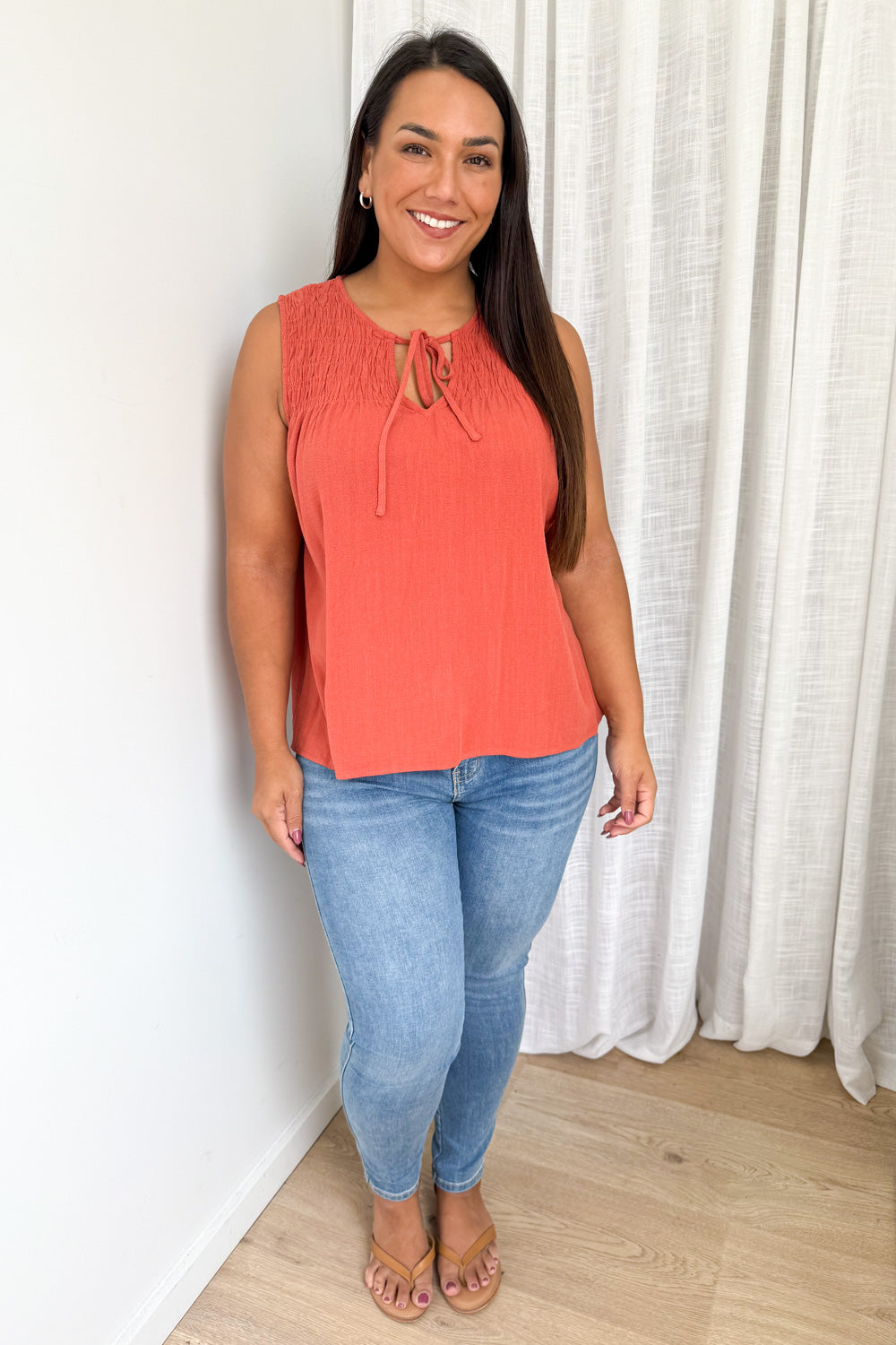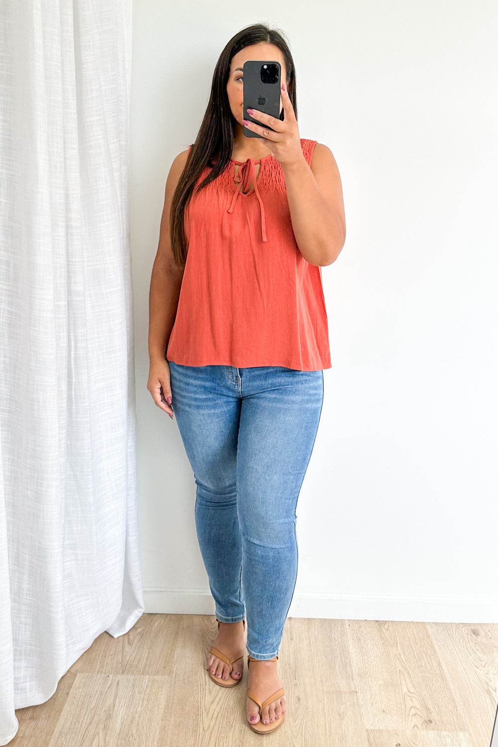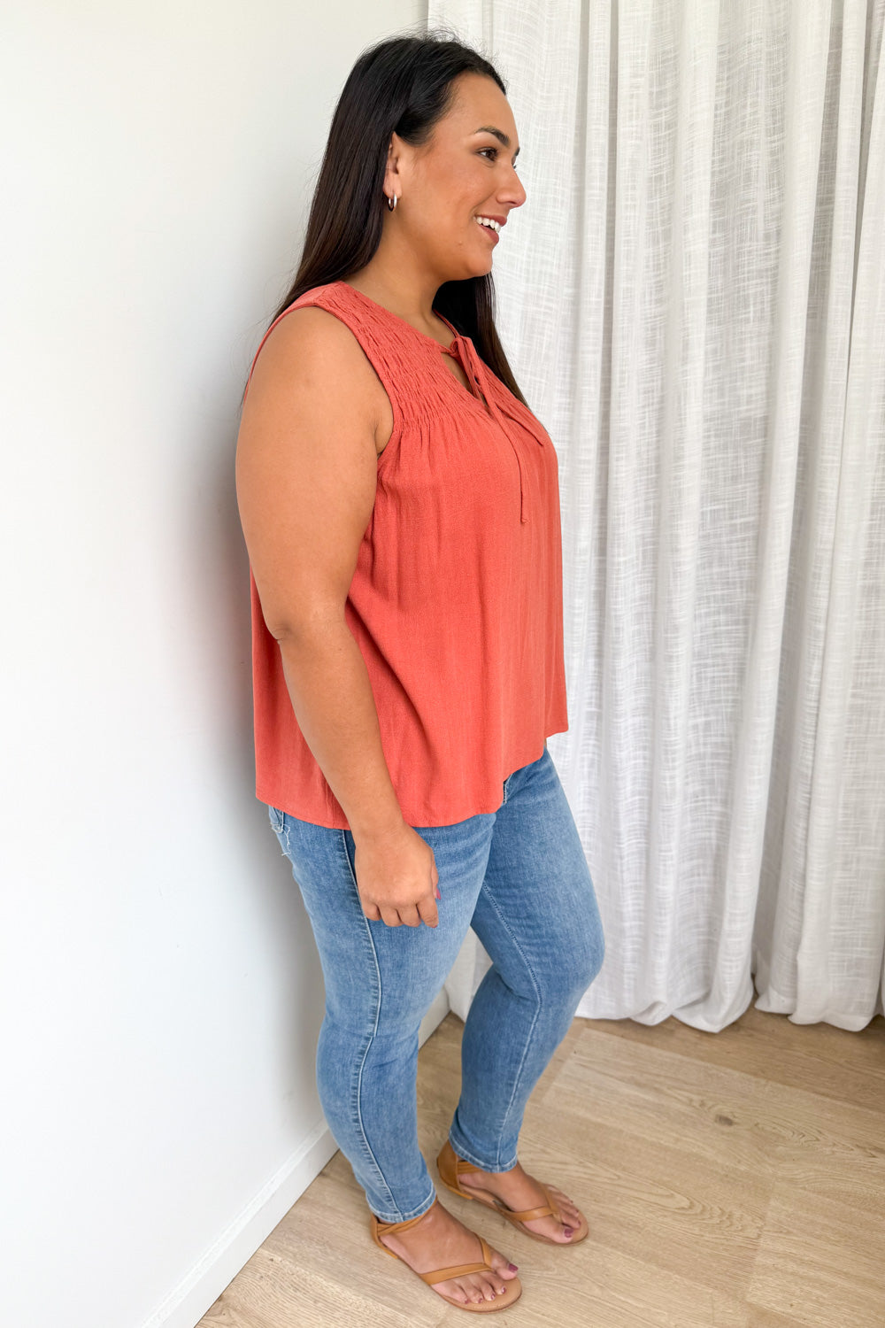Just a cute linen blend basic top which you can wear a bra with. Not long and not short, it’s just easy.