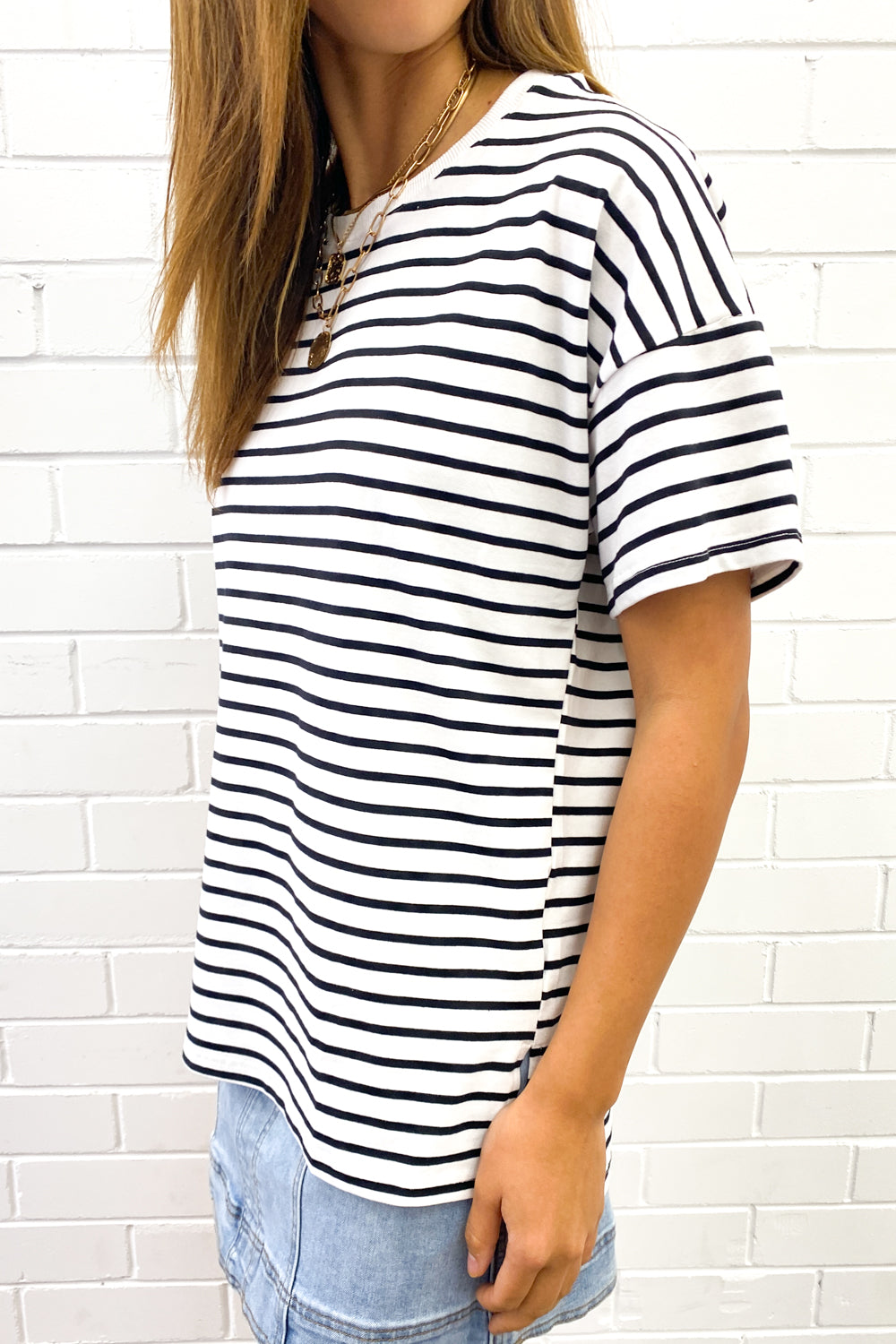 Just a really good oversized tee in a really good stripe. The shape is good, the length is good, the fabric is good, the sleeves are good.