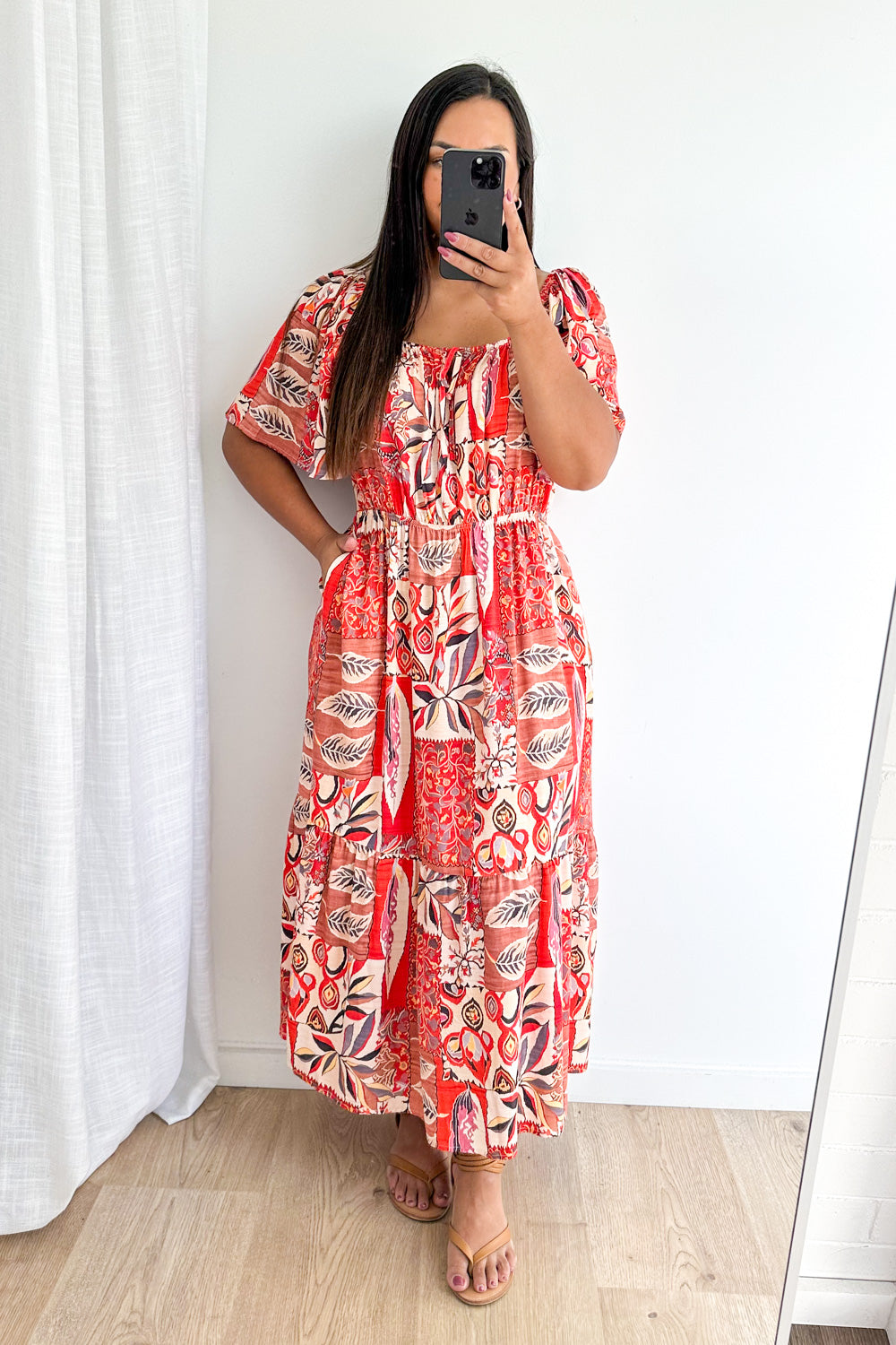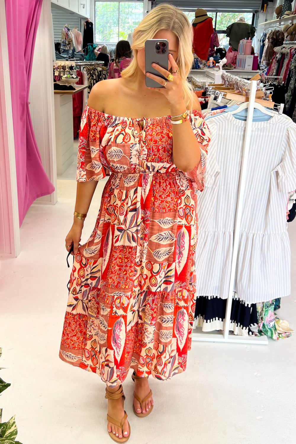 We love things which are versatile and can be worn multiple ways, more bang for your buck. Can be worn both on and off the shoulder and its a really pretty print, this dress is flattering and falls beautifully, and it has pockets.