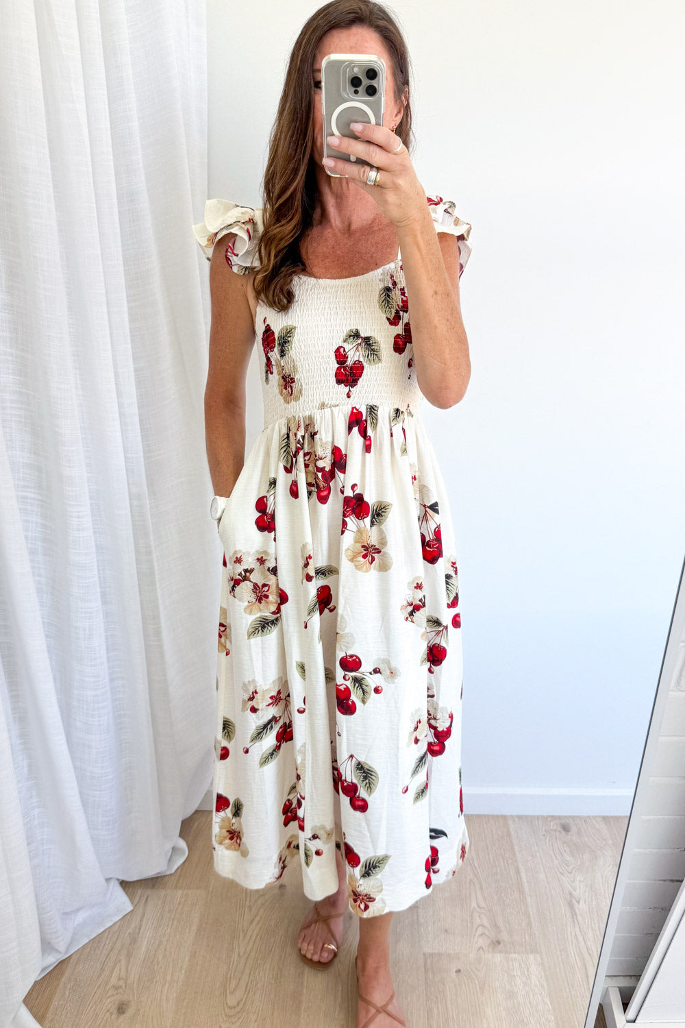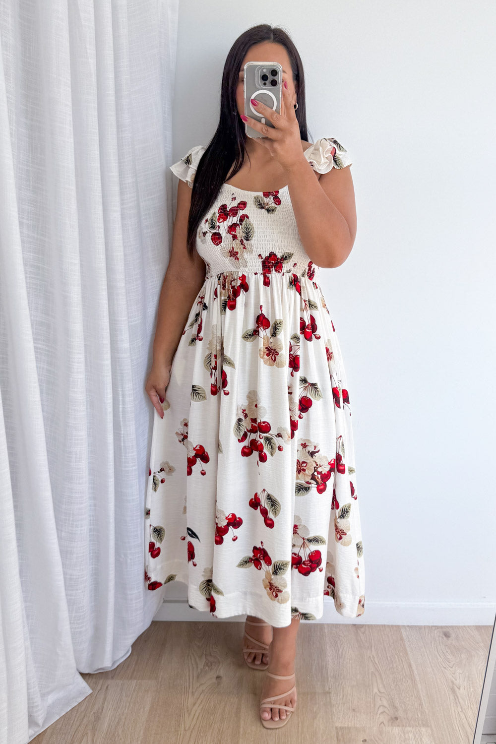 Such a pretty dress, it has elastic at the bust at the front and back. Featuring a thick strap so you can wear a bra with a really cute frill on it, it’s pretty but still so easy, and it’s quite weighty so it feels expensive. Love.