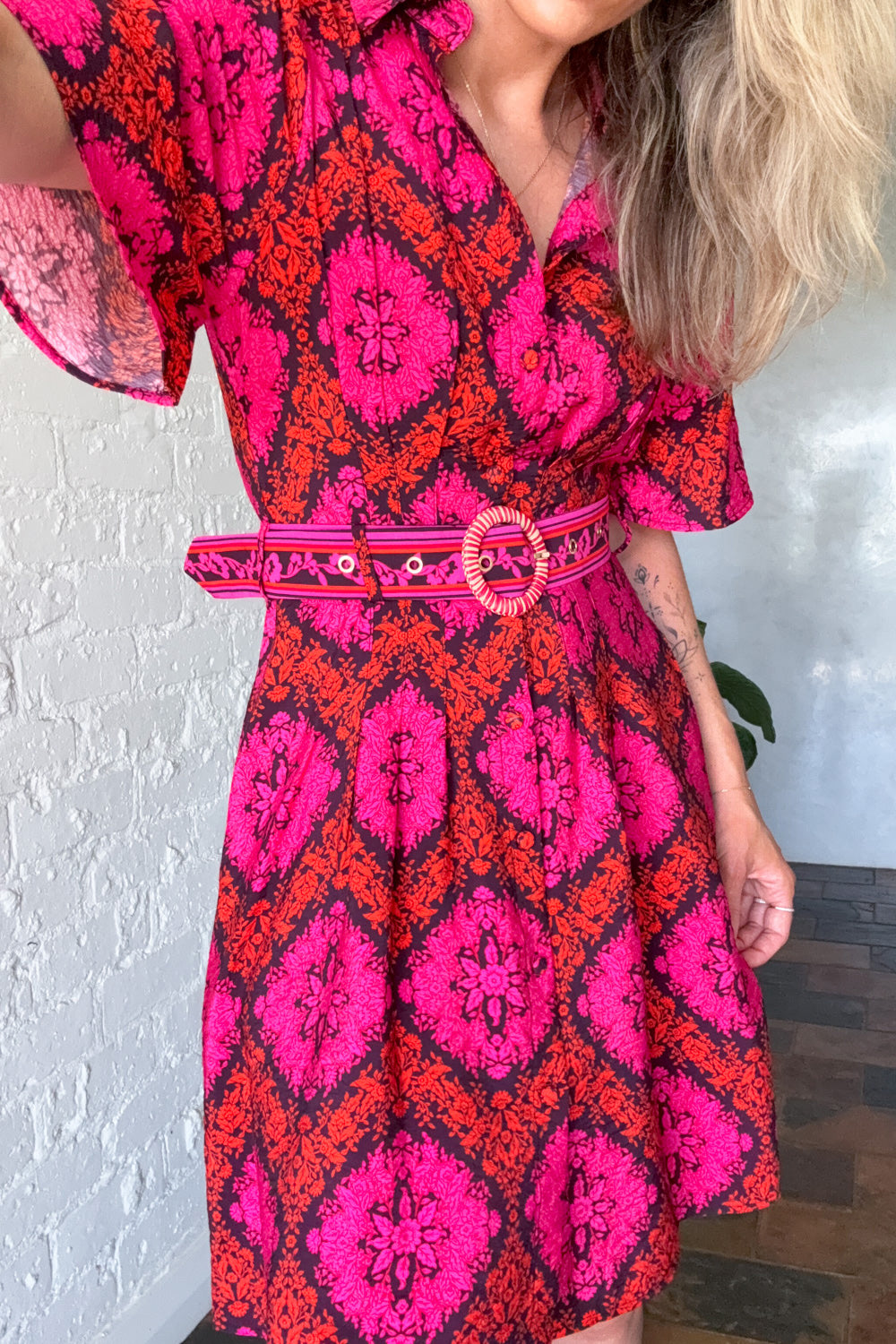 An above the knee dress which flatters and falls beautifully. Featuring a V-neckline with a collar and functional buttons, it balances polished details with effortless wear. A lovely sleeve and pockets add practical touches, while the removable belt lets you style it your way— belted, with your own, or simply on its own. Perfect for everything from casual days to dressed-up nights.