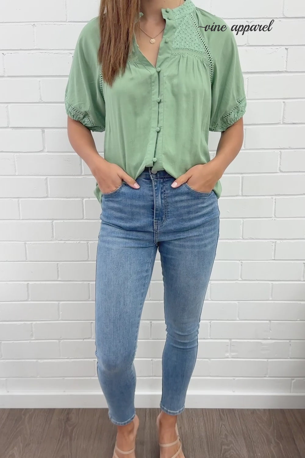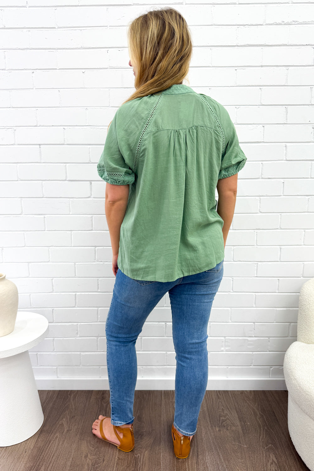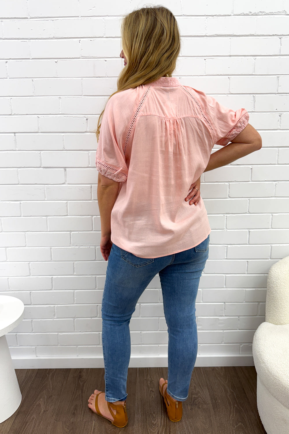 A little bit structured, but also not. Does that make sense? The fabric is a little bit thicker so it almost looks a little structured, but it sits really nicely. Cute sleeves and buttons, it’s a little bit boho yet totally wearable.
