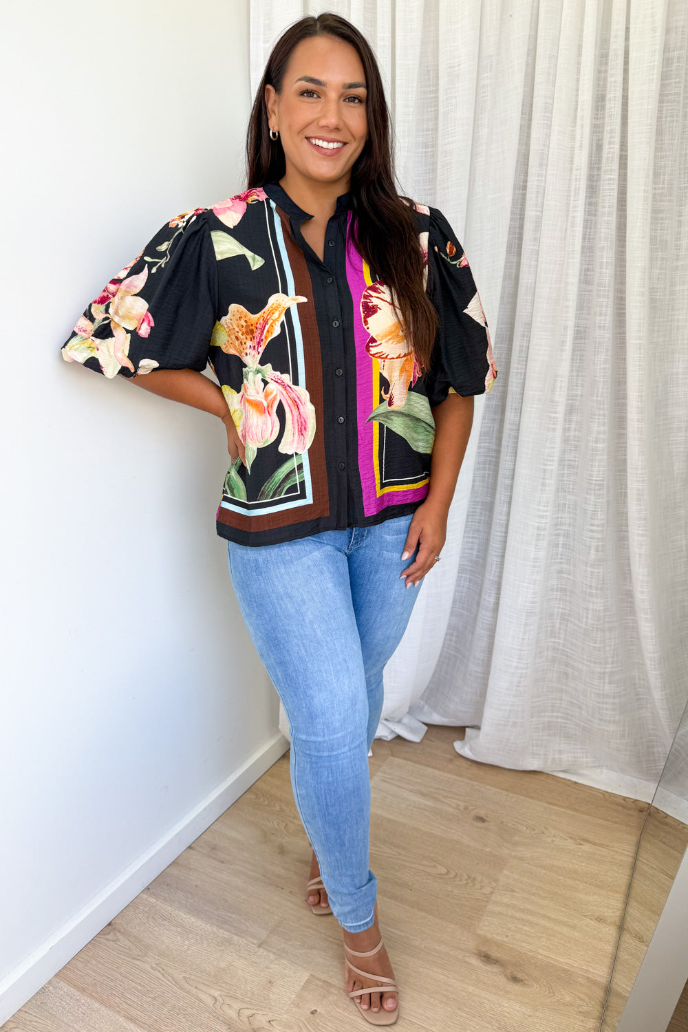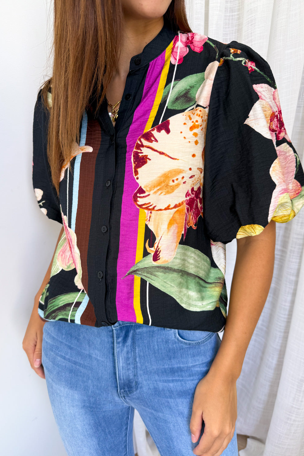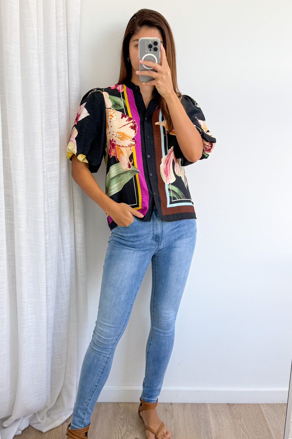 Easy to wear and easy to style, we love the shape. Tuck it in, wear it loose — whatever suits your mood. The print makes a statement, and the slightly puffy sleeves give it a refined feel.