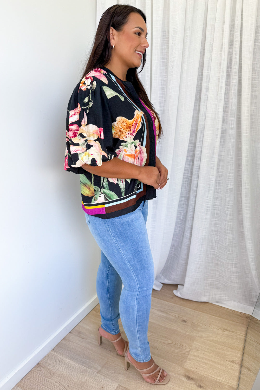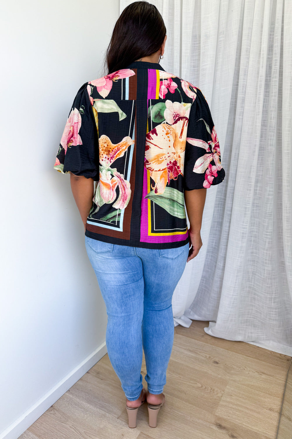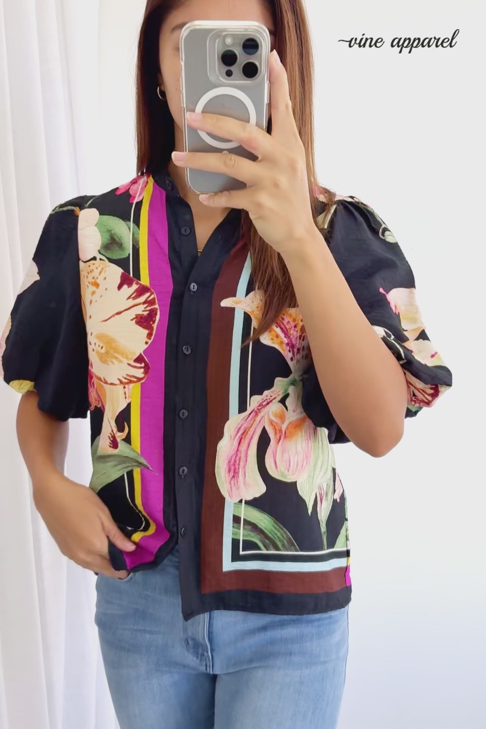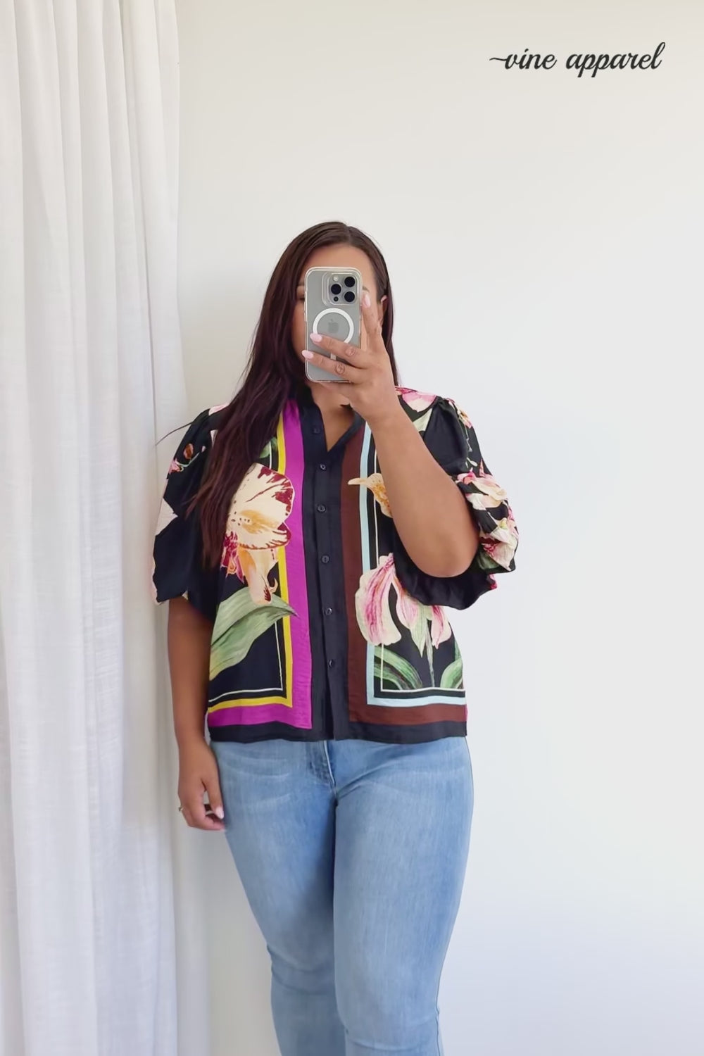 Easy to wear and easy to style, we love the shape. Tuck it in, wear it loose — whatever suits your mood. The print makes a statement, and the slightly puffy sleeves give it a refined feel.