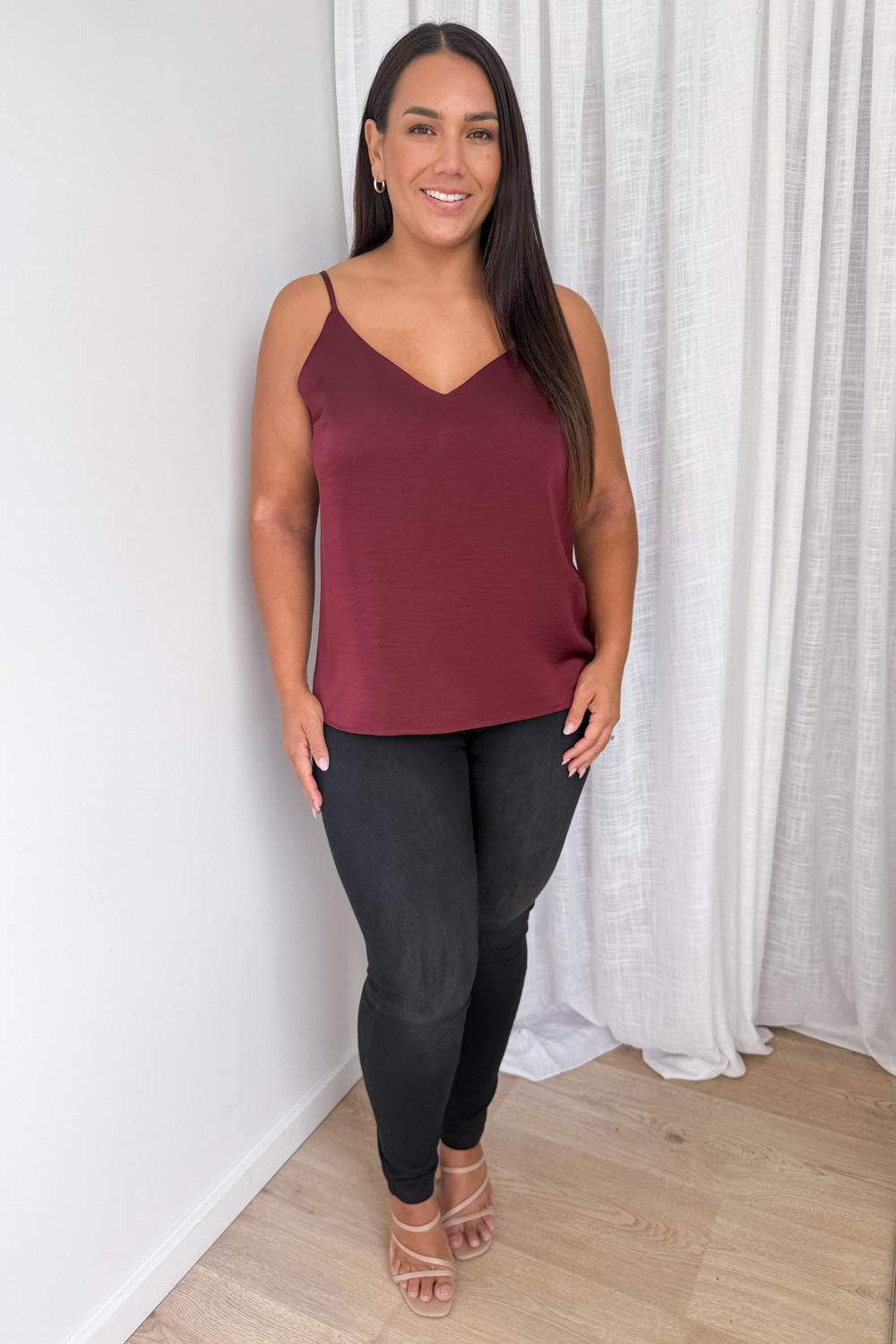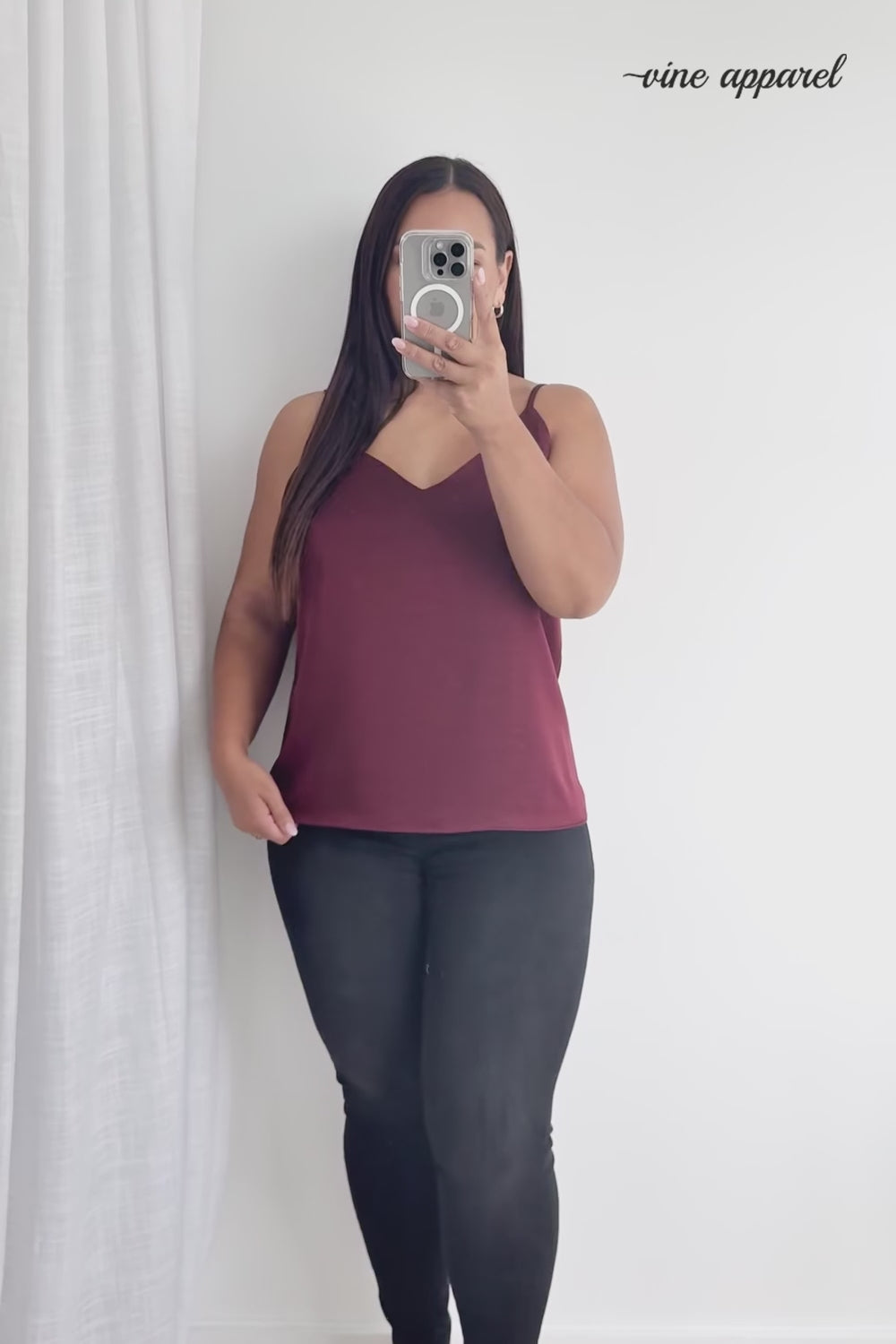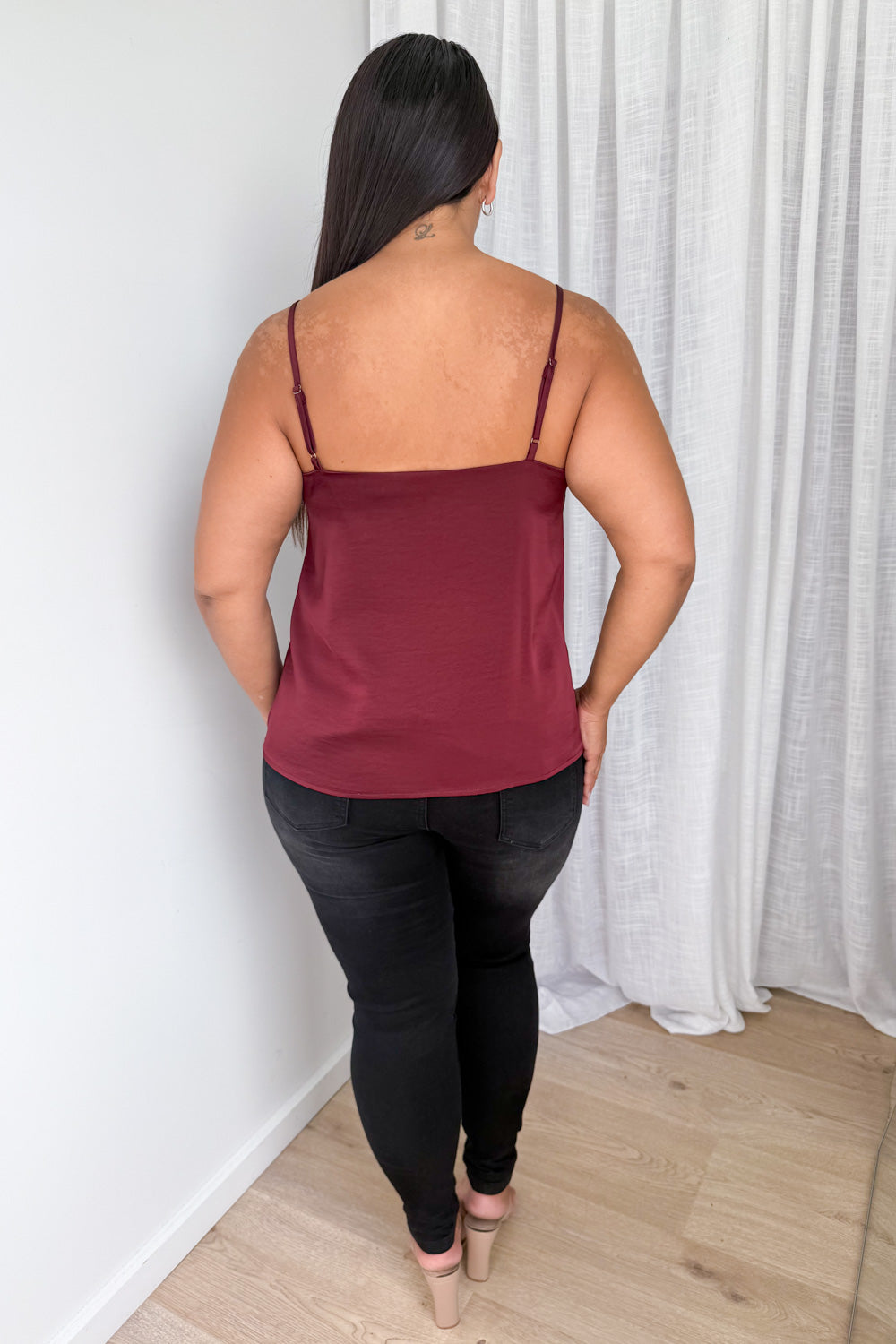 A silky kind of version of our Kellie Cami, which is just a really good basic. A good length, loose but not super baggy and has adjustable straps, a– win!