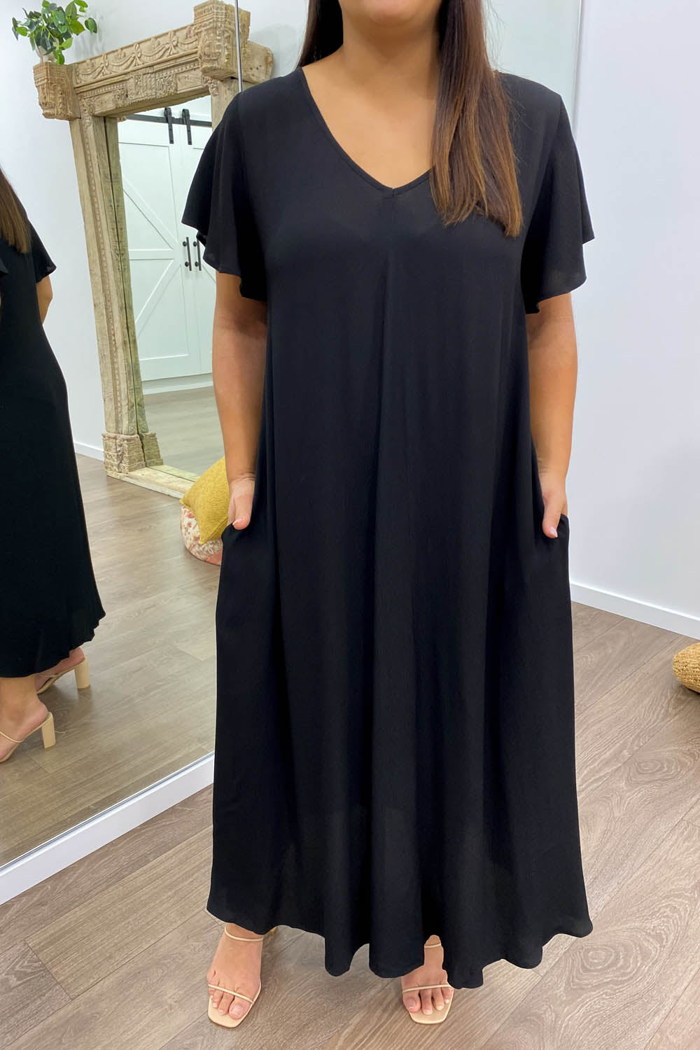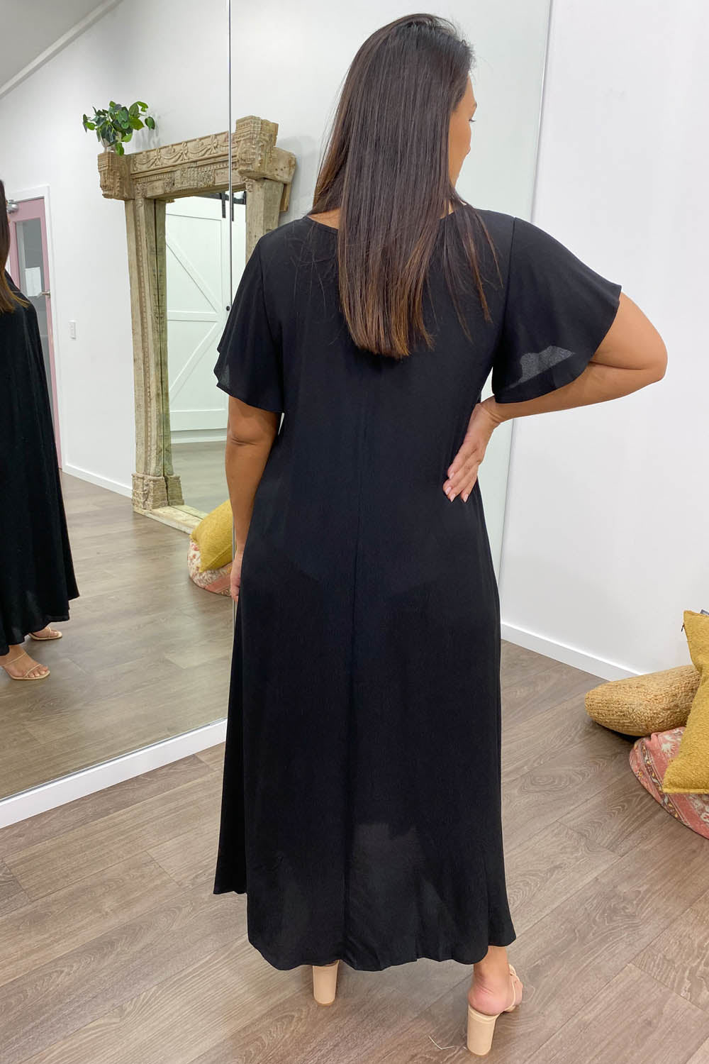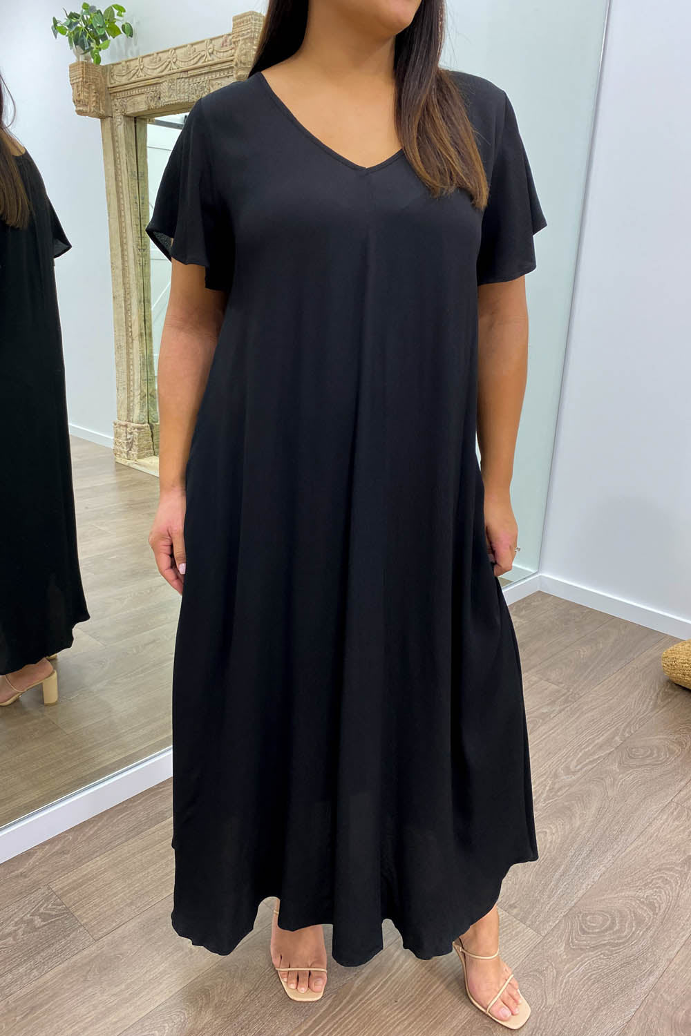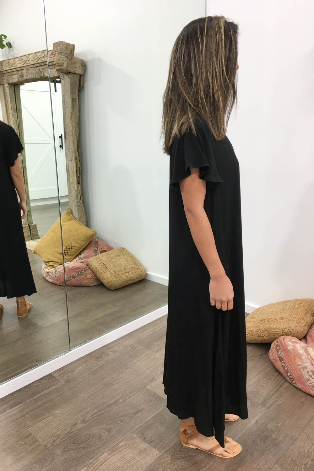 THIS DRESS IS STUNNING!!! So, so beautiful. The cut, the way it falls, the way it floats around you as you walk, and the simplicity of it. The sleeves are gorgeous – a good length and somehow pretty, almost like a frill but also not a frill, does that even make sense? Anyway, we LOVE it.