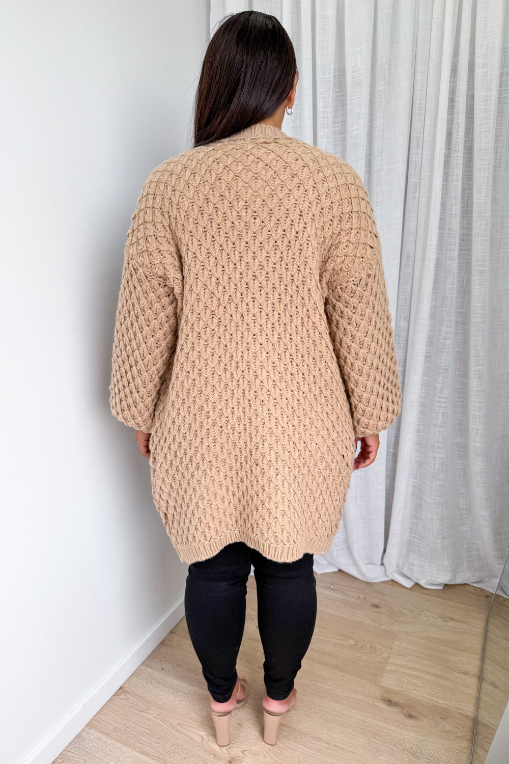 Loooove. So, so soft. Love the almost plaited detail all over it, and the way it fits and falls. It has pockets, the sleeve length is good, and it’s so cosy and warm.