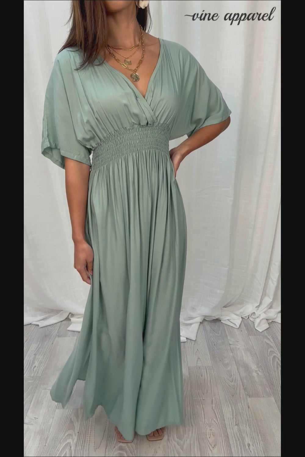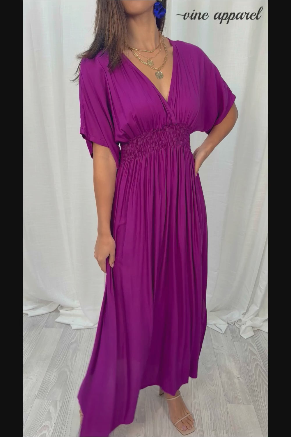 We've had this dress for quite a few years now, and we'll continue to have it, because it legitimately flatters every single body it goes on. Seriously. The shape is perfect, the elastic under the bust is perfect - adds shape and enables it to drop BEAUTIFULLY, and you can eat and breathe and do all the things in it - it can also be worn if you happen to be pregnant. And it has good arm allowance, and the shape of the sleeves is really nice.