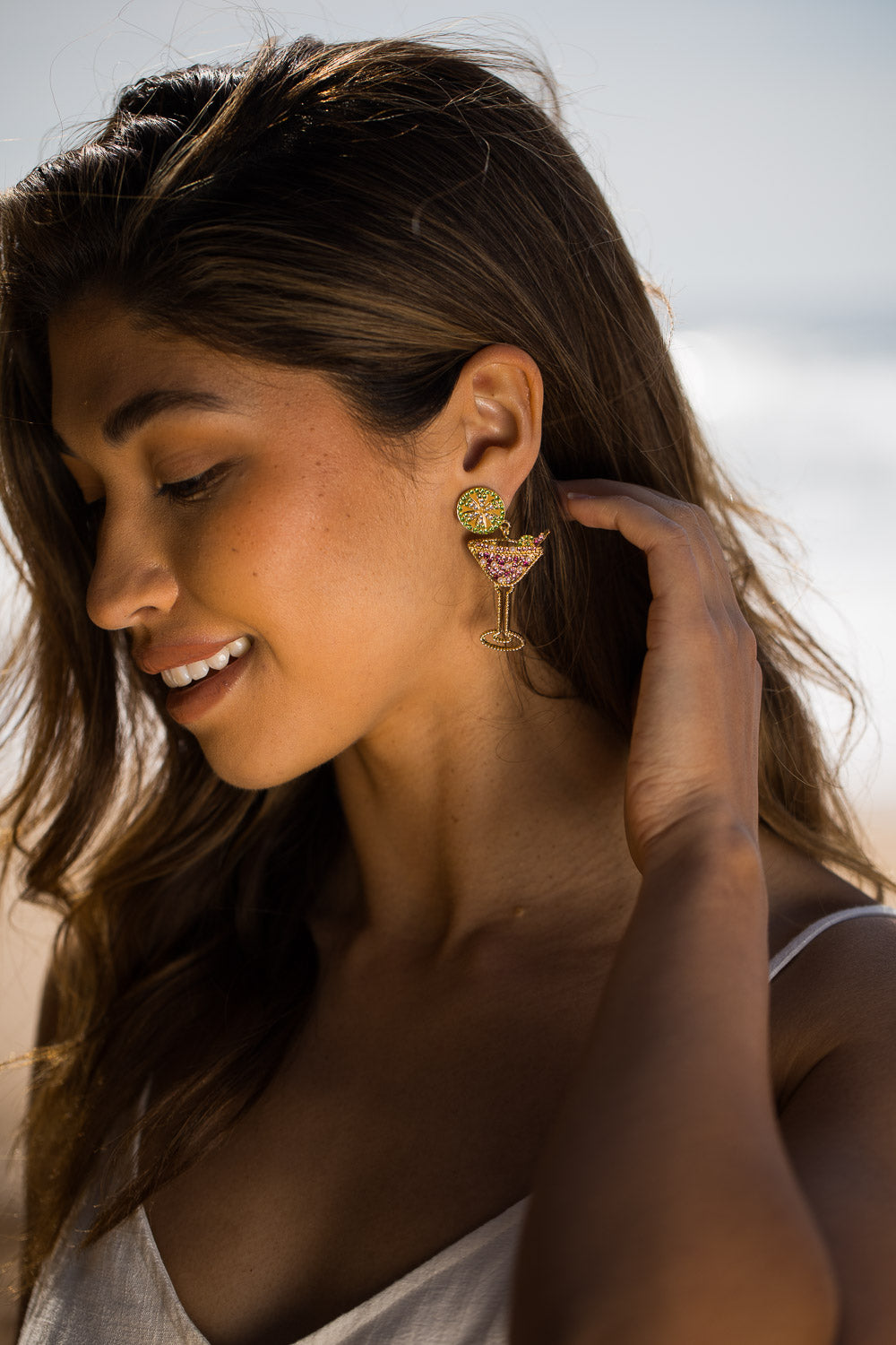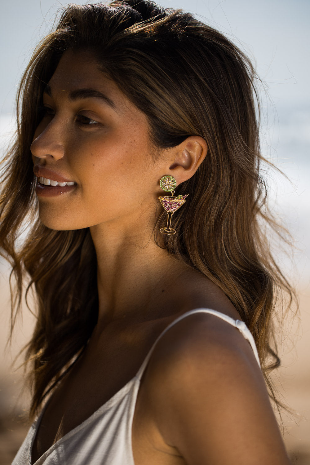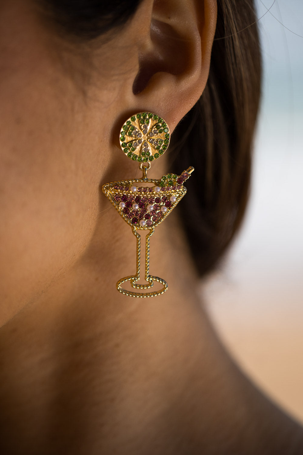 Cute little sparkly martini glasses which are just so fun! Nice and light to wear, as in not heavy on the ears.