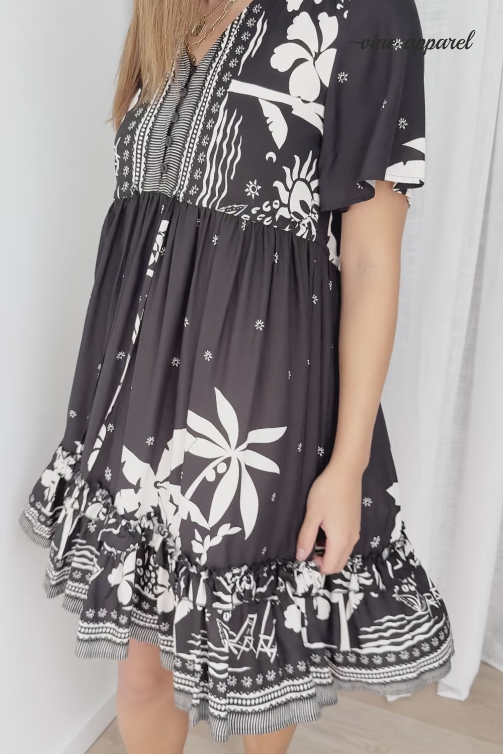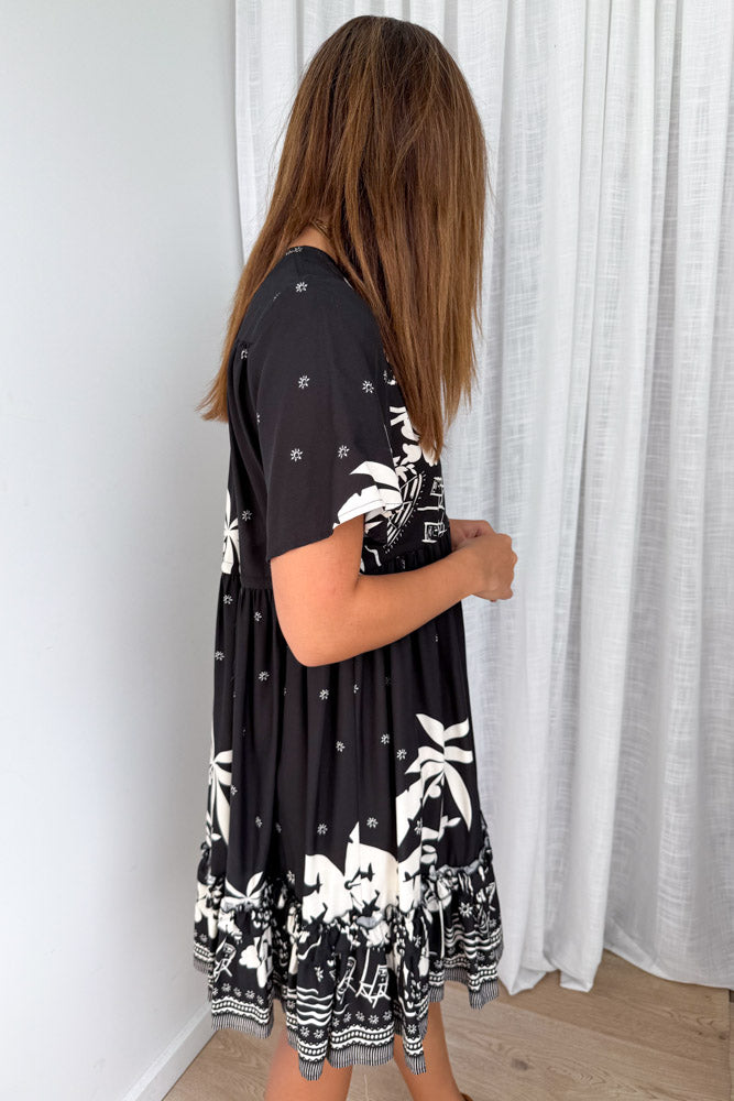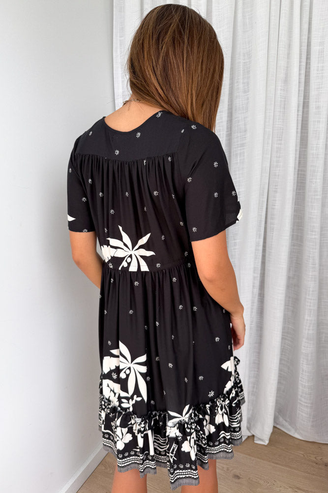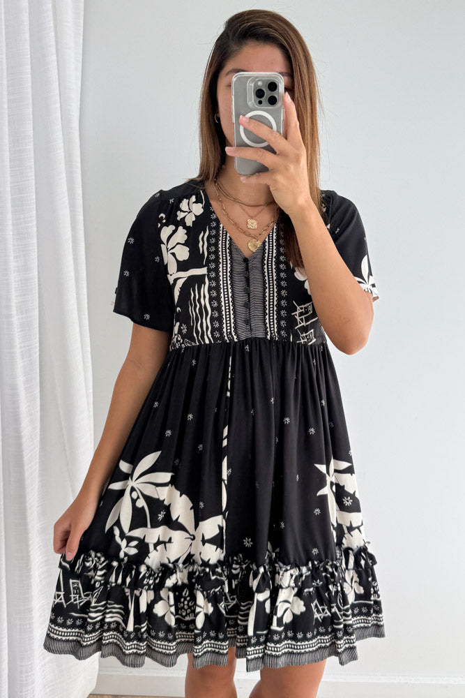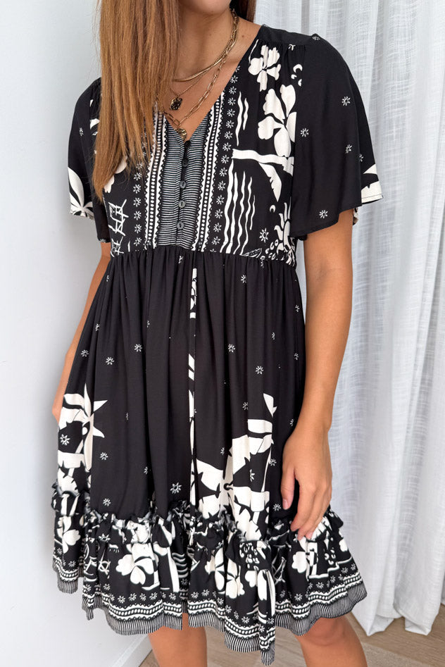 Sunnie Dress - Black White Palm