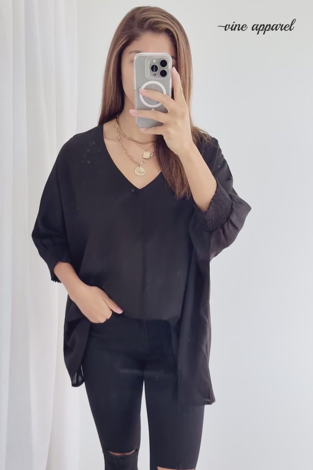 It will go with EVERYTHING. Fitted jeans, like Our Favourite Jeans Ever or the Panel Jeans, dress it up with the Liquid Legs, or tuck it in to a pair of denim shorts. Day to night, all kinds of shoes – as we said, it will literally go with everything.