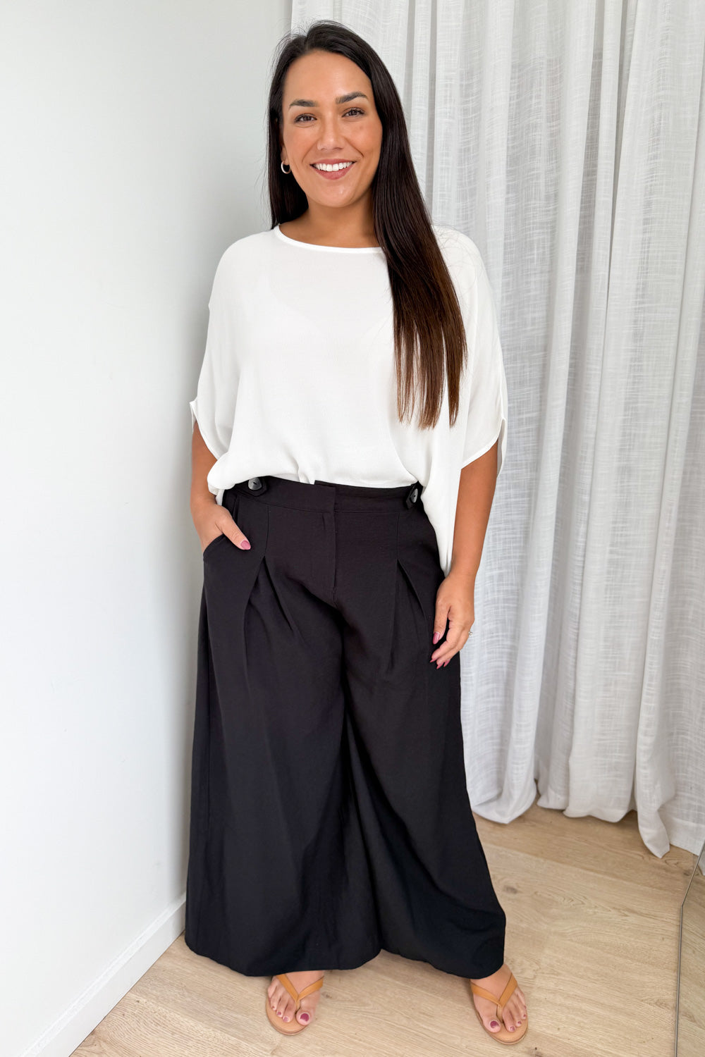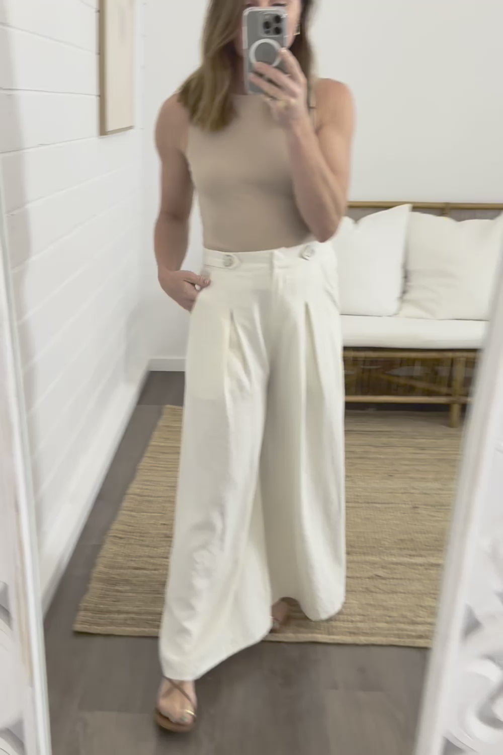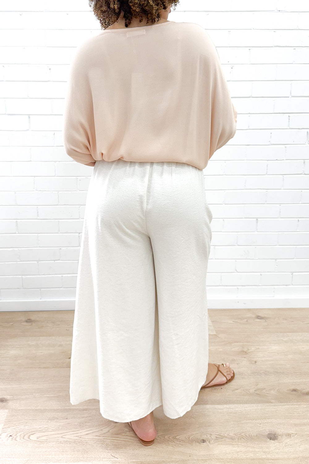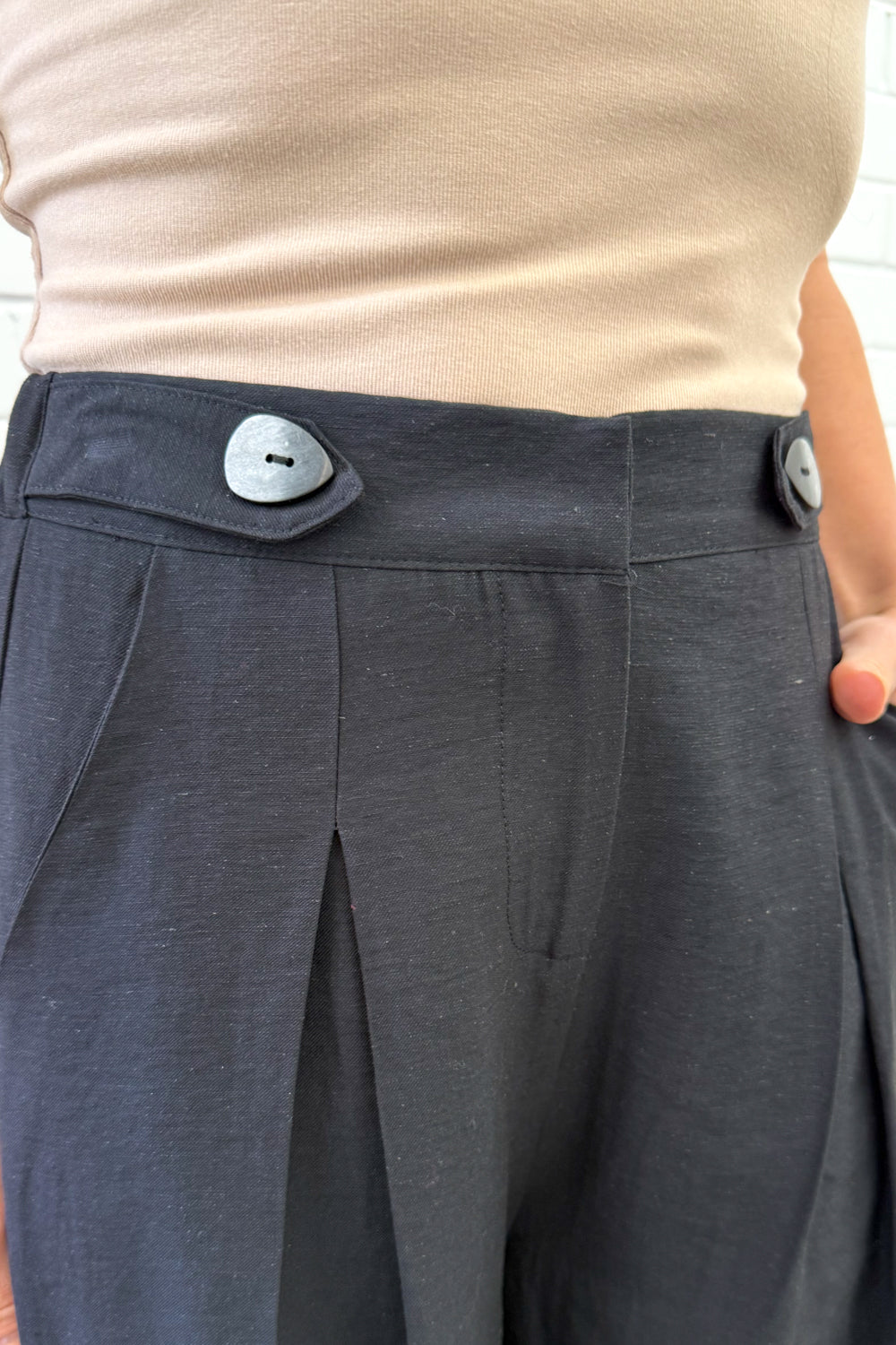 You asked, we listened - a petite version our Tallow Pants! Gorgeous. A really, really good shape in a really, really good fabric. Wide leg and loose, they look and feel amazing on. Functional pockets, elastic at the back and some gorgeous button detail at the front on the hips, we love them.