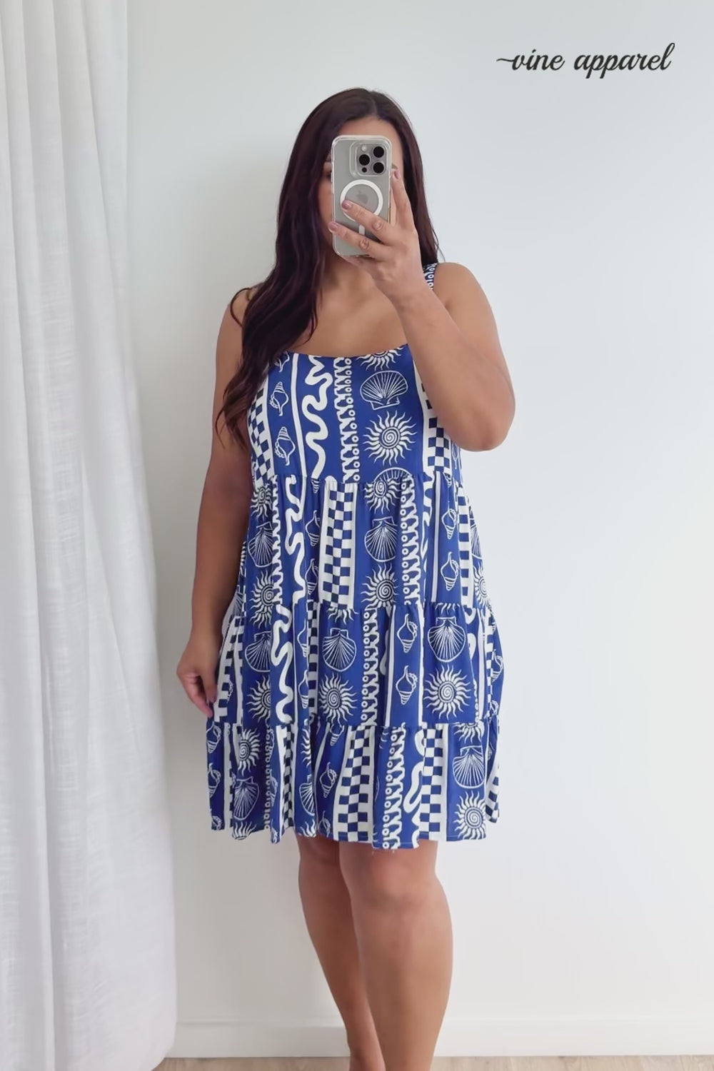A light throw on with thick enough straps to wear a bra. The straps are adjustable, the shape is good, it has pockets, the length is good and it’s just nice on.