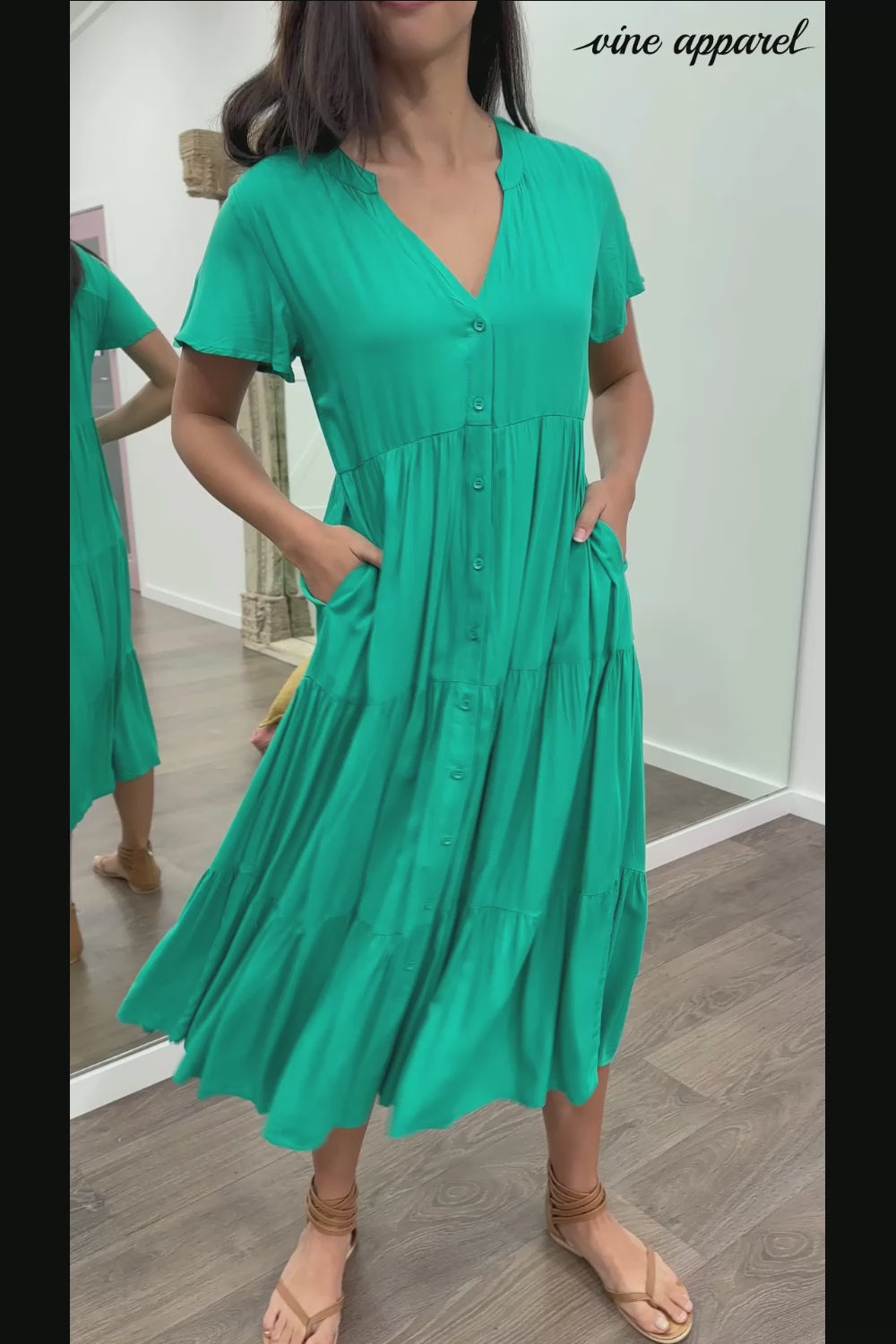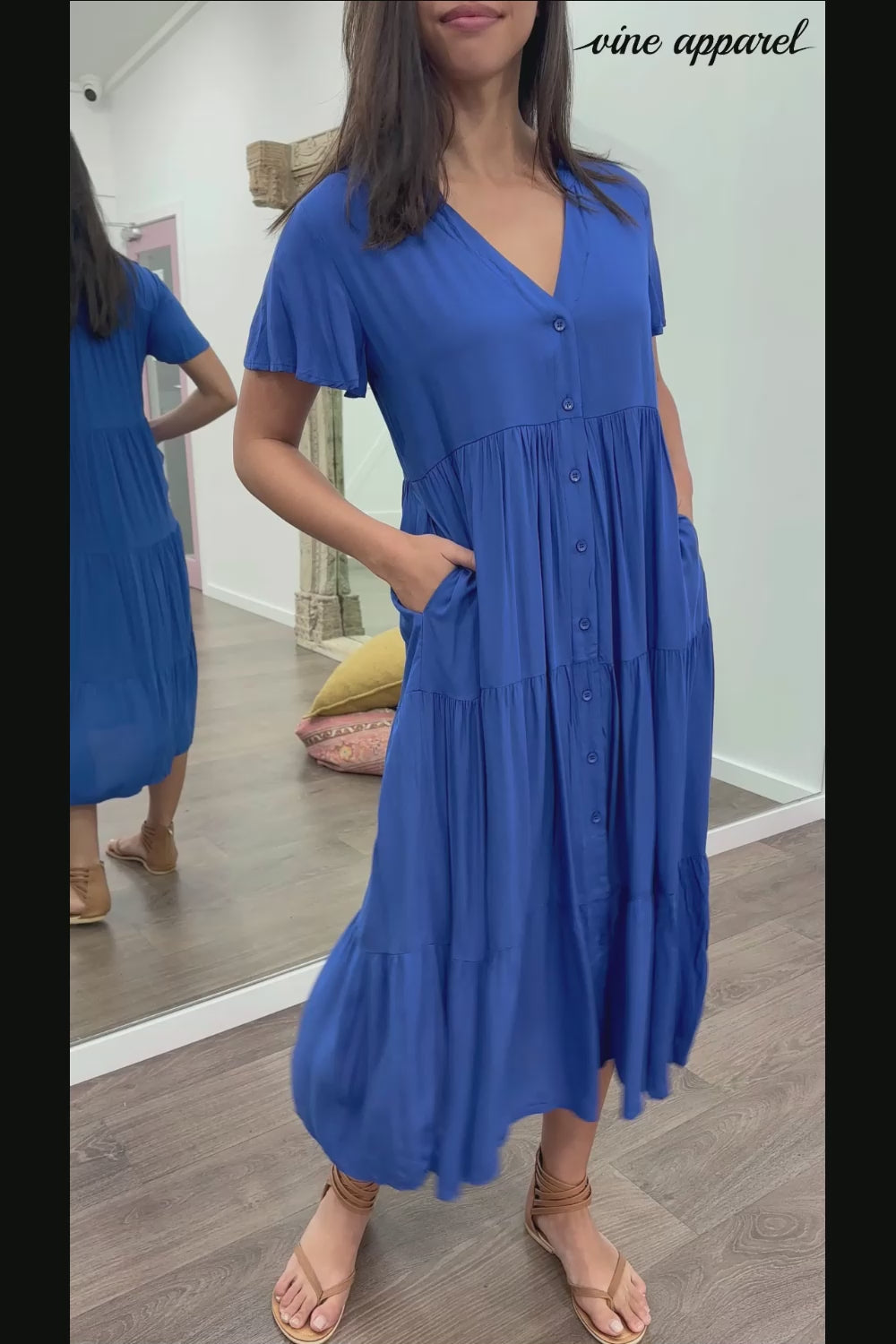 Talk about an EXCELLENT basic dress! It looks fab on all shapes and sizes, as in it just drops - doesn't sit anywhere you don't want it to, and the fabric FEELS nice on. A flattering V neck, pockets, and functional buttons.