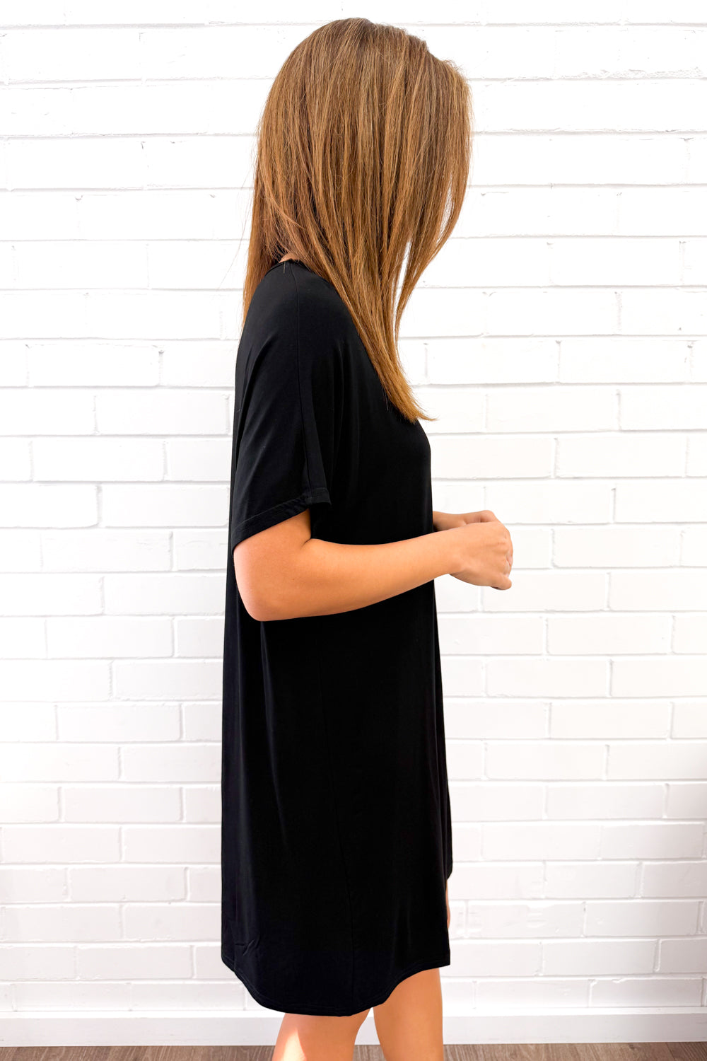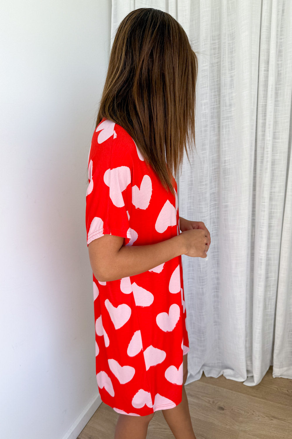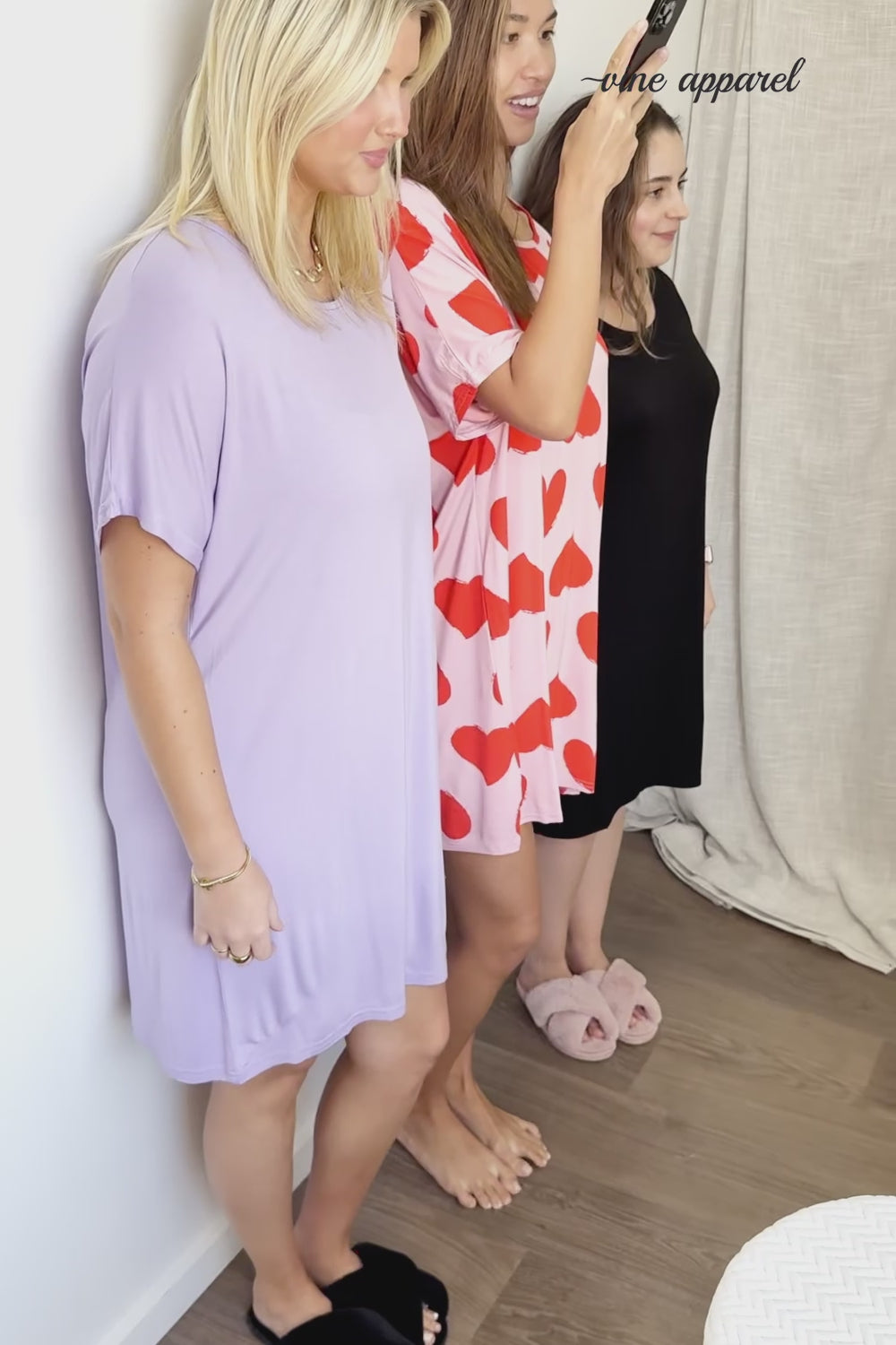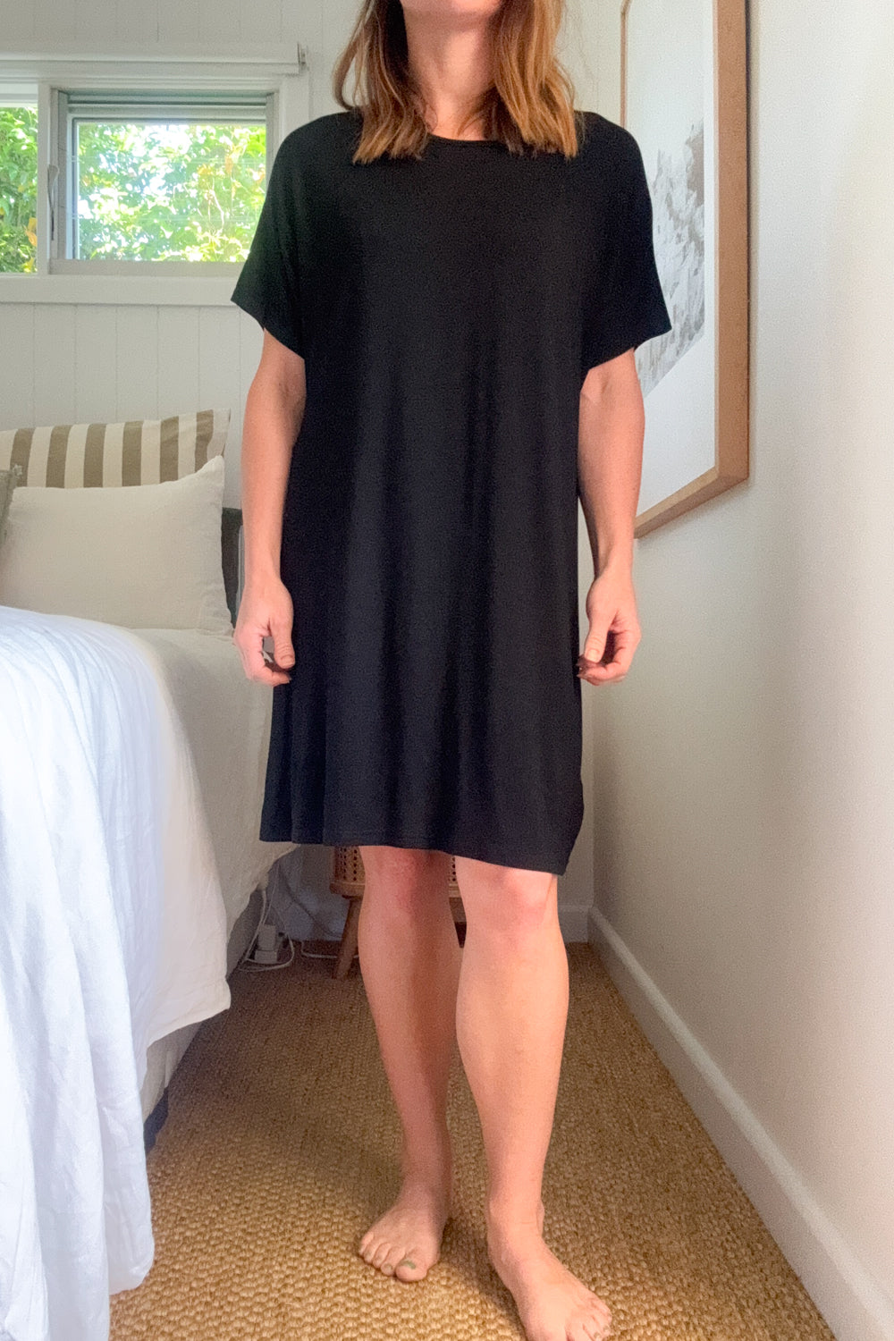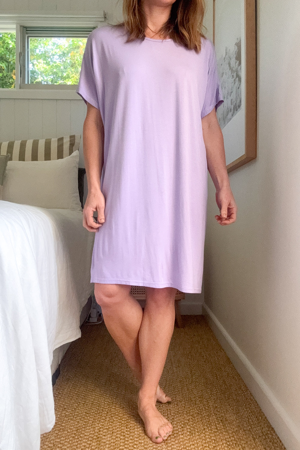 We have the comfiest pjs ever. Did you know that? And, because we aim to please, we now have a nightie version. It’s a good length, not long but not short, but just like an oversized tee shape which will make you happy when wearing it. It feels really, really good on.