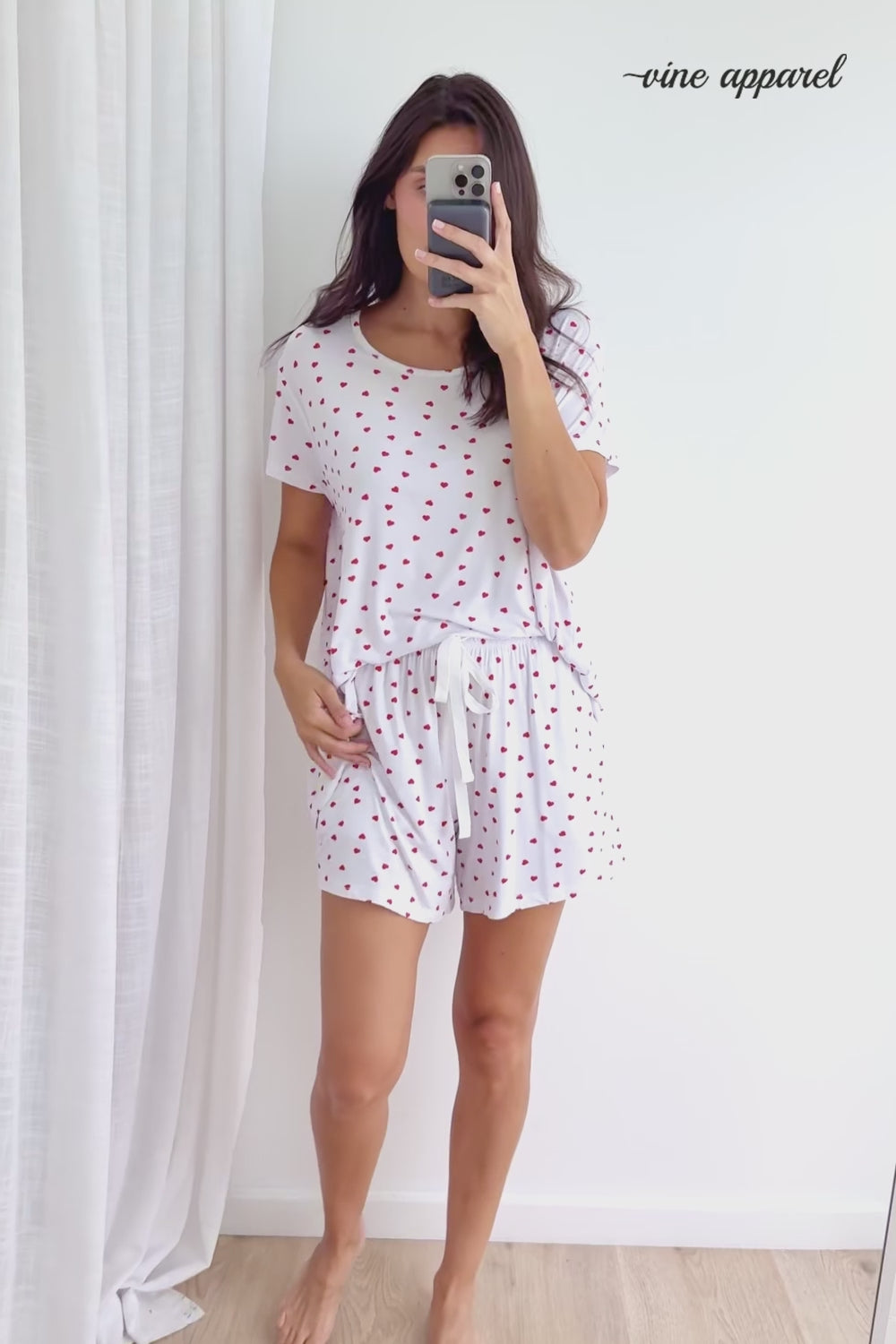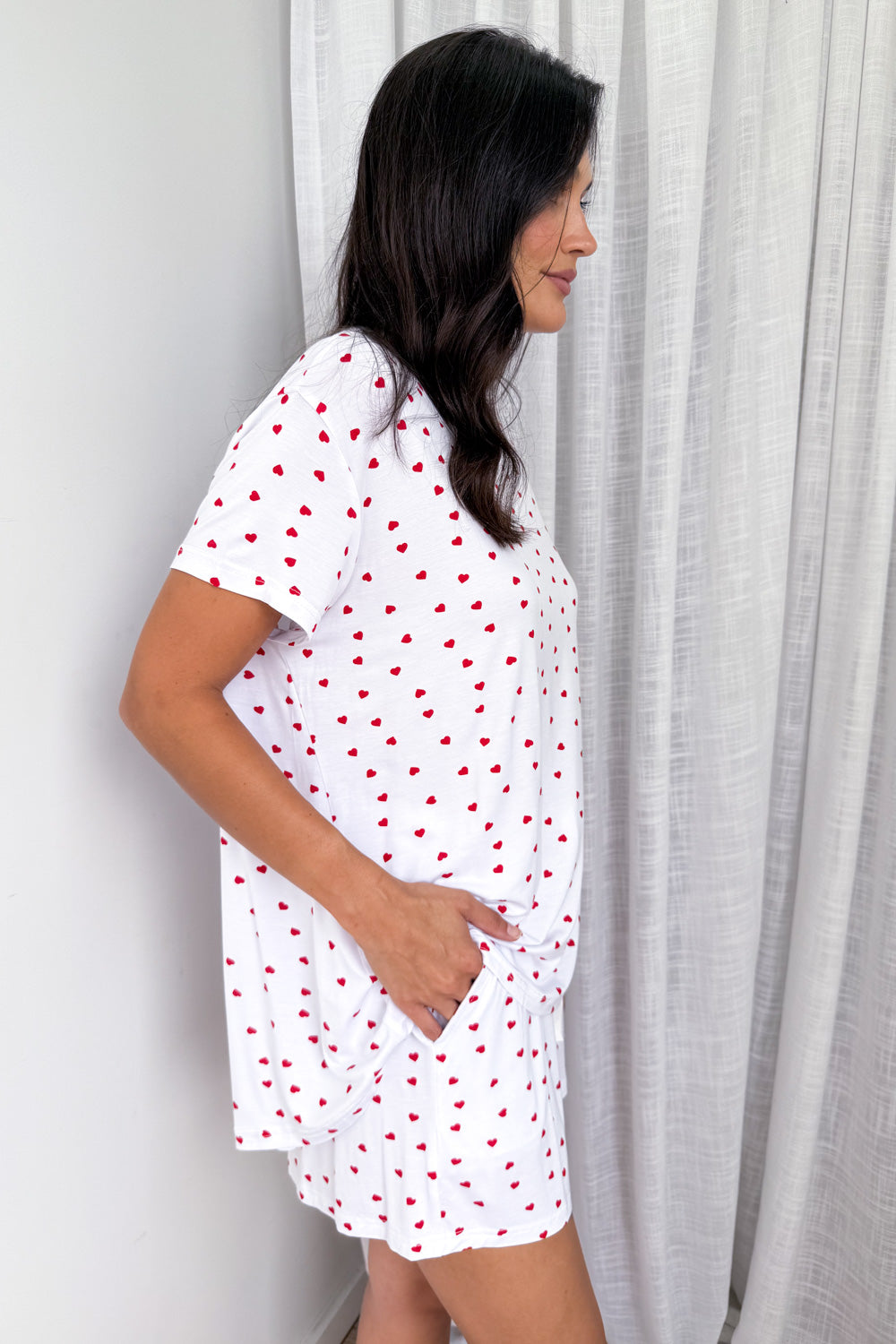 The Comfiest PJs Tee & Shorts Set - Red Mini Hearts