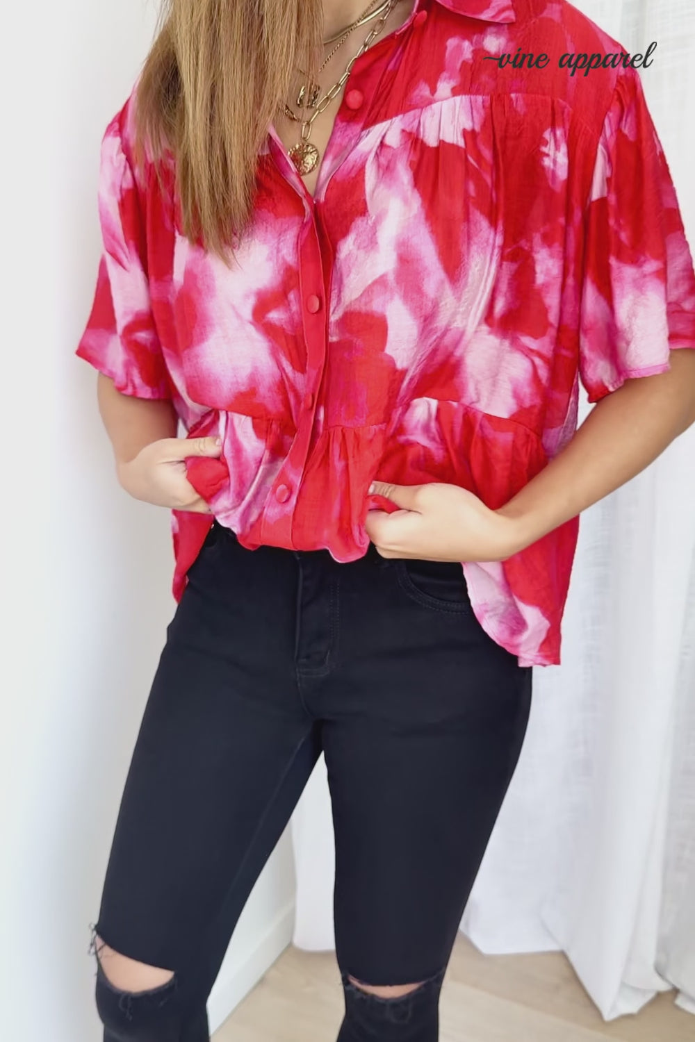 Easy to wear and easy to style, we love the shape. Tuck it in, wear it loose — whatever suits your mood. This beautiful print makes a statement, and the collar gives it a refined feel. Pair with the matching shorts if sets are your thing.