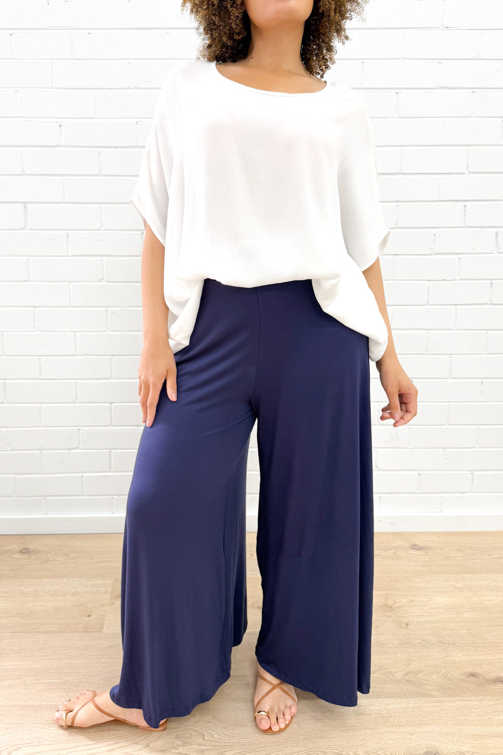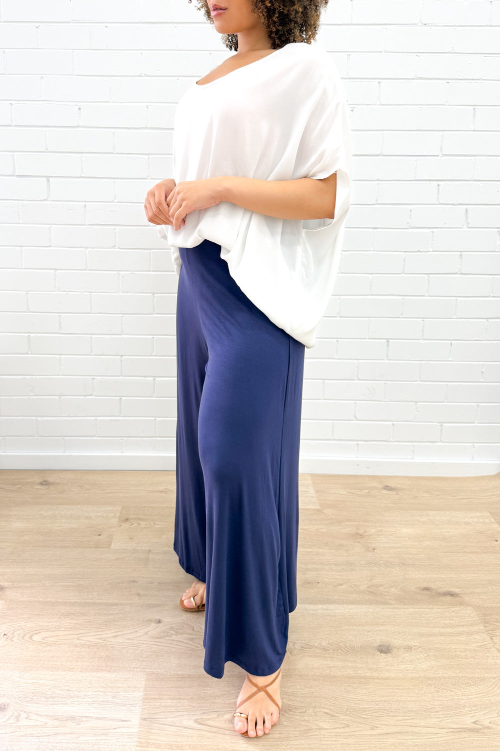 These are seriously the most comfy pants ever. A shorter version of our lush Robyn Pants, as requested by you. They’re so incredibly soft, the wide leg is nice and flowy and the waist band is thick for that little bit of tummy control, and they feel really good on.